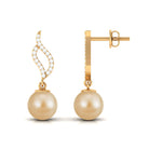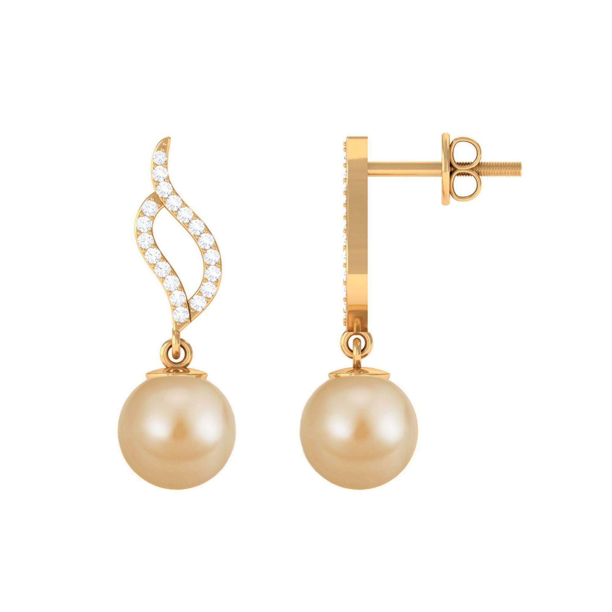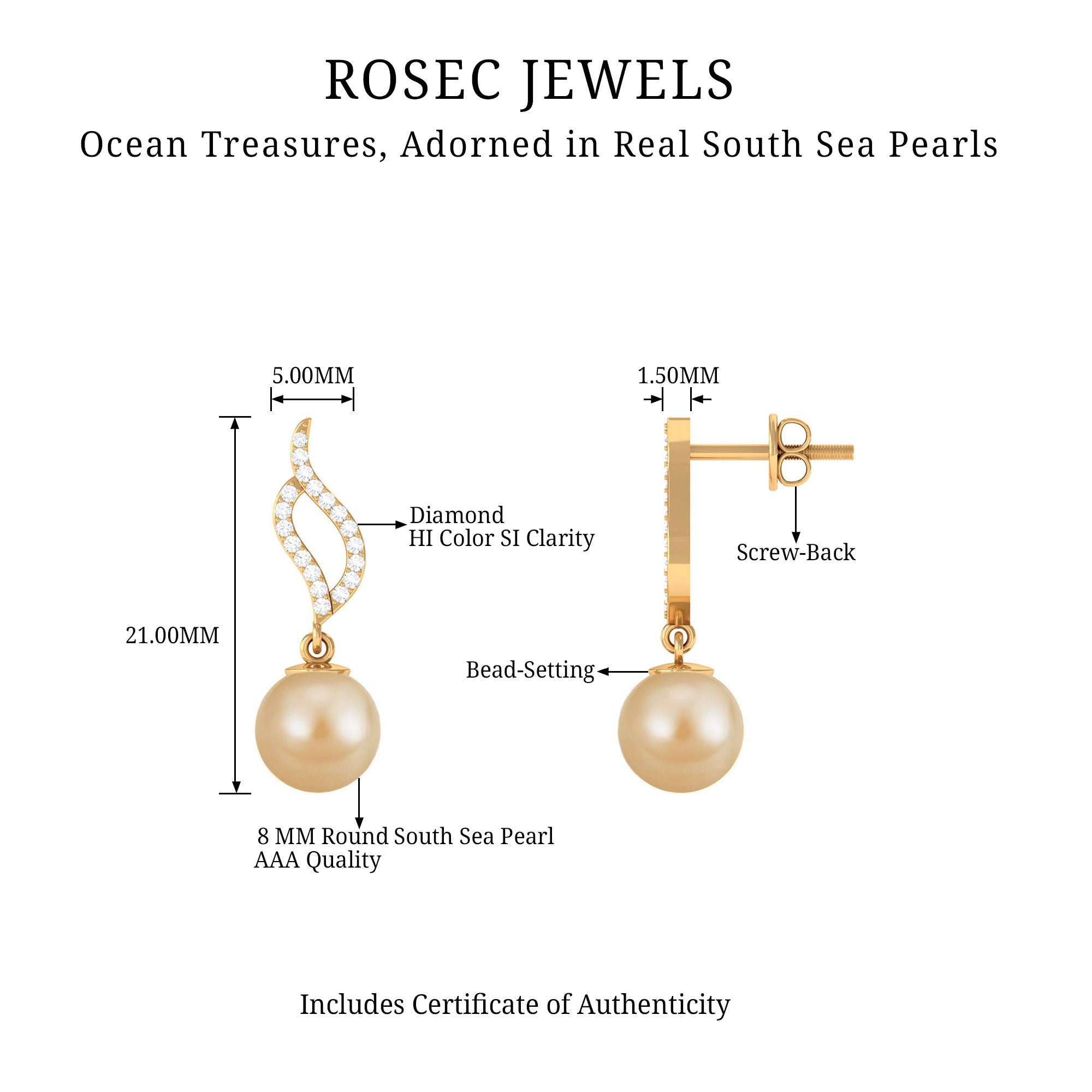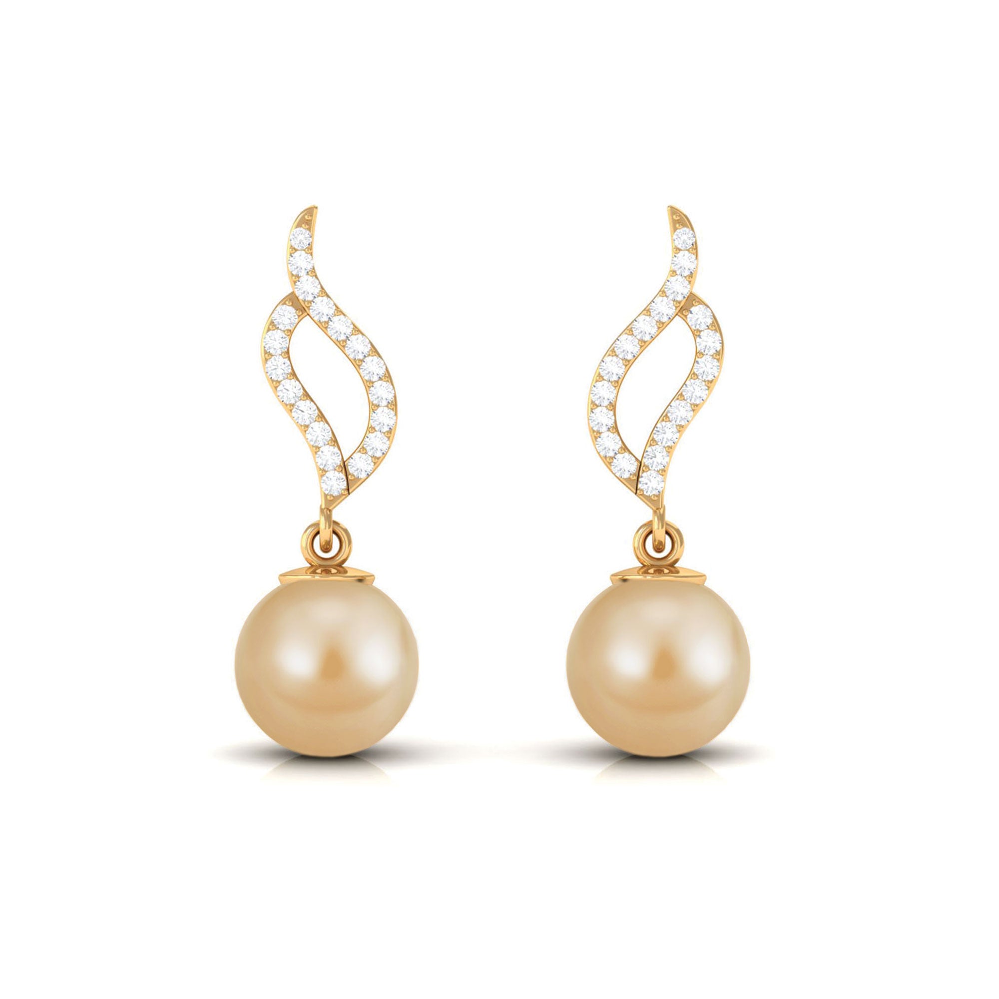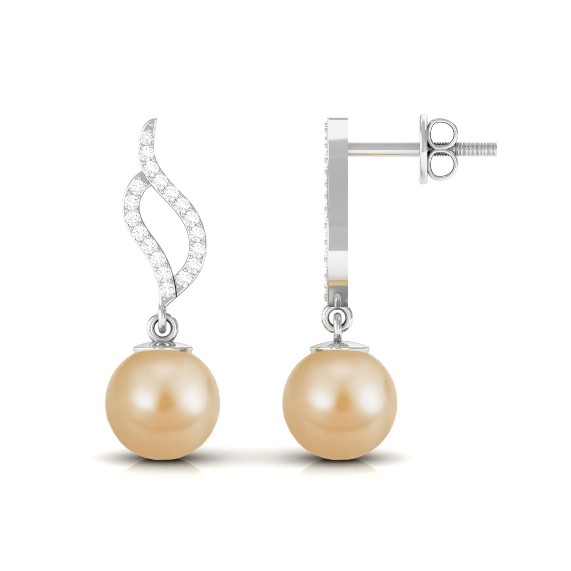 7 MM Elegant South Sea Pearl and Diamond Drop Earrings
