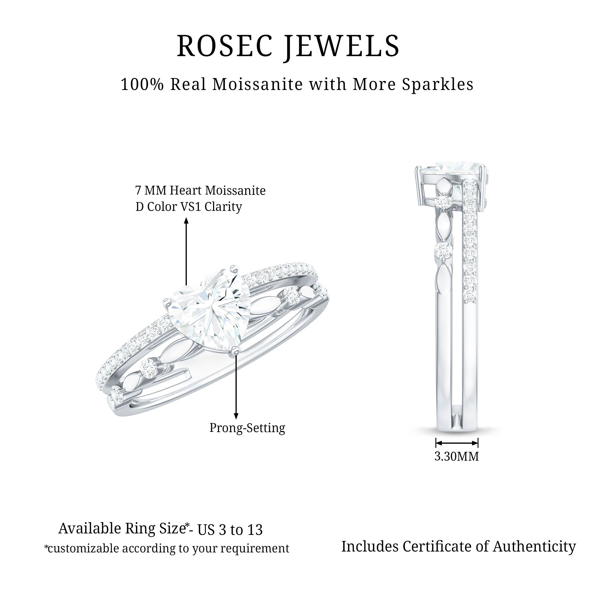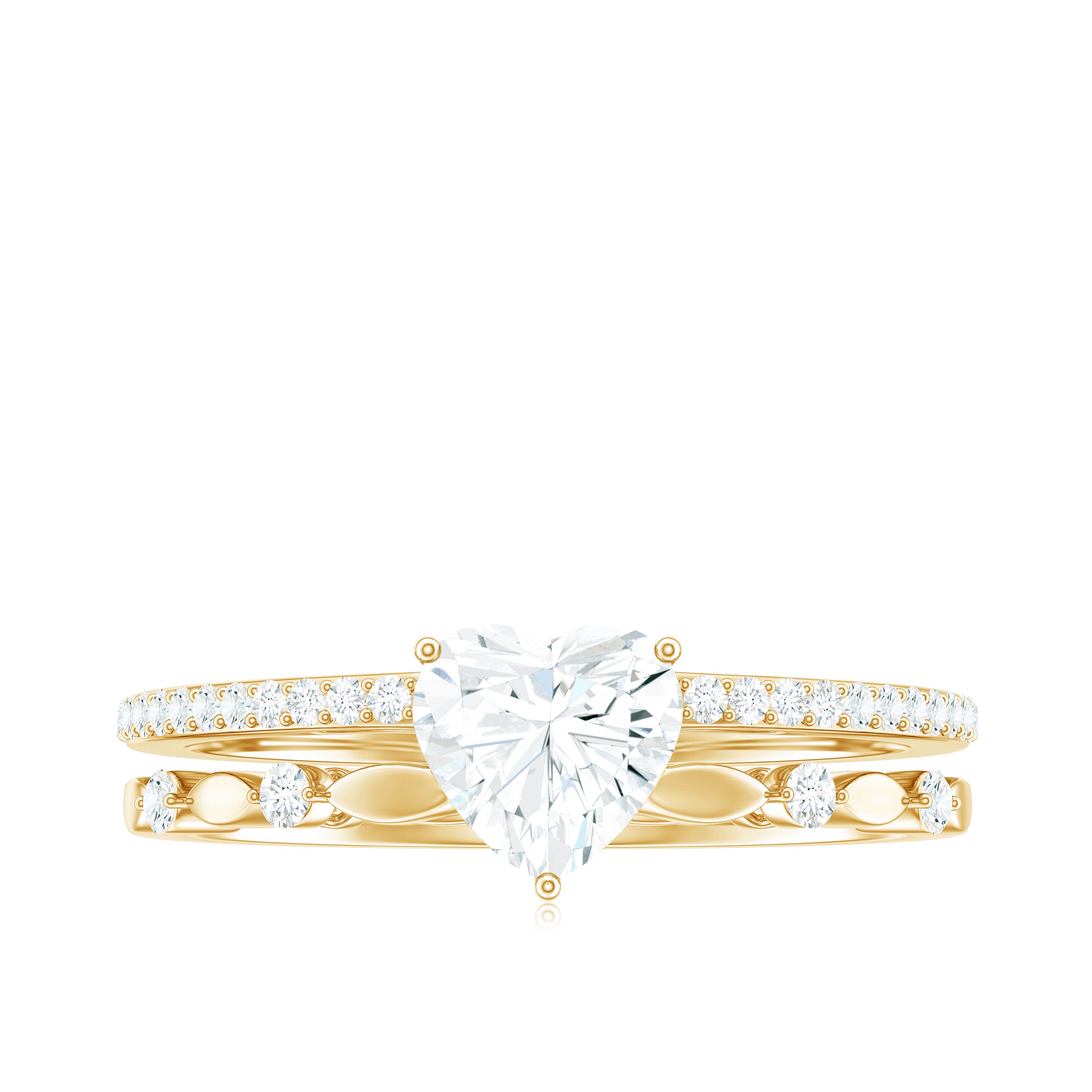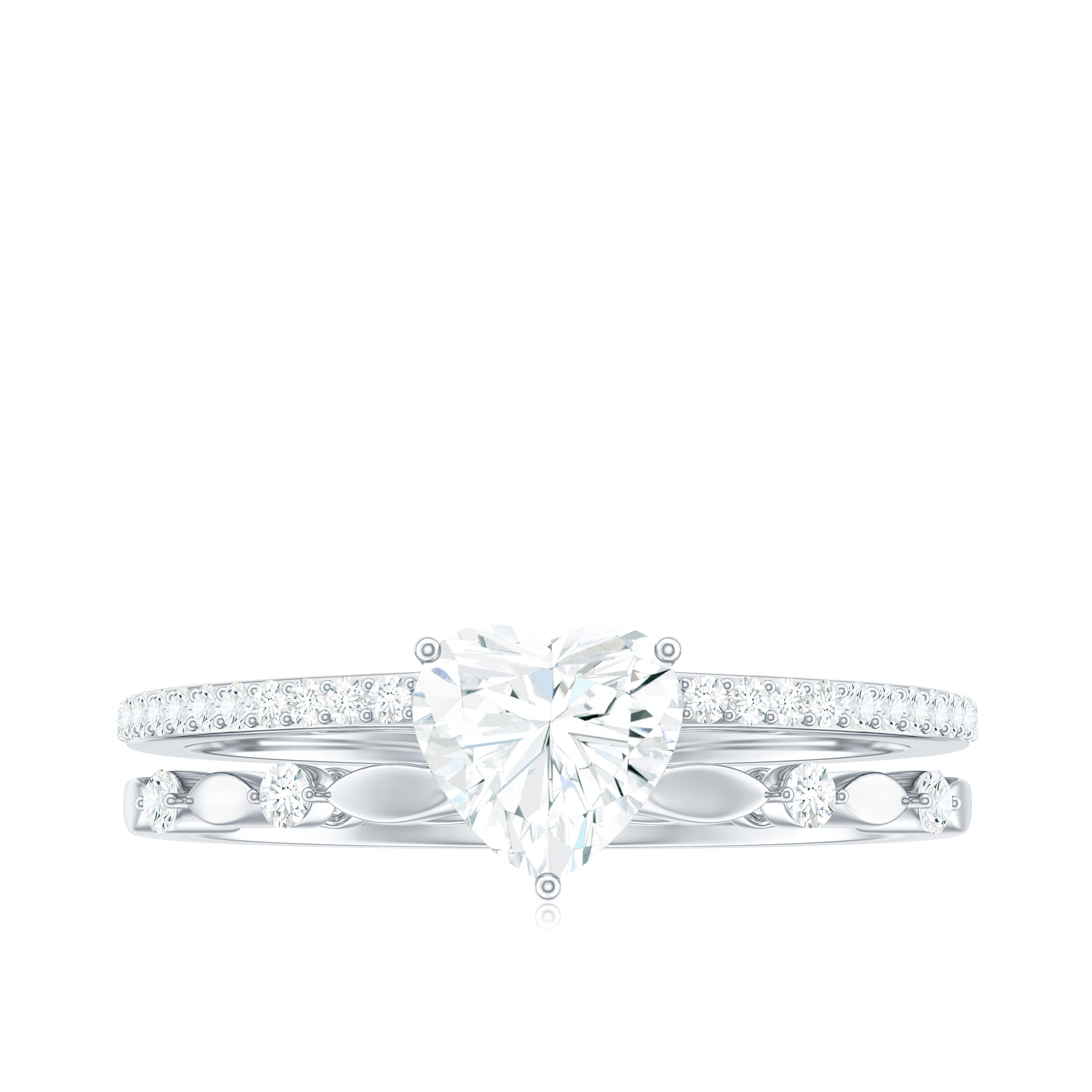 7 mm Heart Moissanite Solitaire Double Band Ring Set