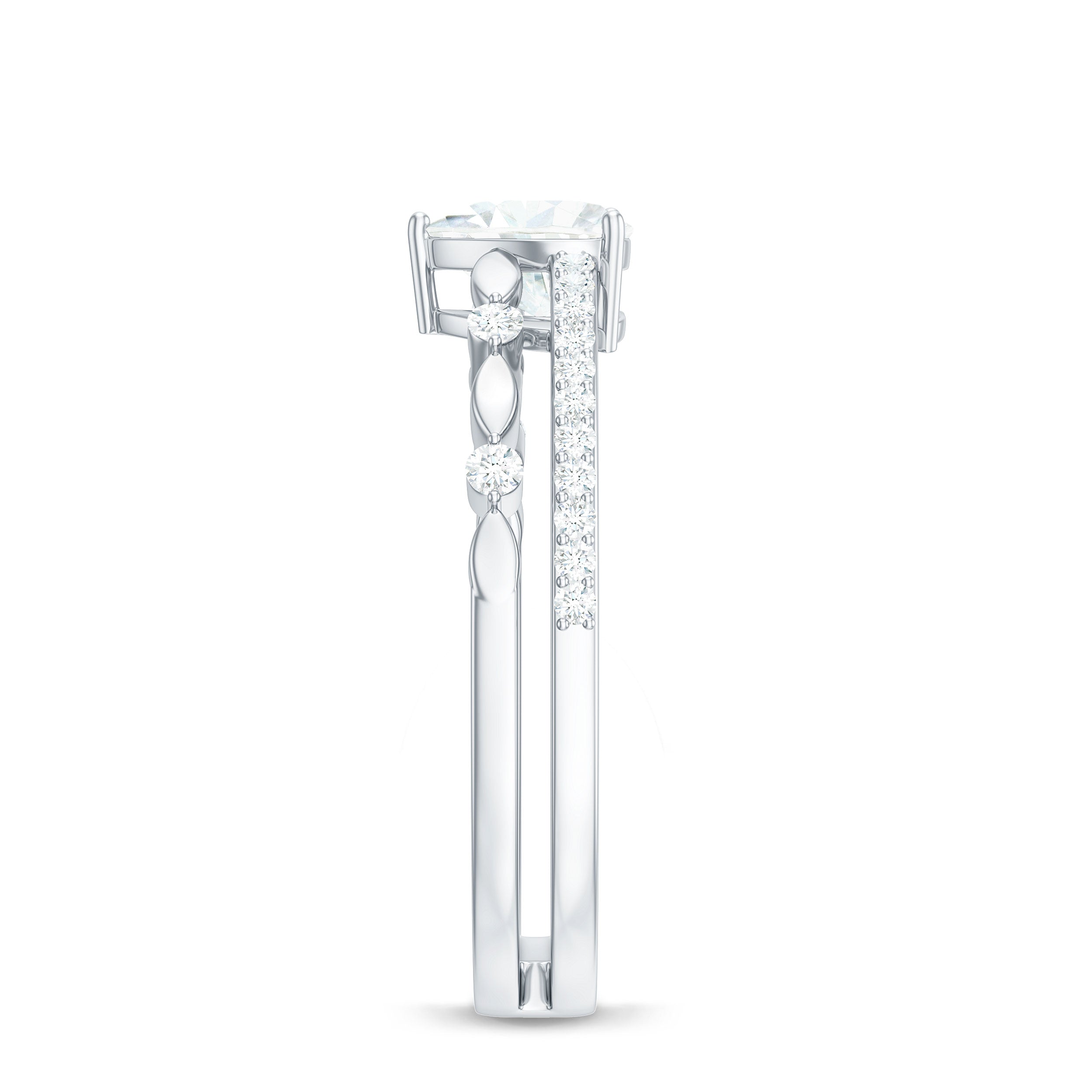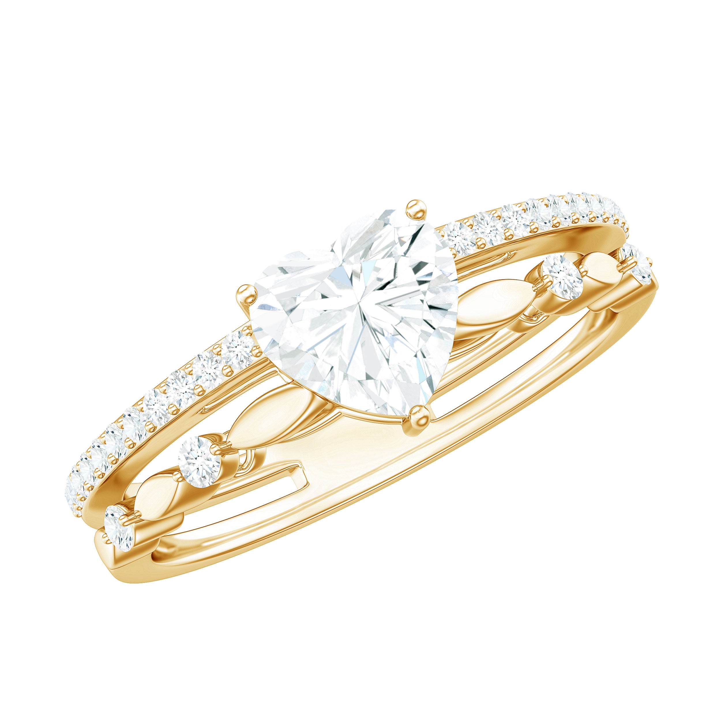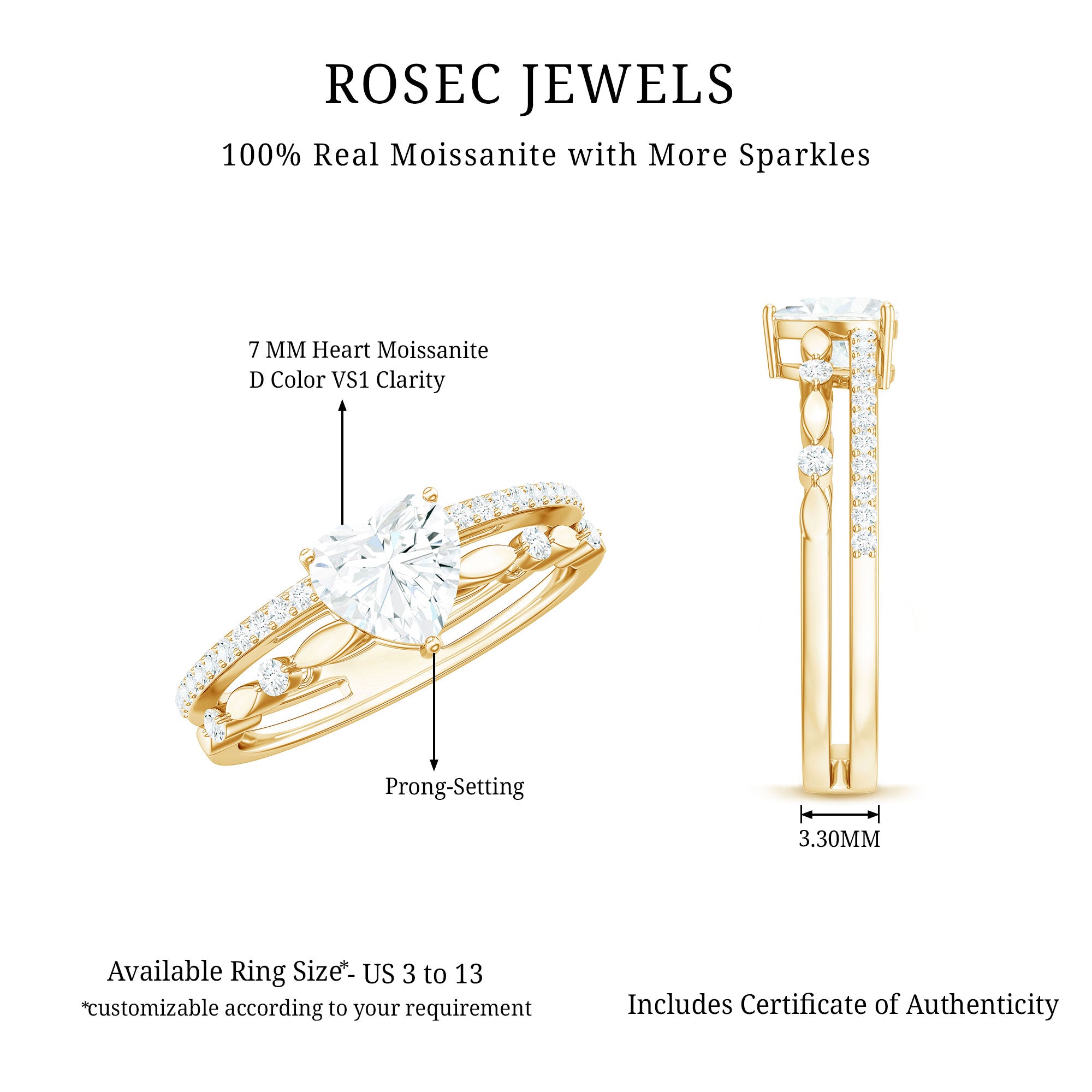 This breathtakingly appealing Moissanite Engagement Ring adds a sparkle to your finger, creating a beautiful harmony to make this a truly special. This Double Band Engagement Ring featuring 7 mm Heart shaped Moissanite set as solitaire in a 3-prong setting, with tiny round shape moissanite side stones and more moissanite set in the another band in an alternating style with marquise shaped metal design, add more sparkle to the ring. As a radiant symbol of a love story, this Heart Shaped Moissanite Ring is a choice for adding more sparkle to your outfit, beautifying a mesmerizing and timeless piece of jewelry. This Heart Engagement Ring is expertly crafted with precision, offering a refined elegance that is perfect for enhancing your style for any occasion. This Moissanite Solitaire Ring is a testament to the luxury and elegance, which is perfect for those who appreciate a sophisticated piece of jewelry. This thoughtful Pre Wedding Ring emits the sweet sparkle that would instantly upgrade your look. Available in US sizes 3 to 13 and delivered in a signature jewelry box.