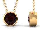 7 MM Simple Gold Solitaire Pendant Necklace with Garnet