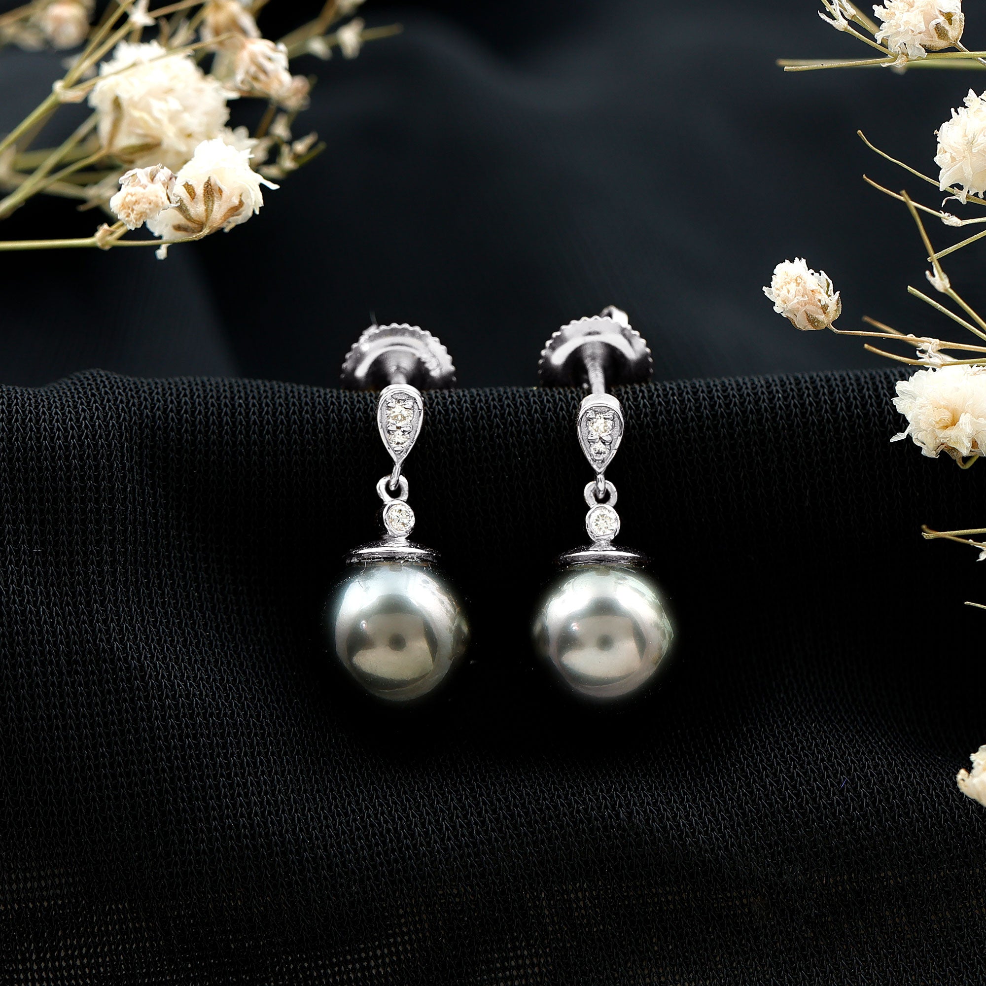 7 MM Tahitian Pearl Drop Earring with Diamond