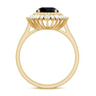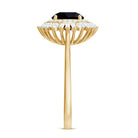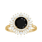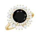 7mm Round Black Onyx Double Halo Cocktail Ring with Moissanite