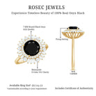 Rosec Jewels Black Onyx Engagement Ring is designed to radiate beauty and significance. At the heart of this Double Halo Engagement Ring lies a 7 MM round cut Black Onyx, securely held in a prong setting that allows the stone to capture light from every angle. Its brilliant sparkle serves as the ideal representation of love and commitment. What distinguishes this Round Engagement Ring is its unique double halo design. Two rows of round moissanite stones encircle the center stone, enhancing its sparkle, depth, and brilliance. The halos form a luminous frame that accentuates the beauty of the center stone. Crafted with AAA quality black onyx, this Round Onyx Ring having moissanites provides the radiance of a diamond while being a more economical and environmentally friendly option. The sleek band directs attention to the radiant center and ensures a comfortable fit for daily wear. This Statement Engagement Ring is an excellent selection for those who appreciate sparkle and timeless elegance. Offered in various ring sizes and metal choices, it is elegantly packaged in a jewelry box, ready to elevate any occasion.