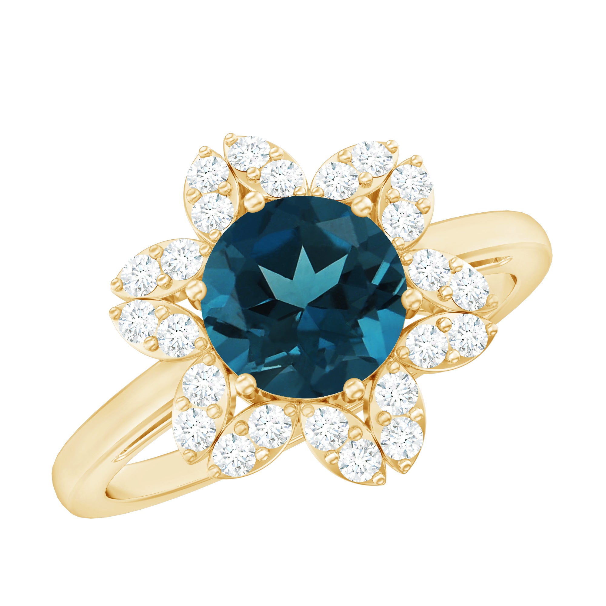 7mm Round London Blue Topaz Floral Engagement Ring with Diamond
