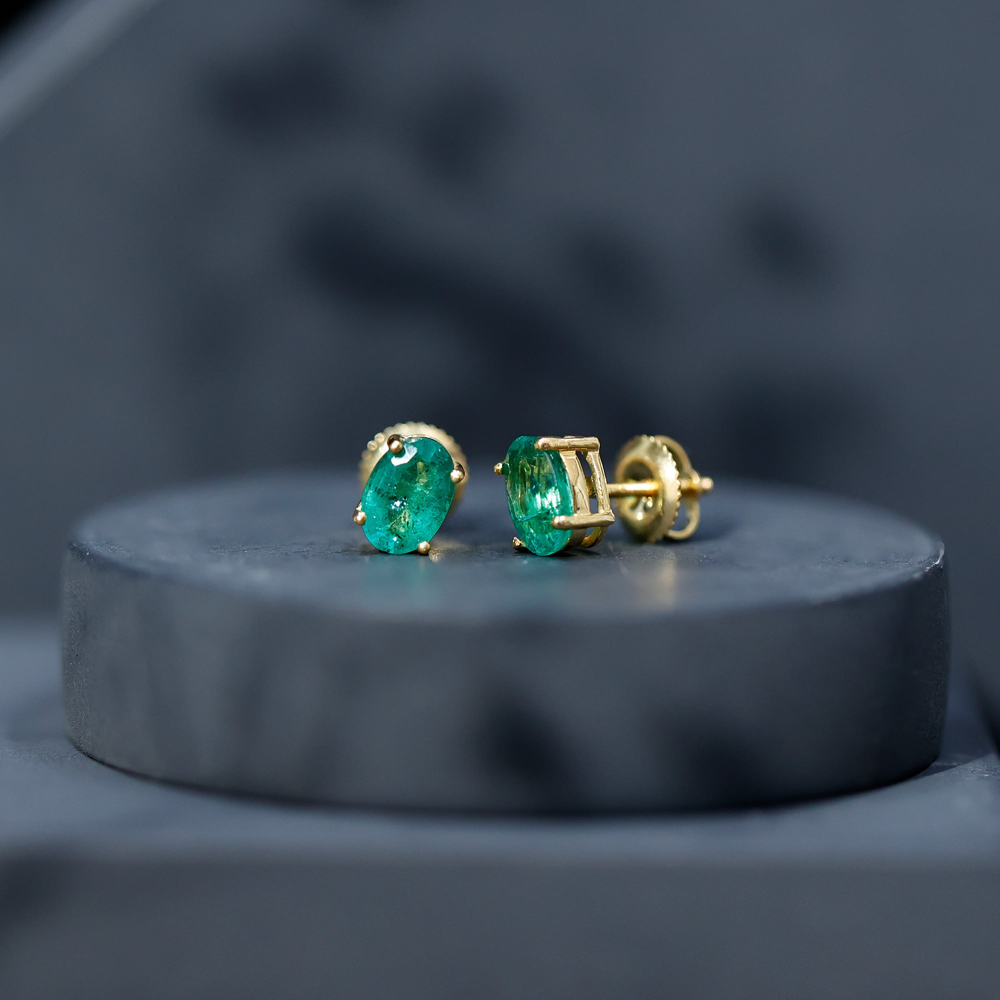 Elevate your style with a touch of sophisticated elegance by donning these Solitaire Stud Earrings, embellished with a dazzling Oval Cut Emerald set in a chic 4 Prong Setting. These Oval Stud Earrings are exquisitely crafted with Solid Gold, exuding a luxurious appeal that complements any outfit effortlessly.