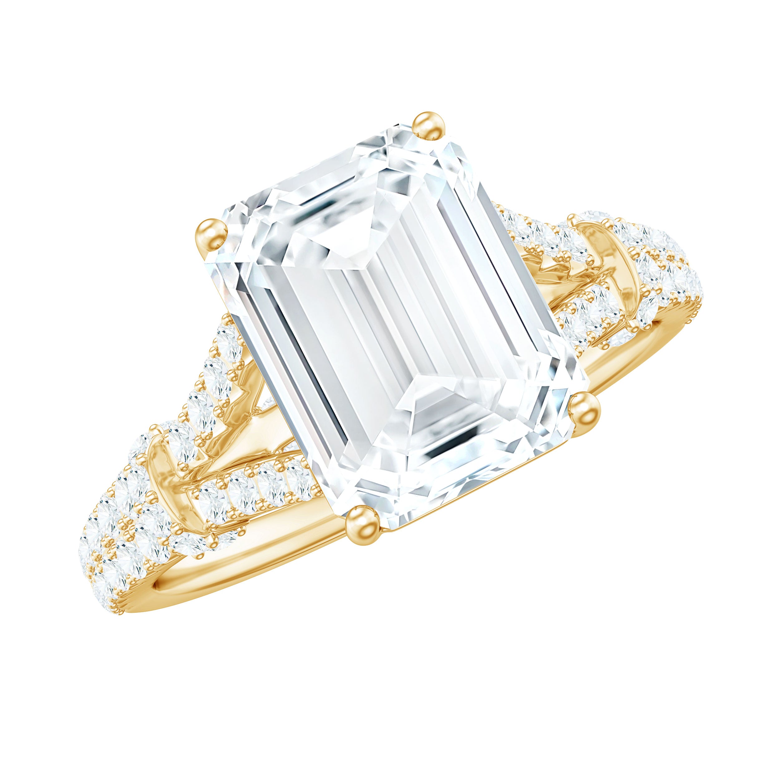7x9 MM Emerald Cut Moissanite Split Shank Engagement Ring for Women