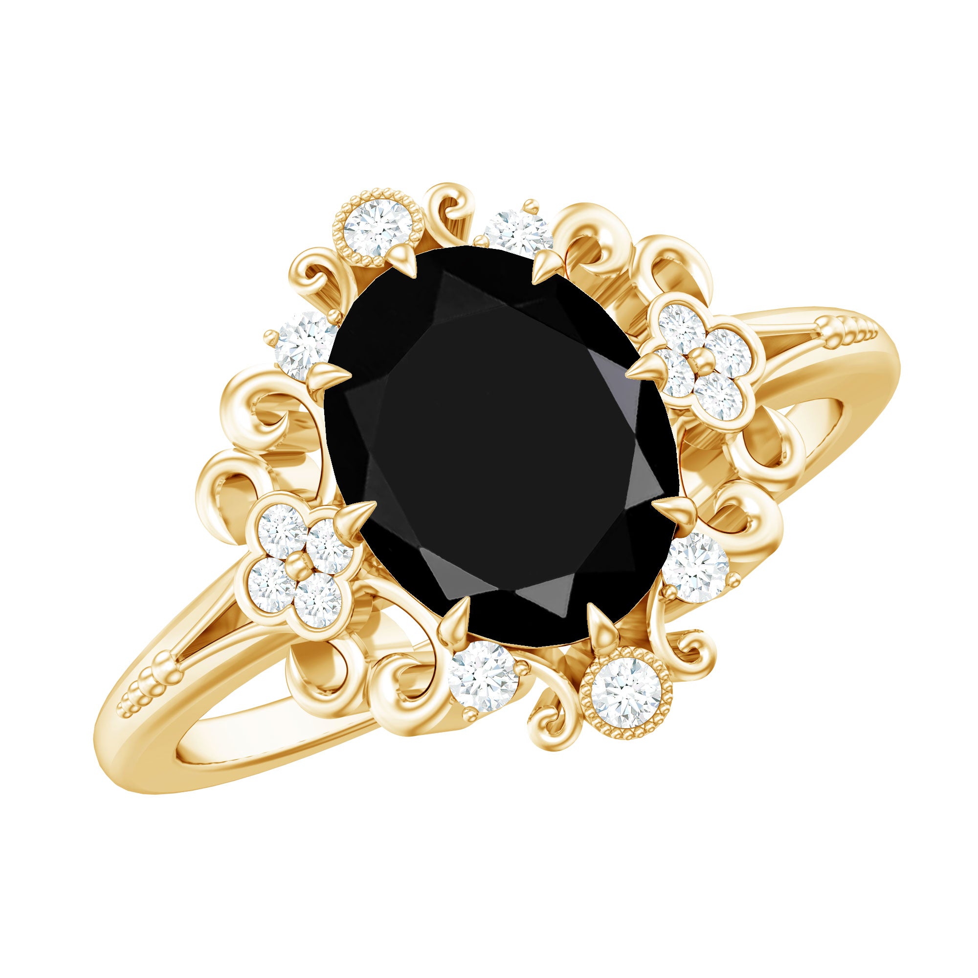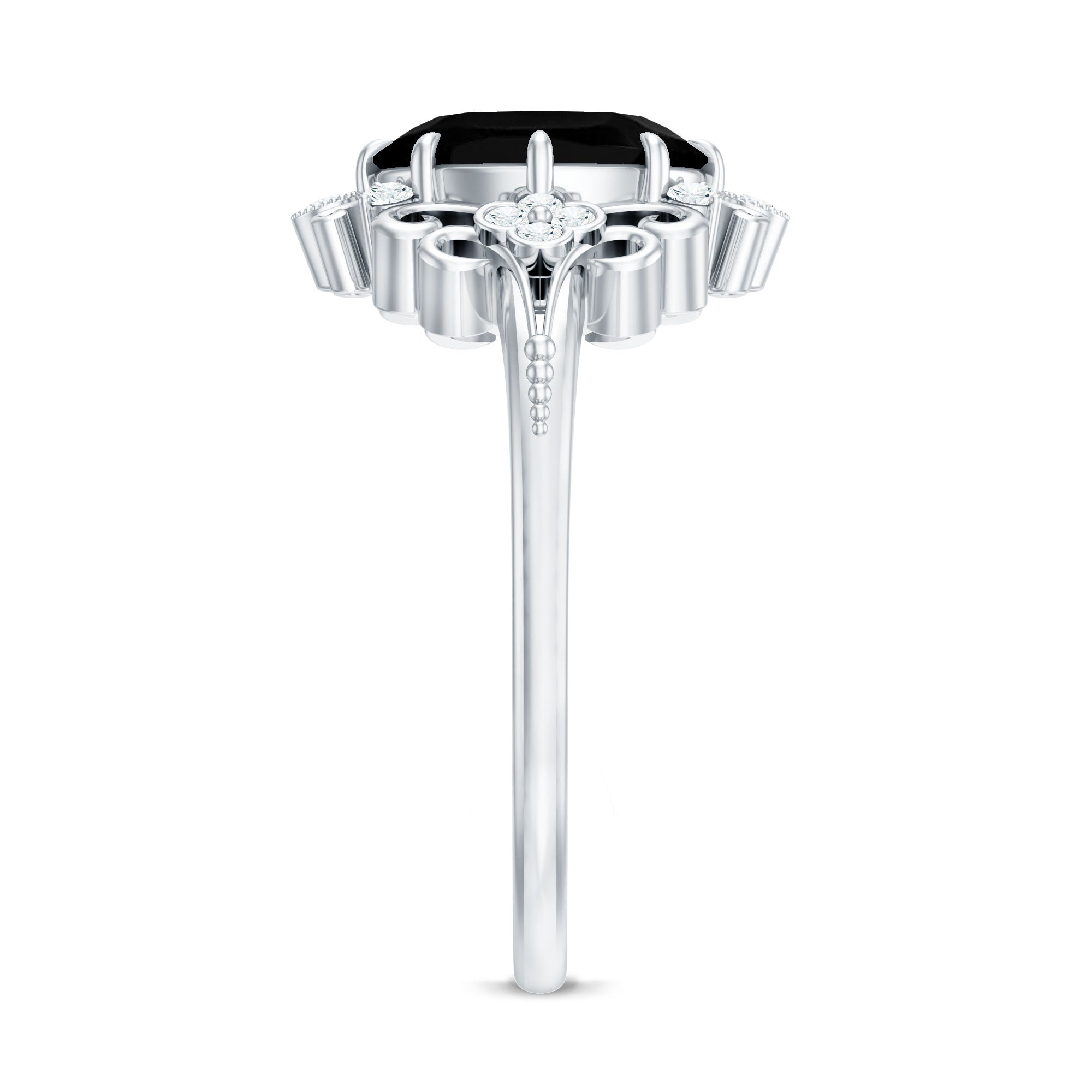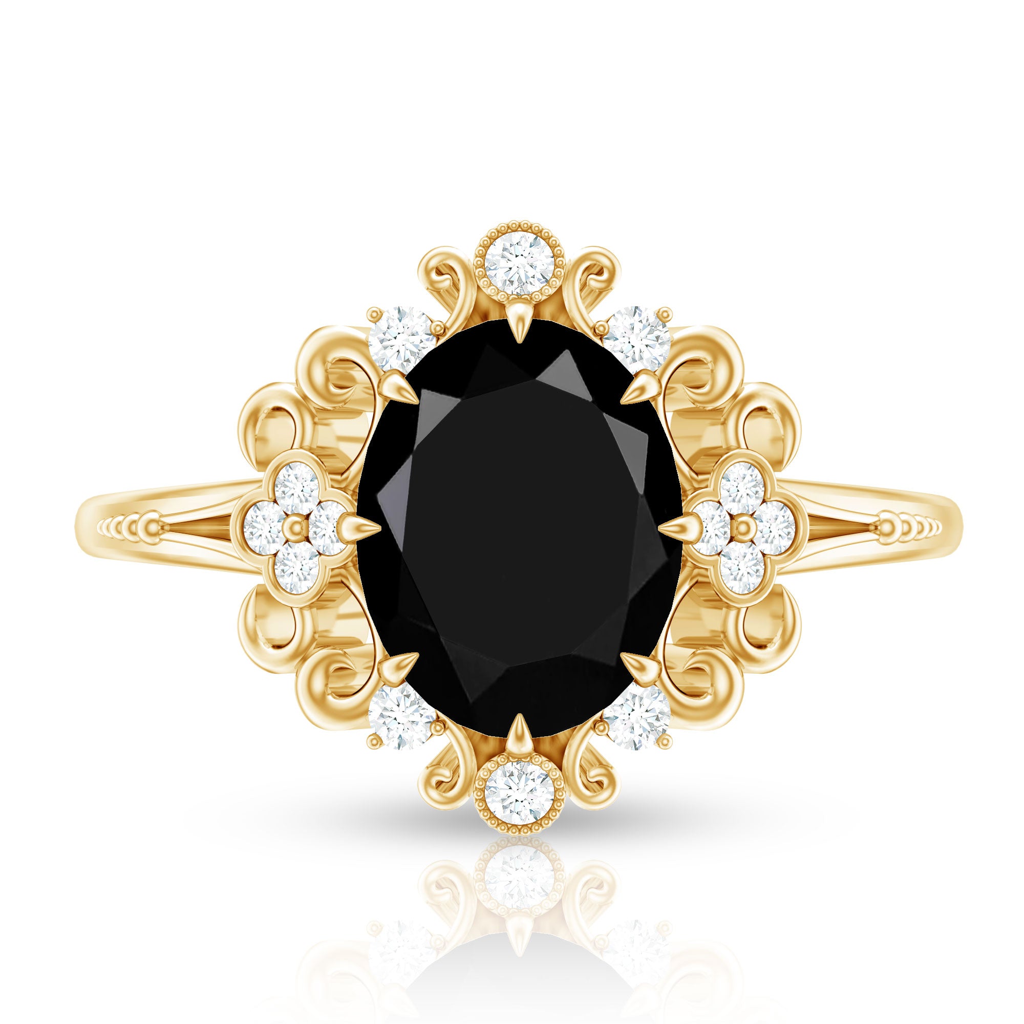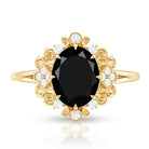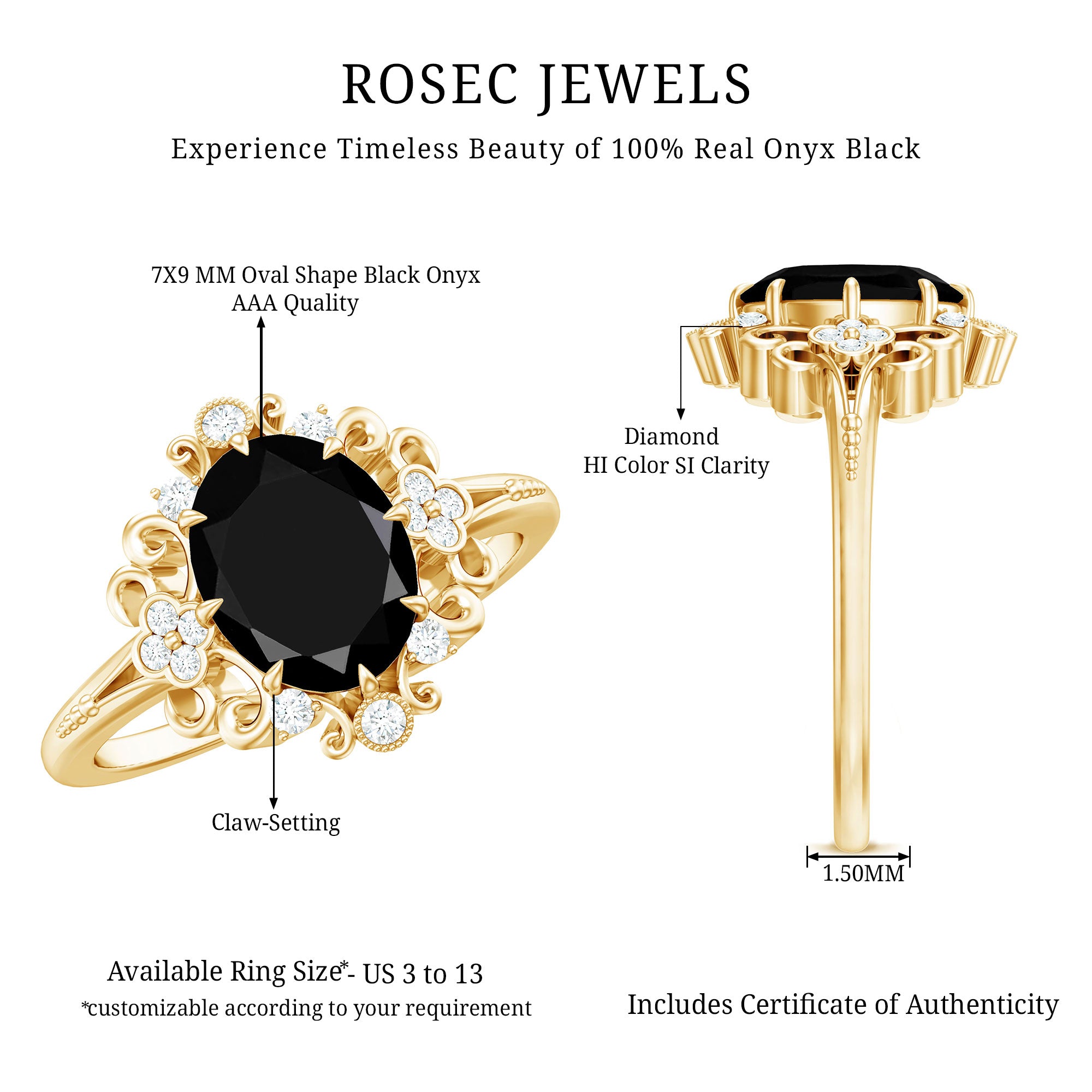 7X9mm Oval Cut Vintage Inspired Black Onyx Statement Ring with Diamond