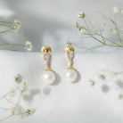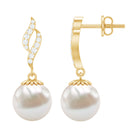 8MM Freshwater Pearl Drop Earrings with Diamond Accents