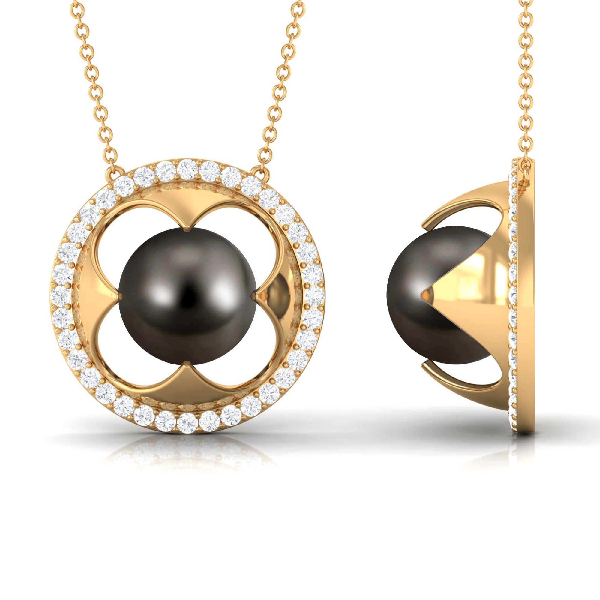 8.50 CT Solitaire Tahitian Pearl and Diamond Flower Necklace