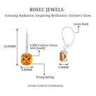 8 MM Cushion Cut Citrine Solitaire Drop Earrings