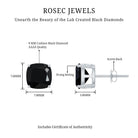 8MM Cushion Cut Created Black Diamond Stud Earrings