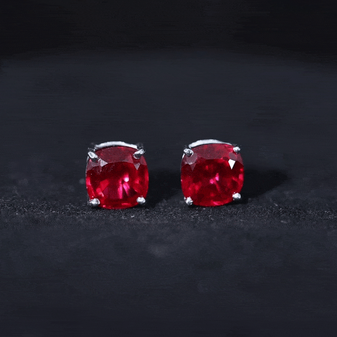 8MM Cushion Cut Created Ruby Solitaire Stud Earrings