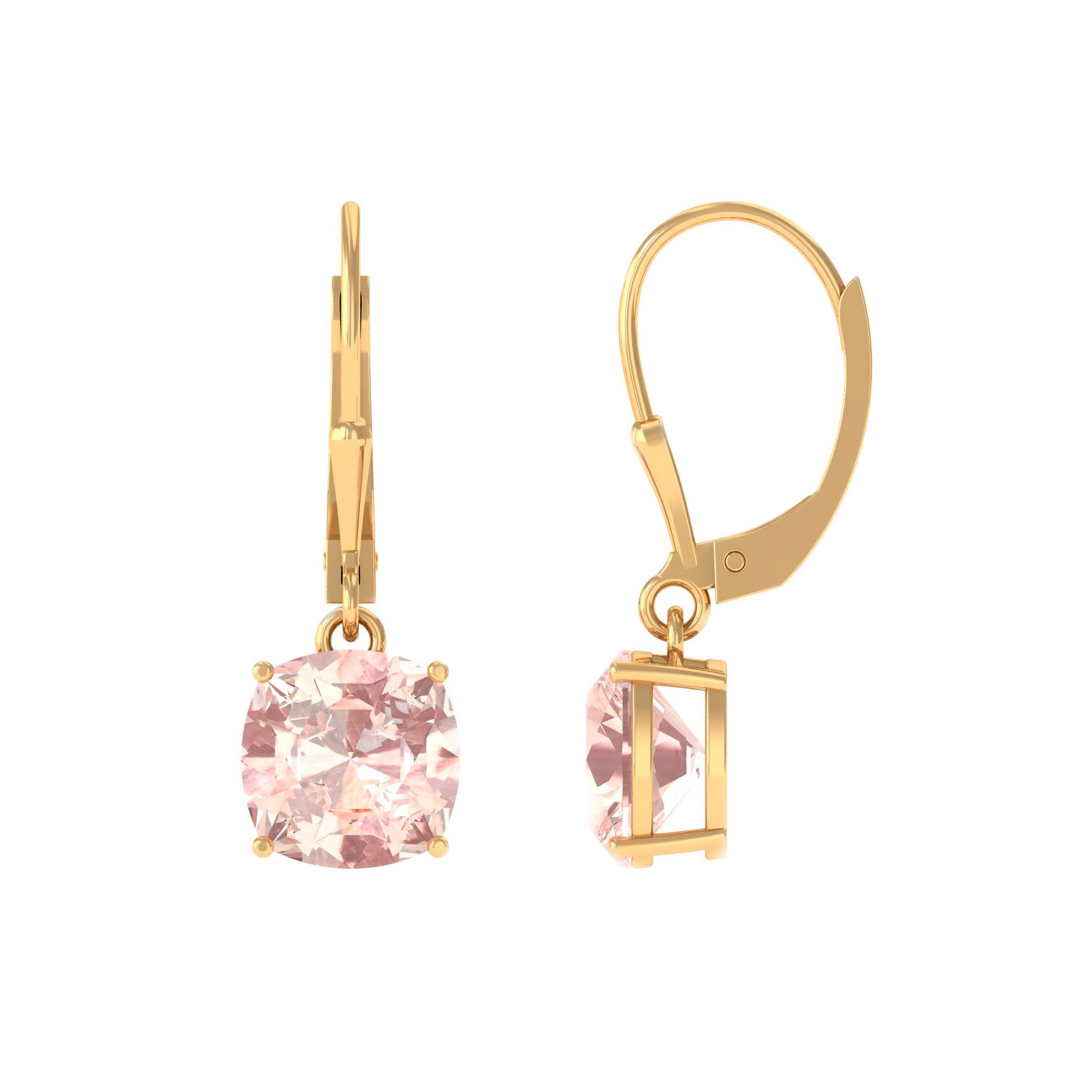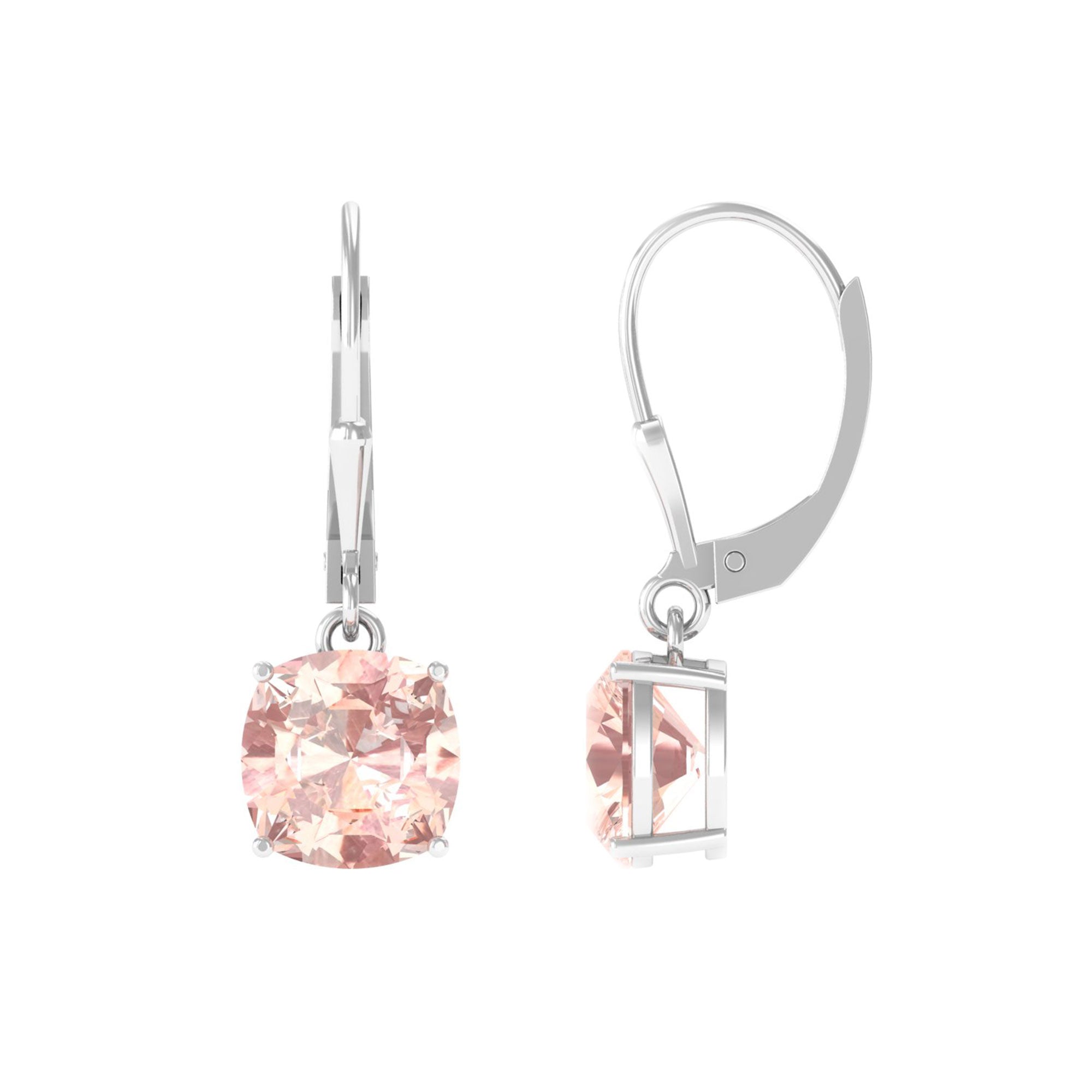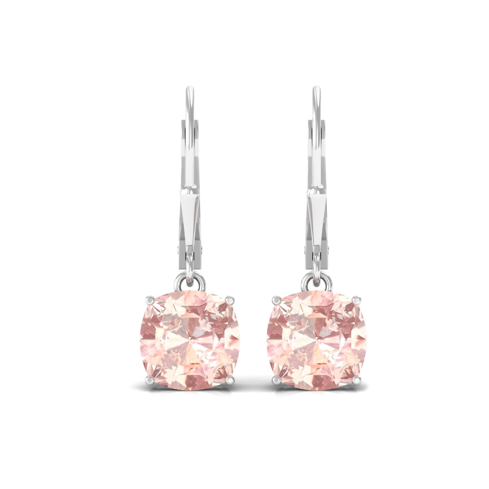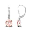 8 MM Cushion Cut Morganite Solitaire Drop Earrings with Lever Back