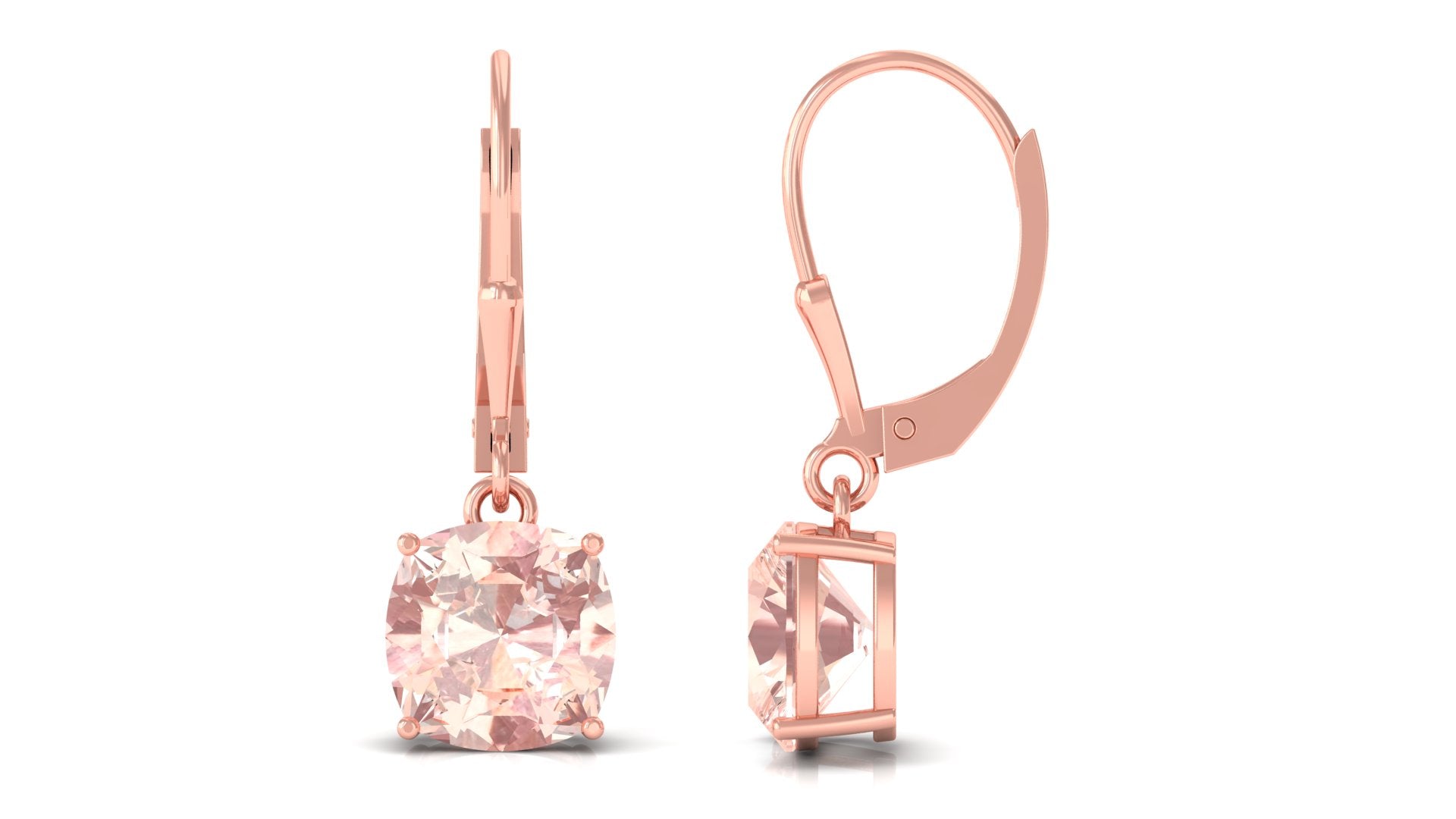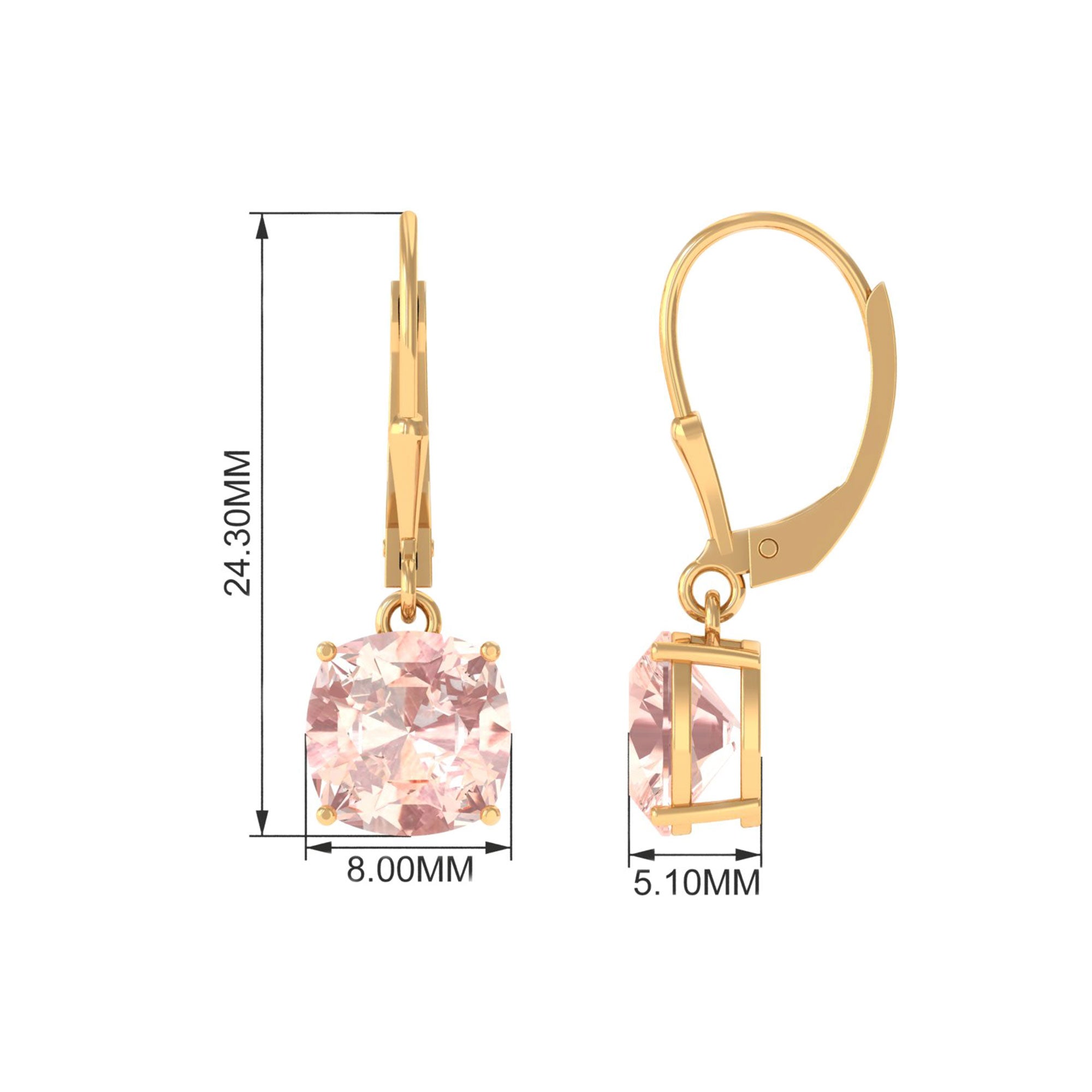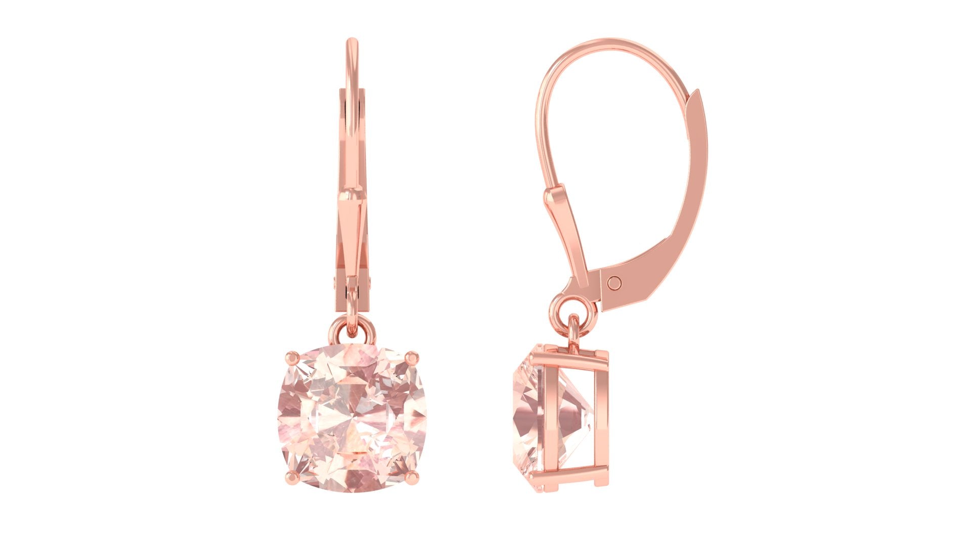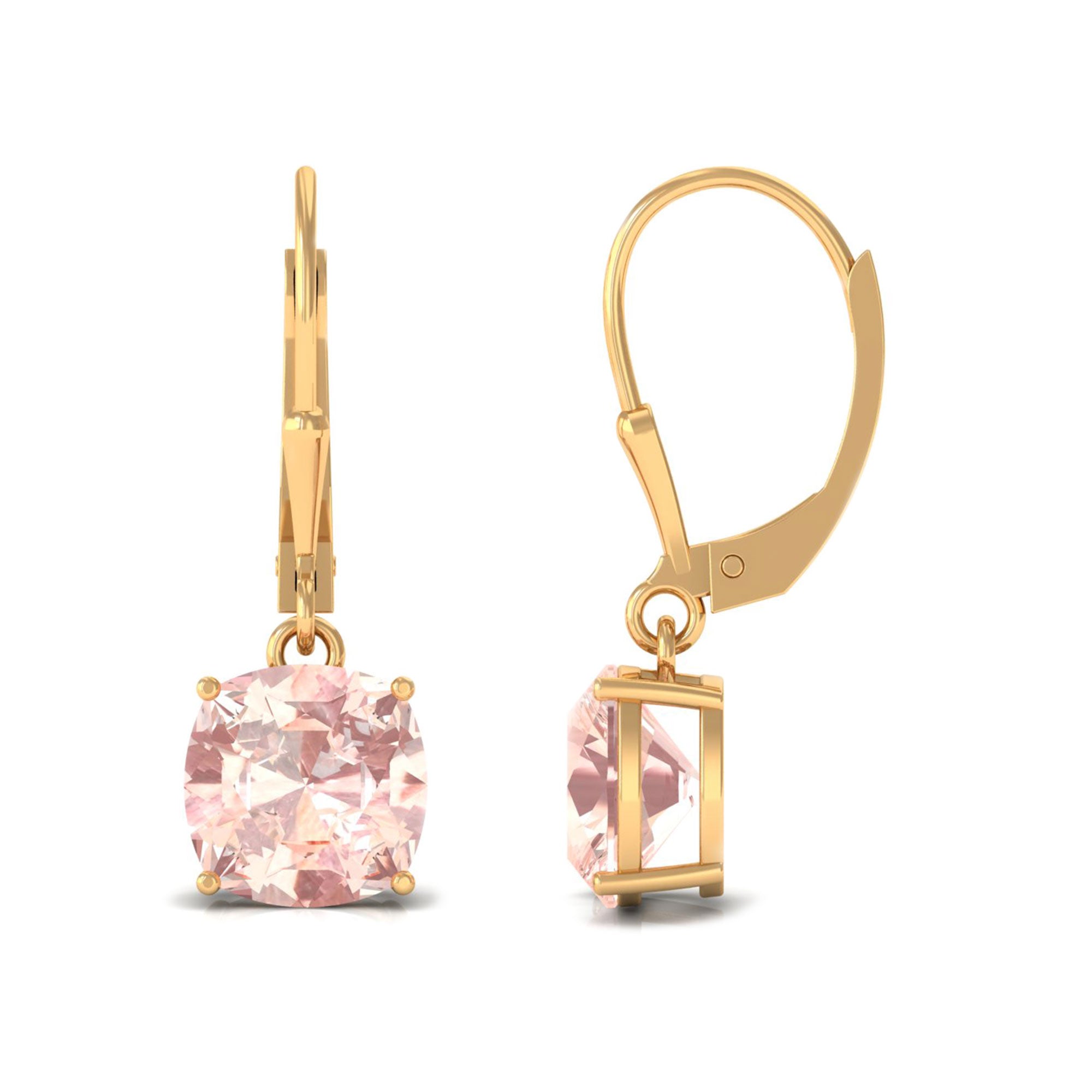 8 MM Cushion Cut Morganite Solitaire Drop Earrings with Lever Back