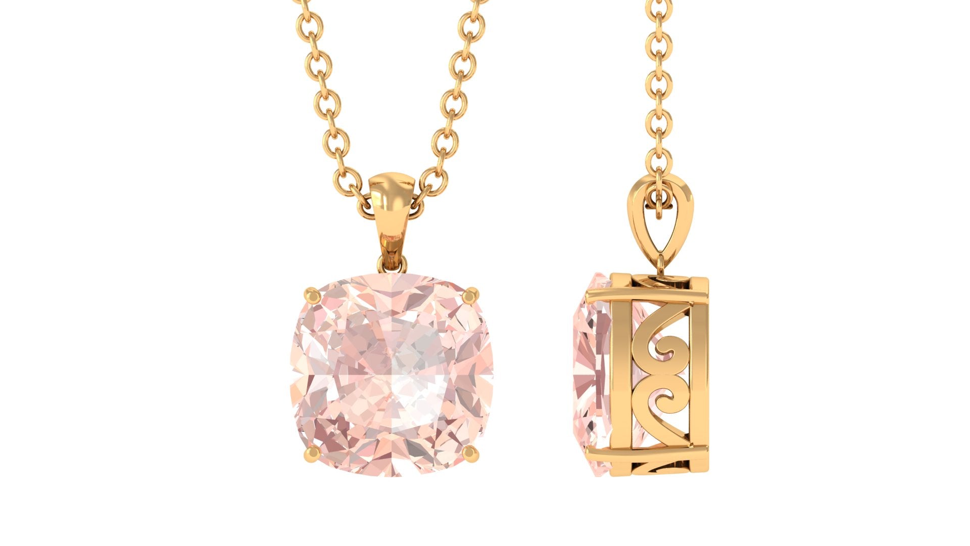 Upgrade your look with this stunning Solitaire Pendant featuring a cushion-cut Morganite as the centerpiece, set in a 4-prong setting.