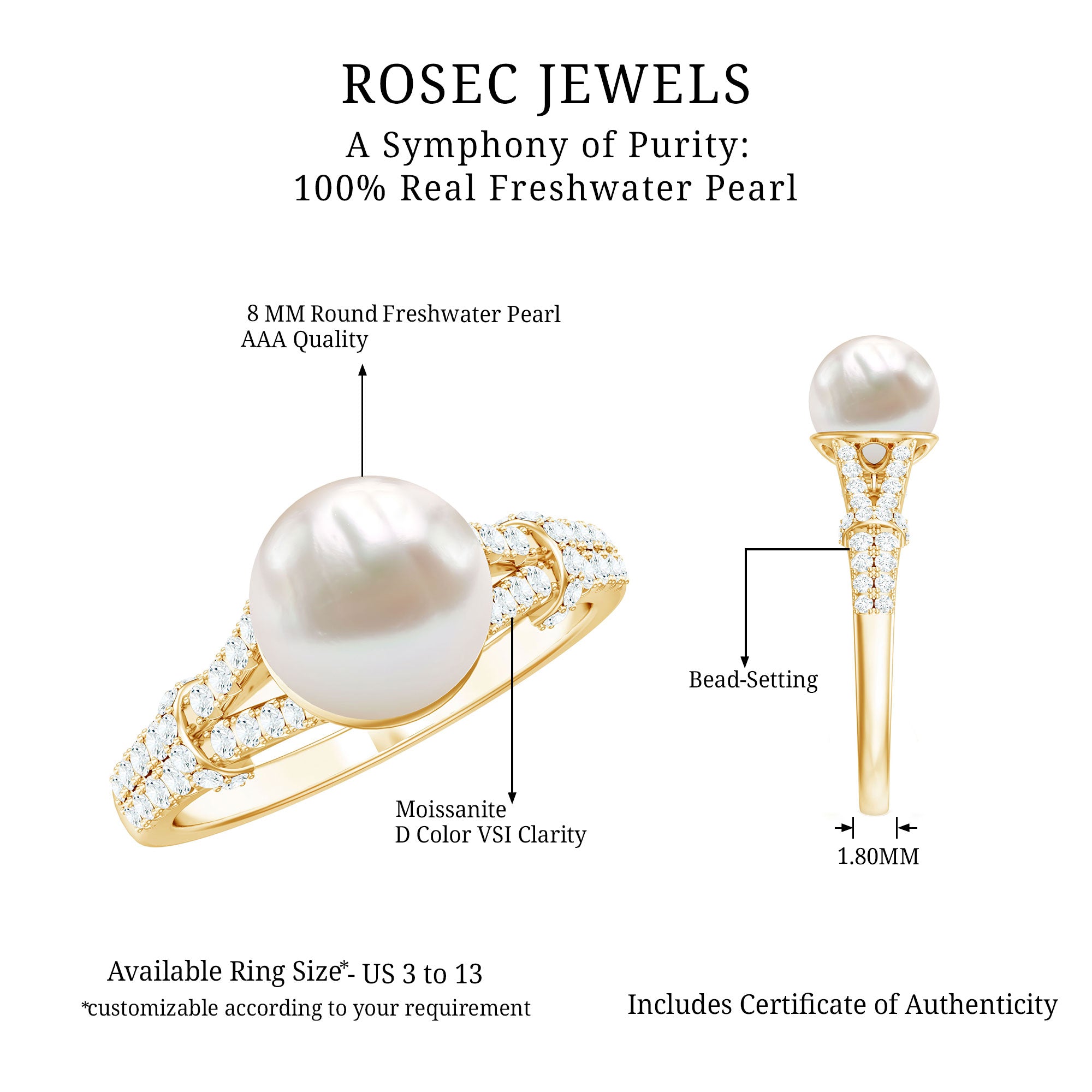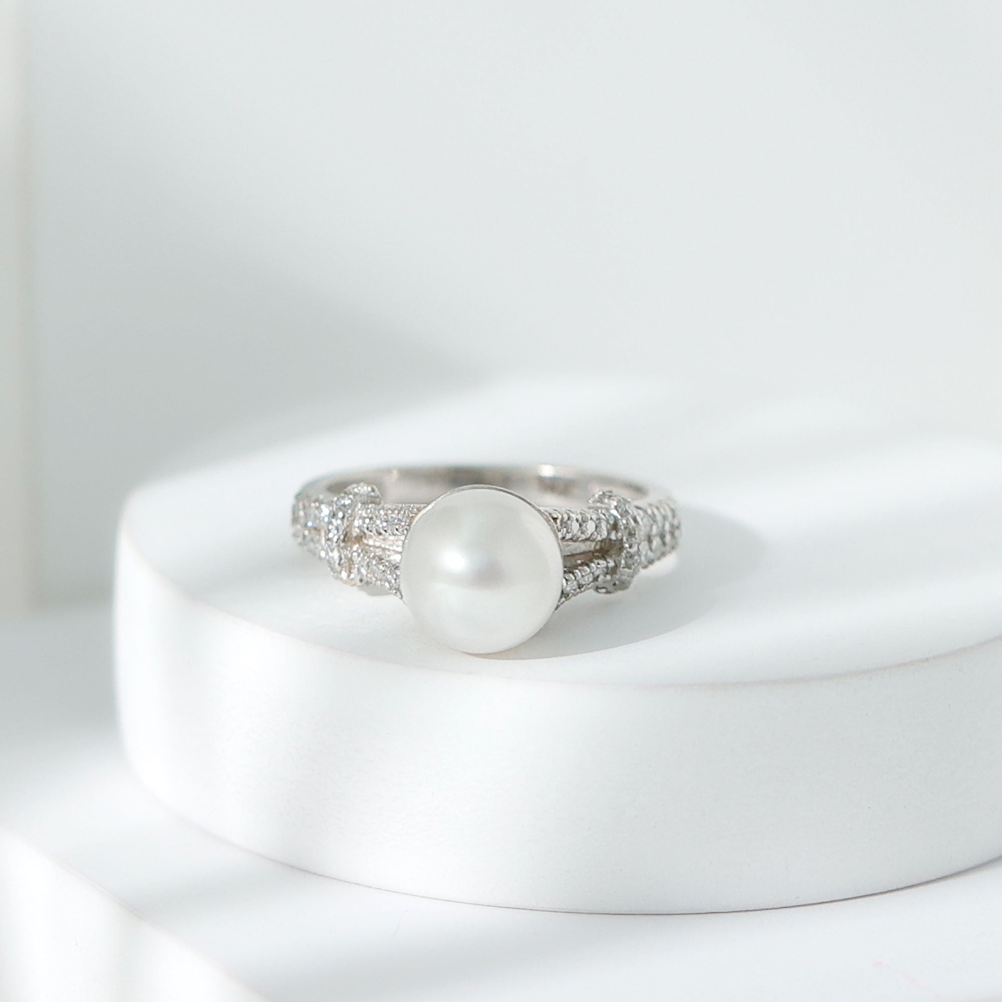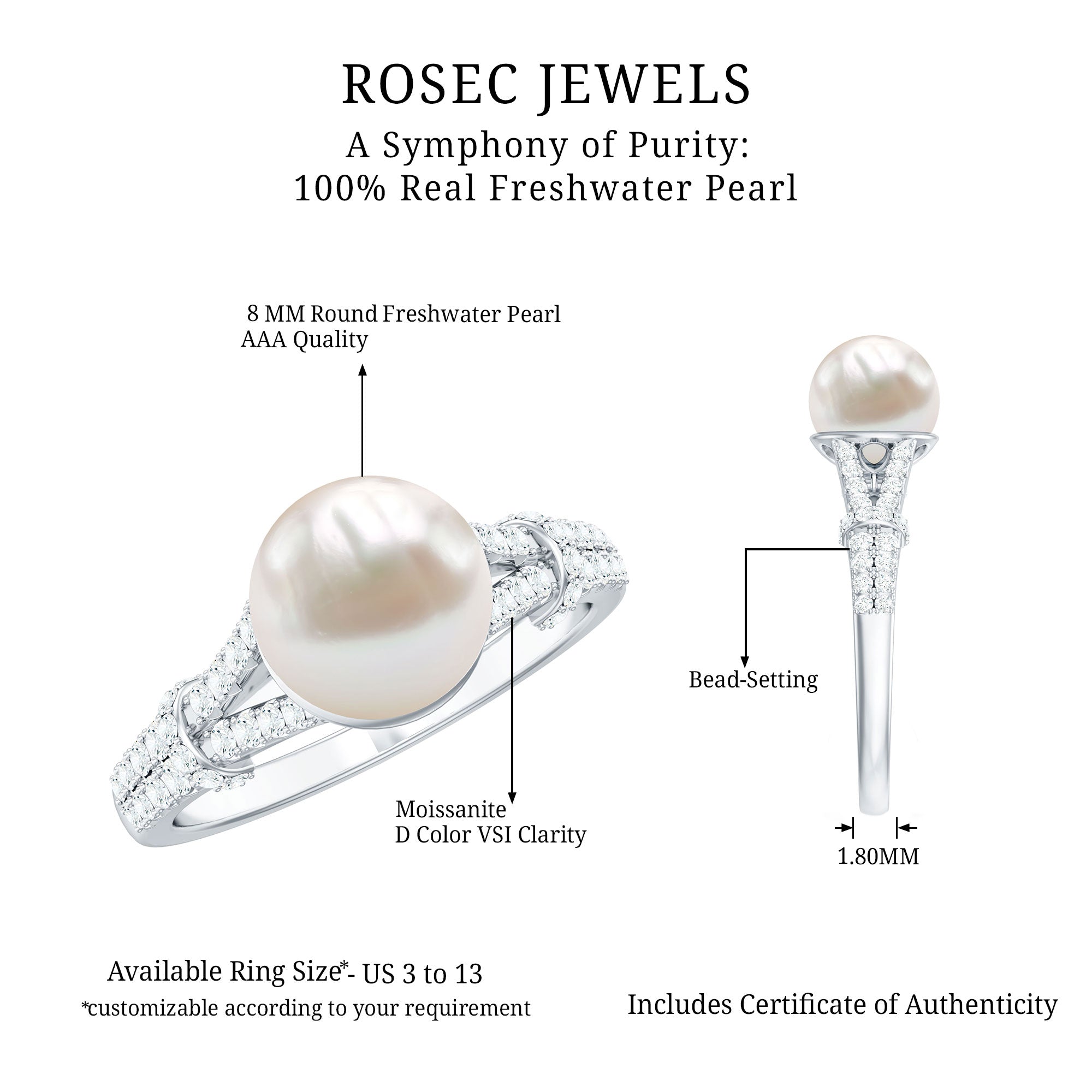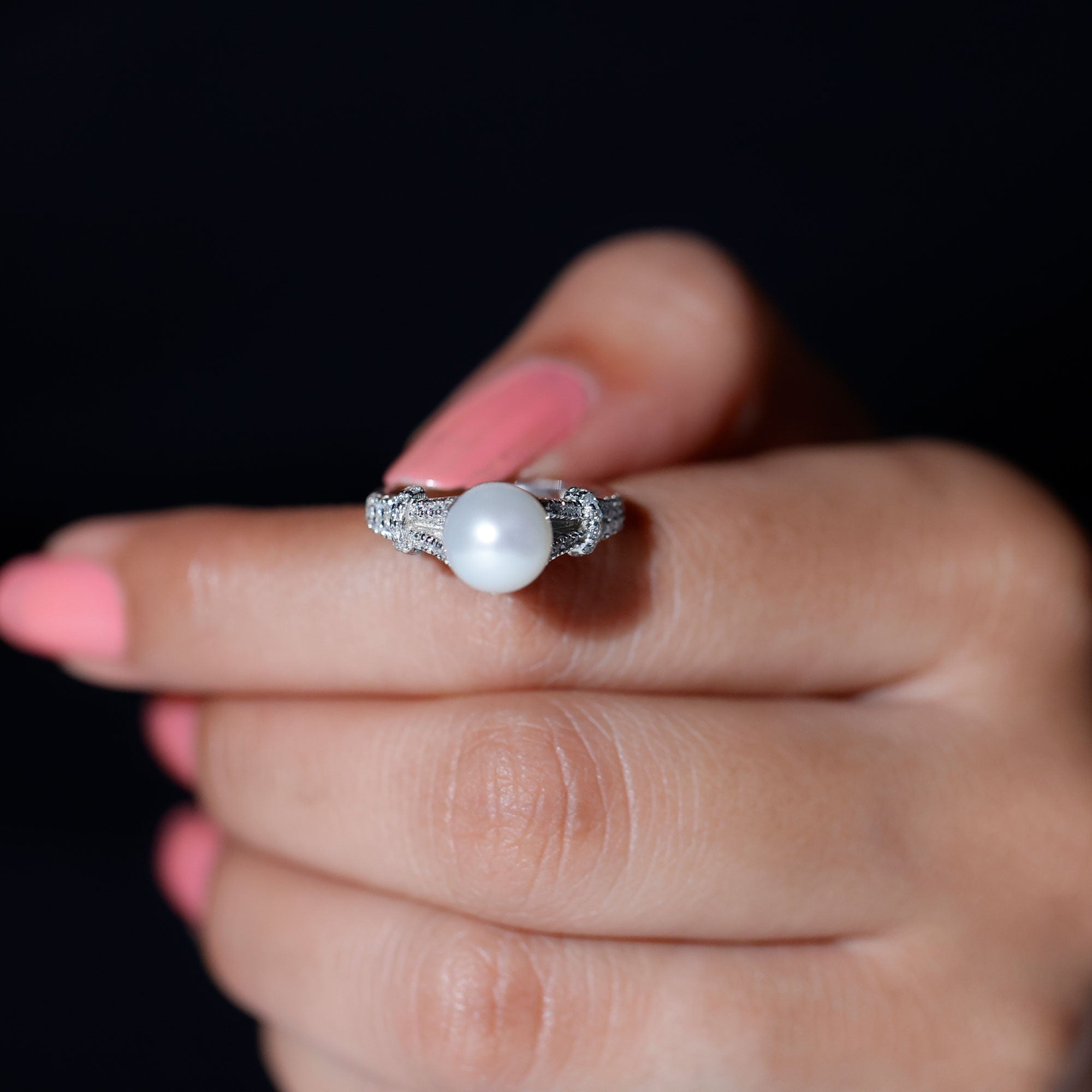 Natural 8 MM Pearl Solitaire Engagement Ring with Moissanite