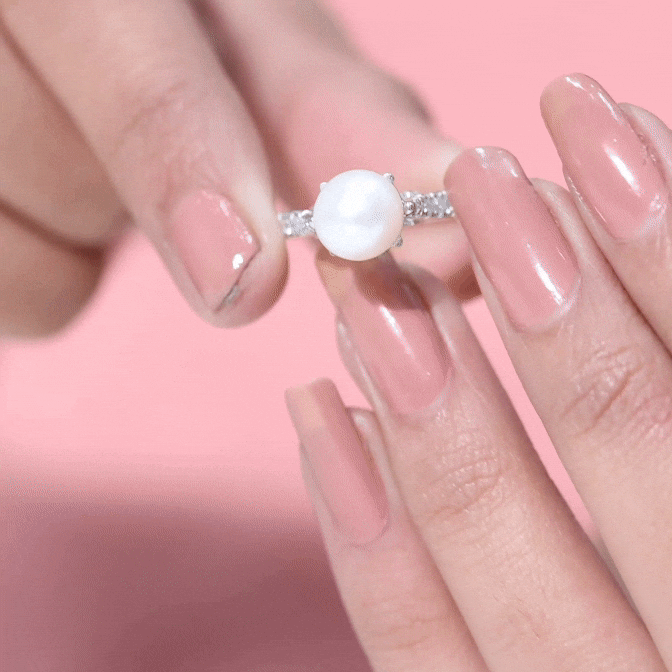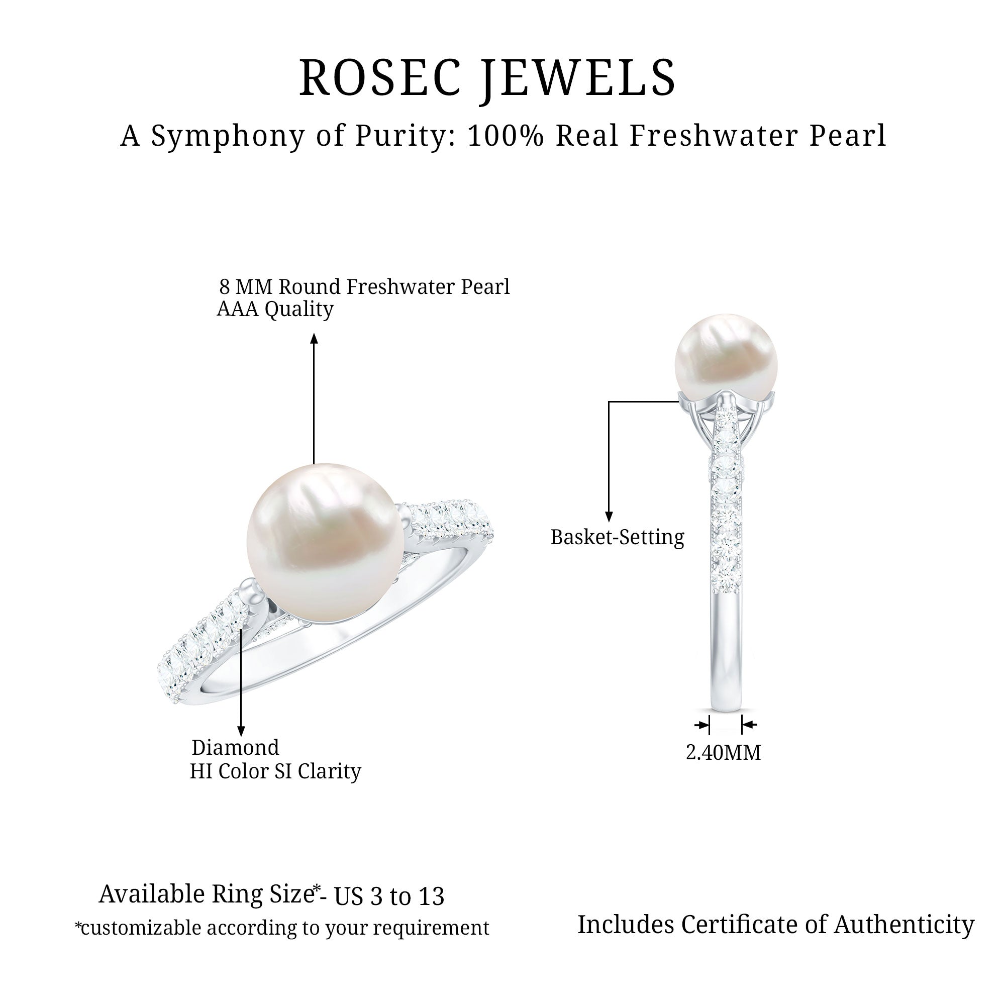 8 MM Freshwater Pearl Solitaire with Diamond Engagement Ring
