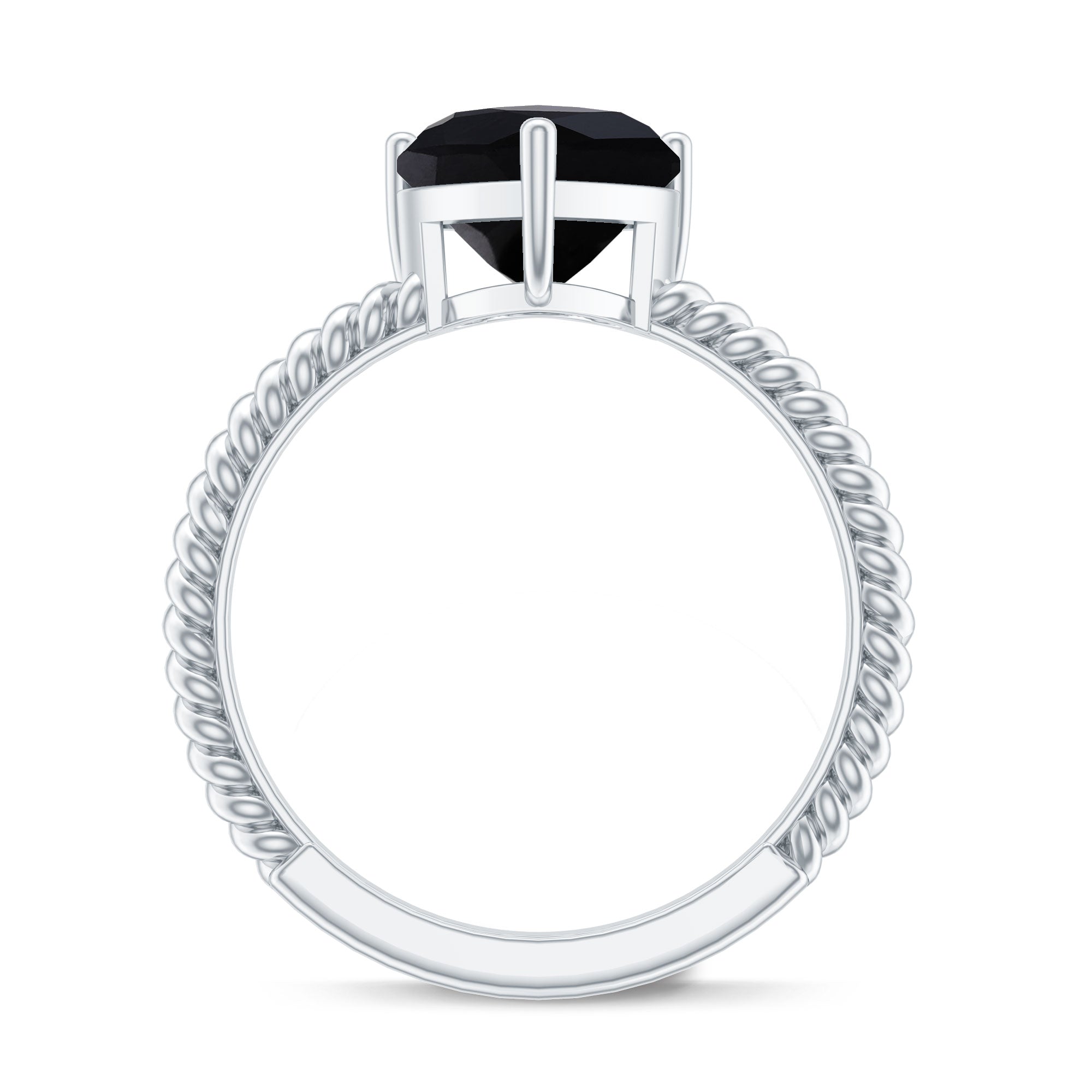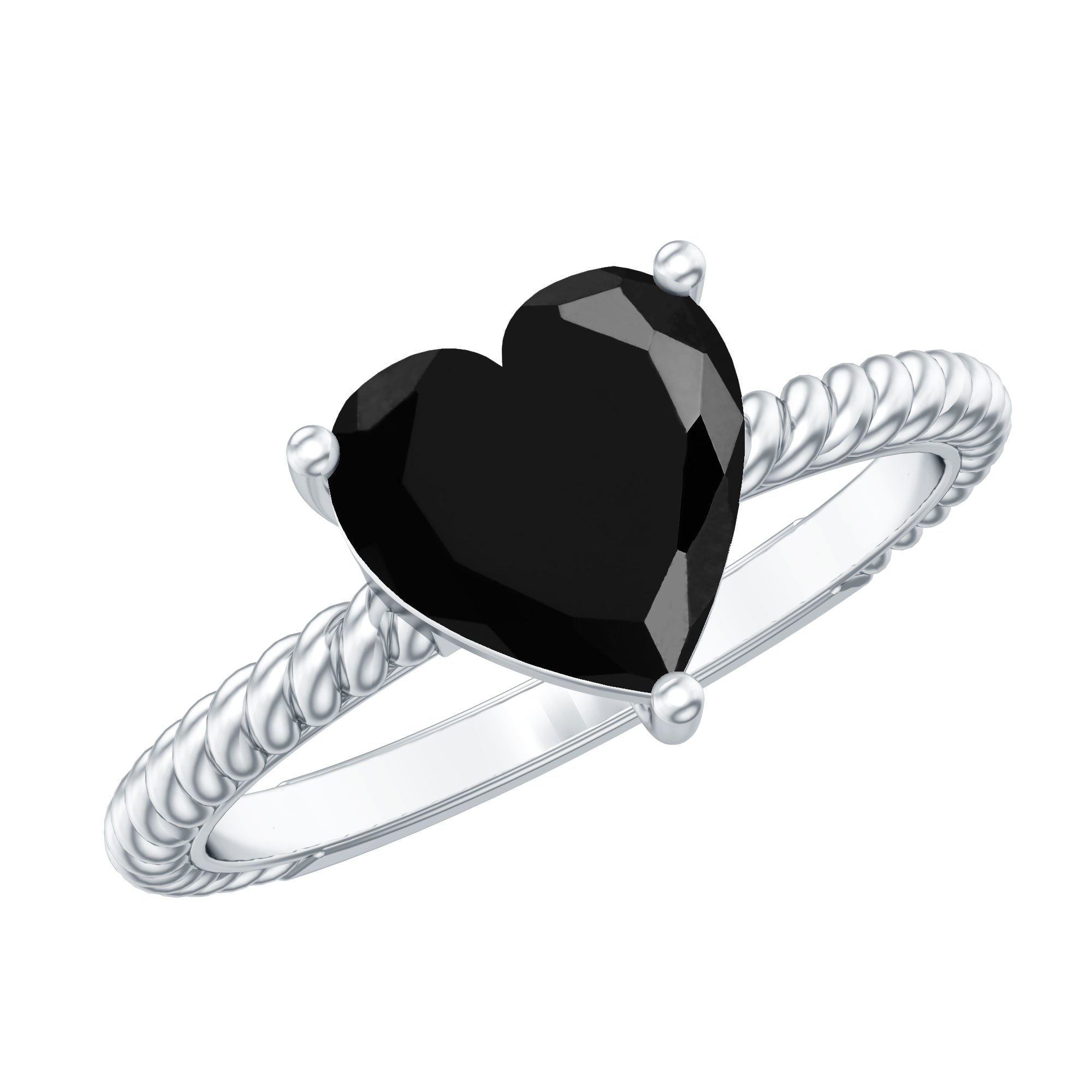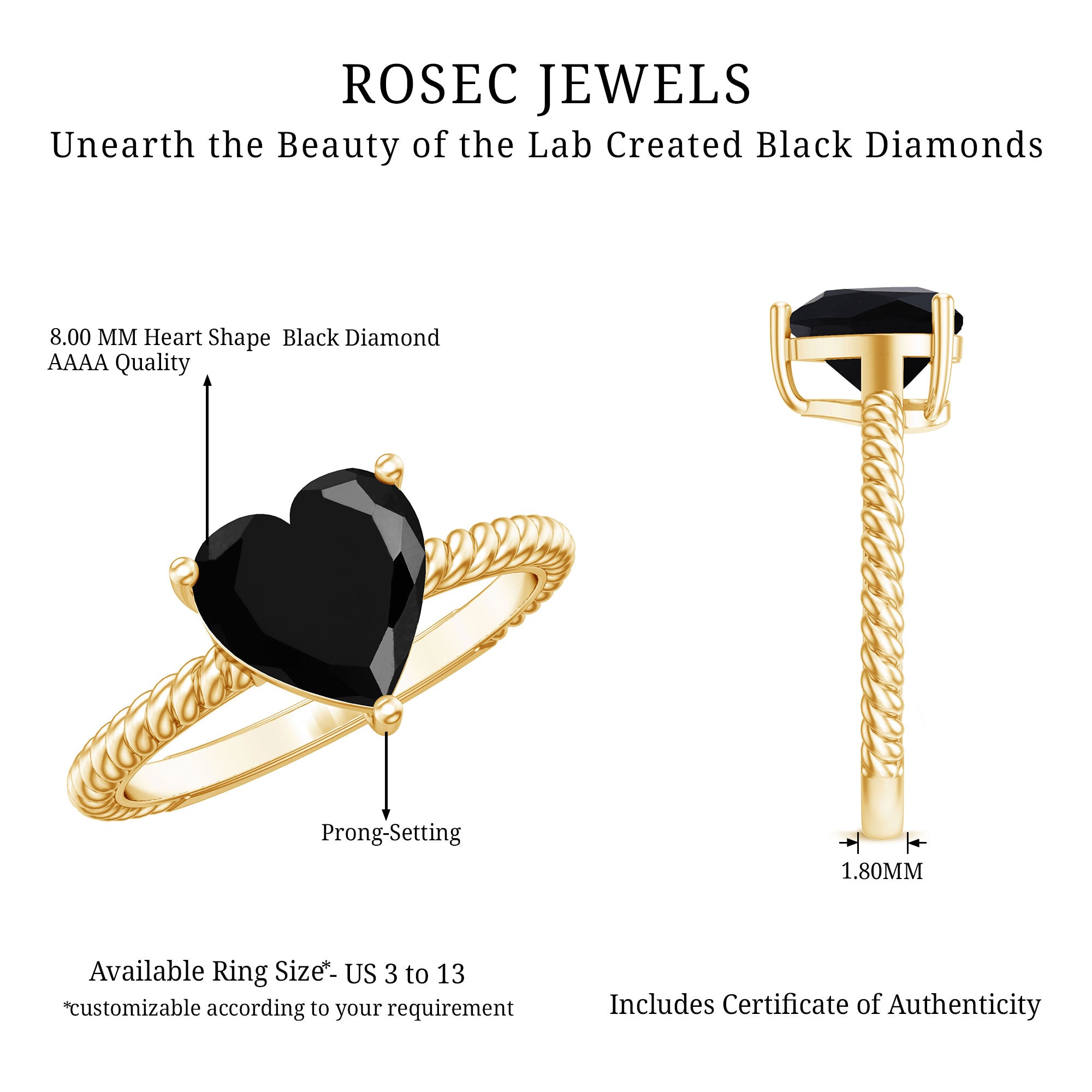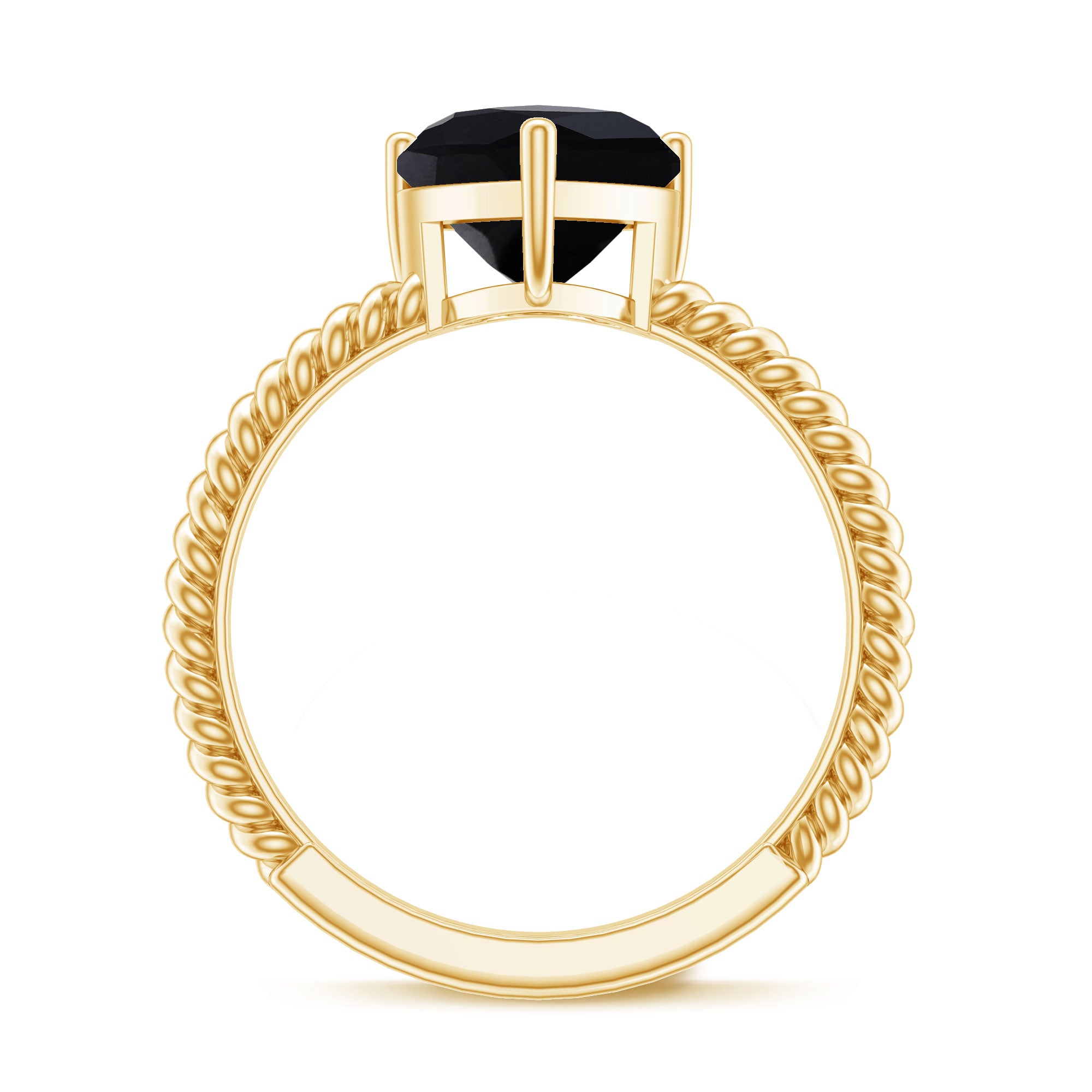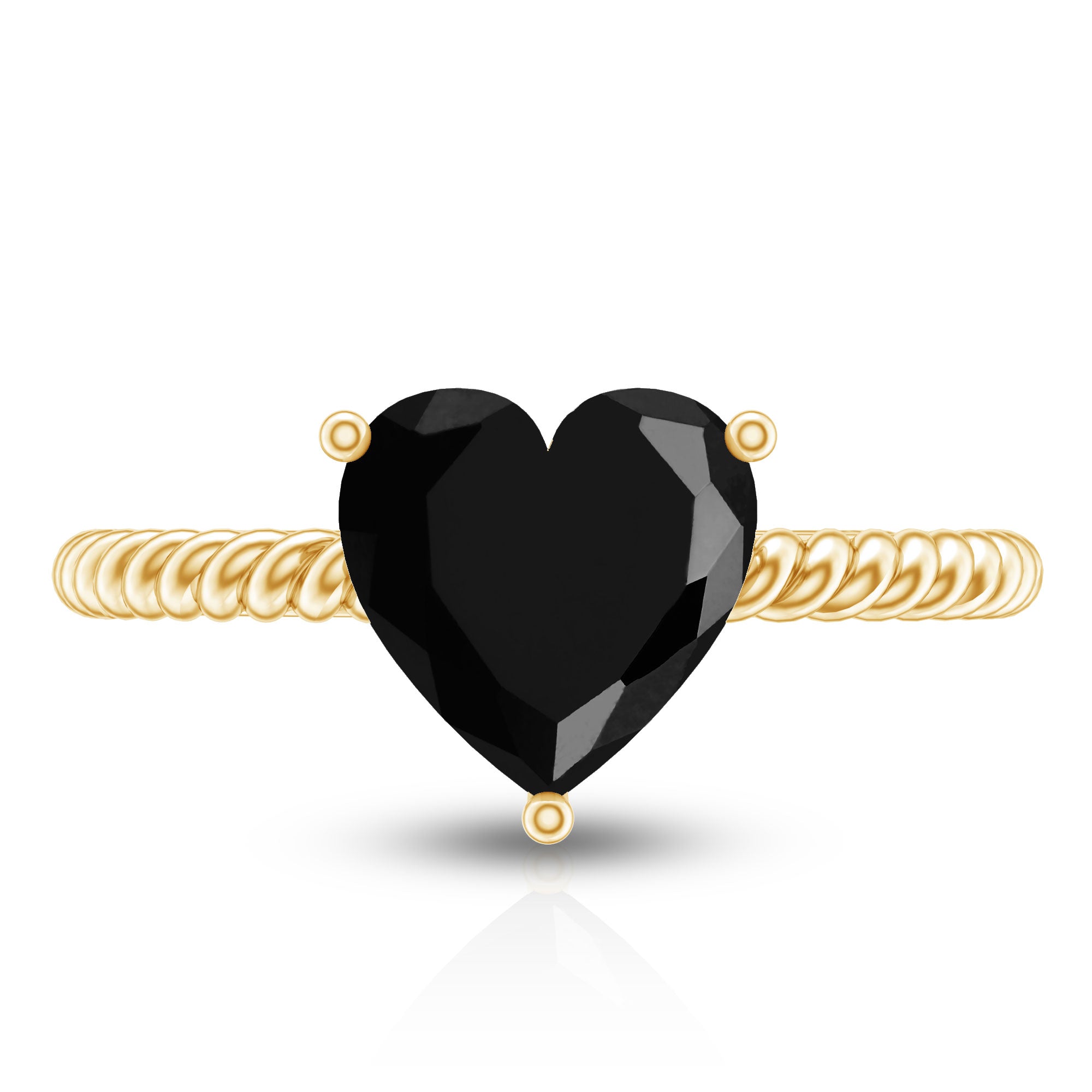 8 MM Heart Shape Created Black Diamond Solitaire Gold Rope Ring
