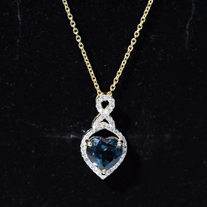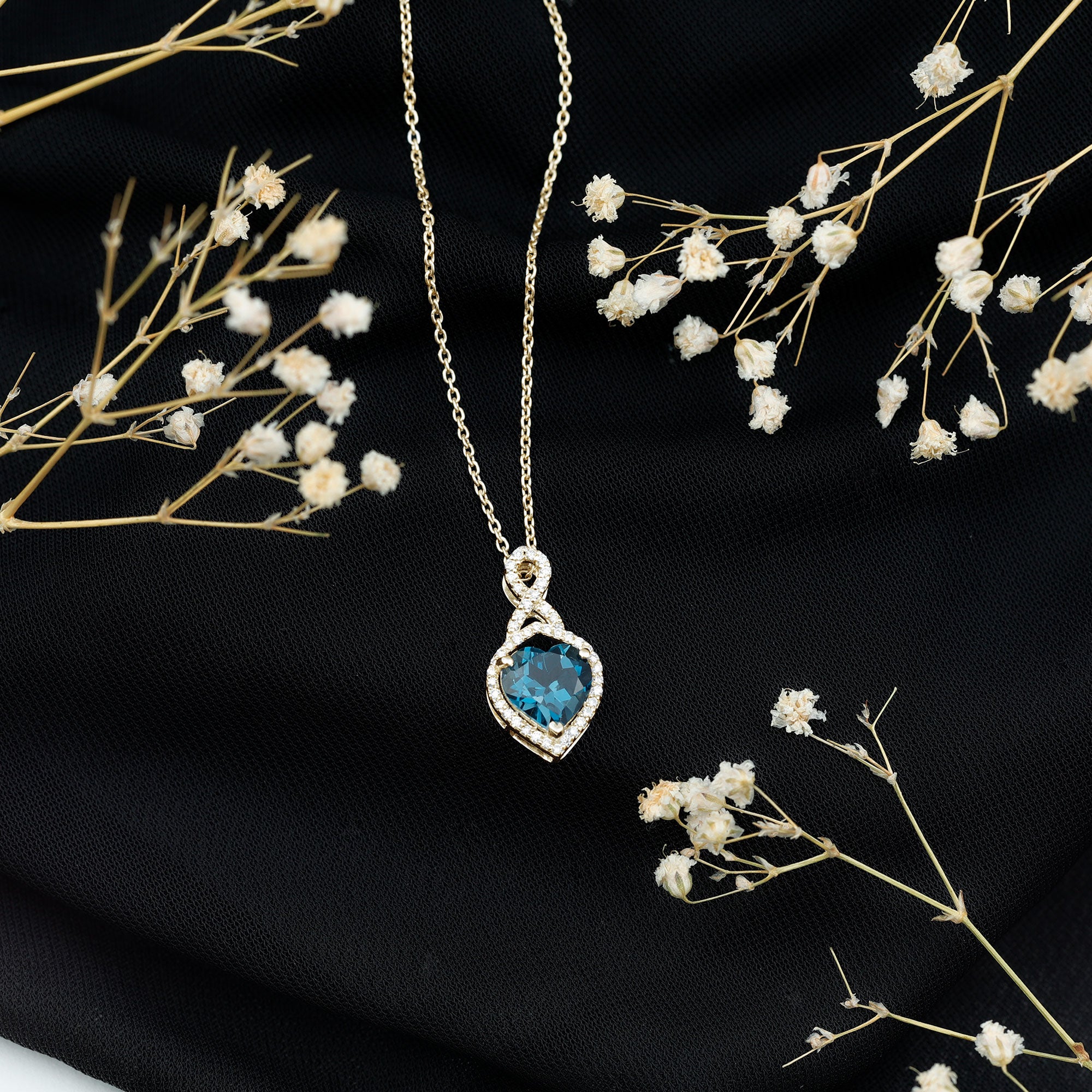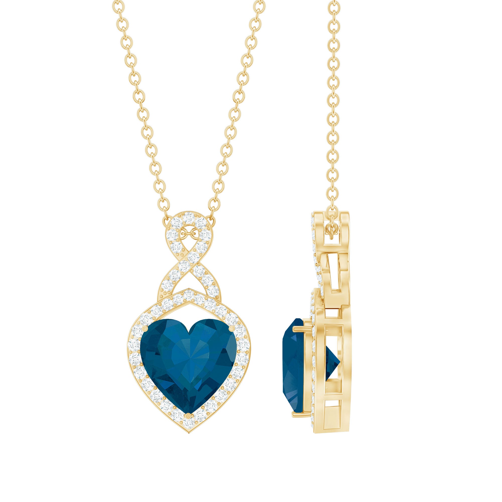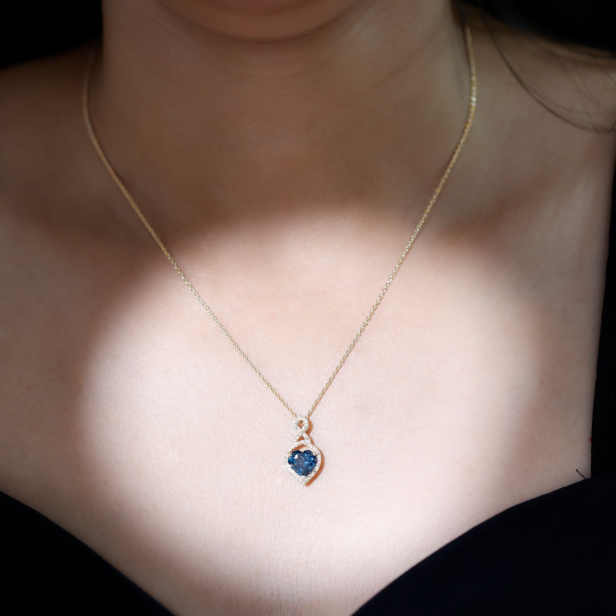 Profess your love with this Infinity Pendant featuring Heart Shape London Blue Topaz set in Prong Setting with Round Shape Diamond set as Accent. This Lovely Pendant is composed of Solid Gold.