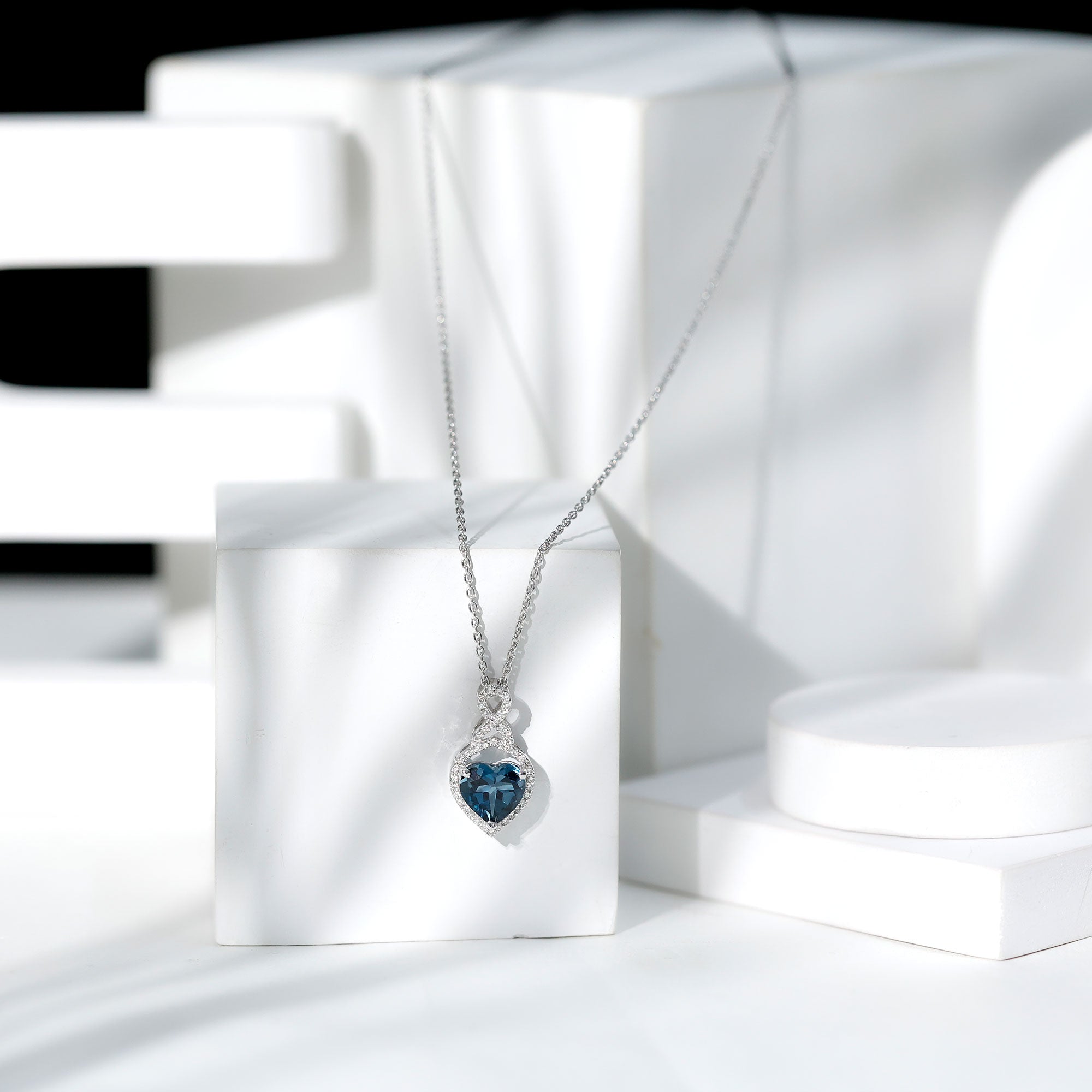 8 MM Heart Shape London Blue Topaz Infinity Pendant with Diamond