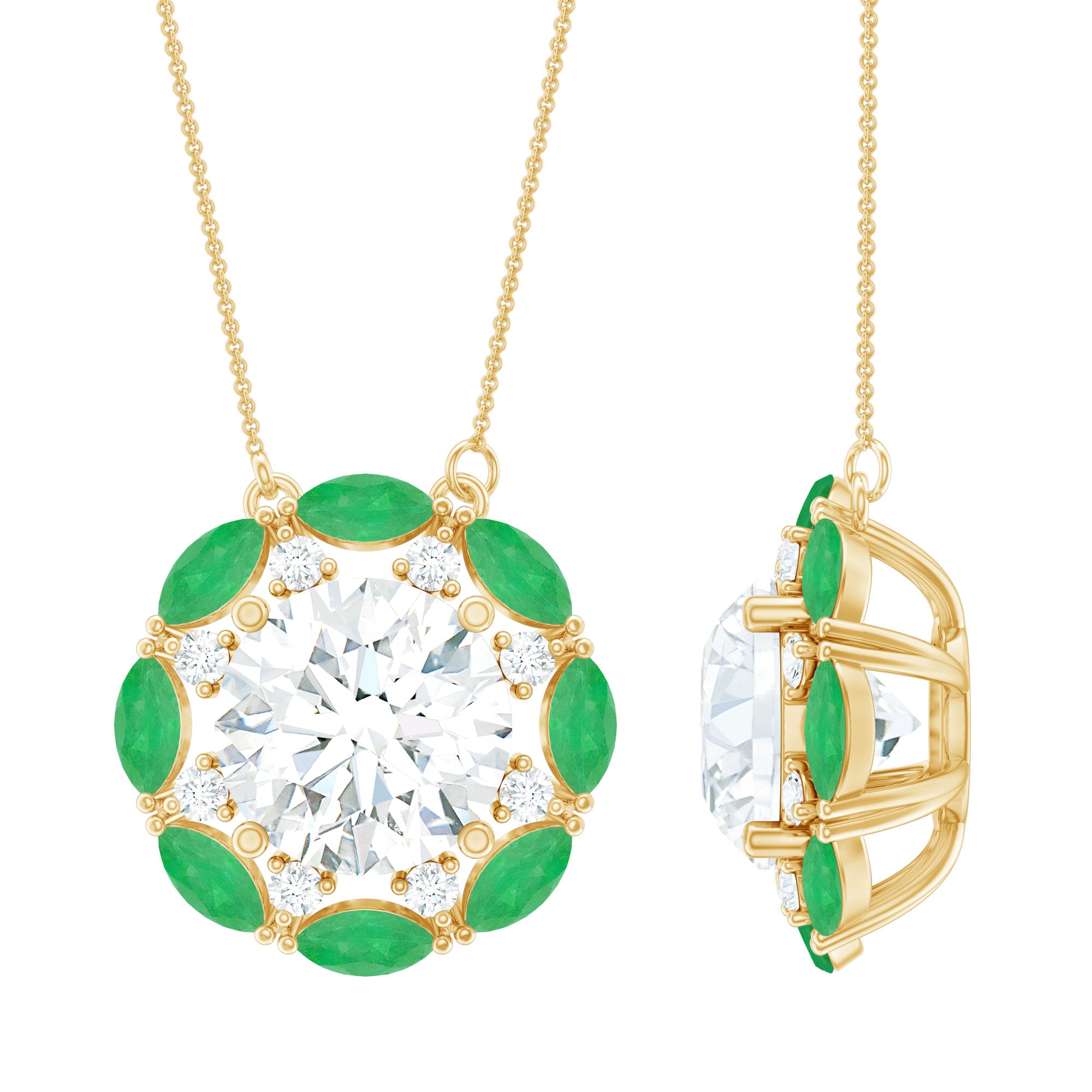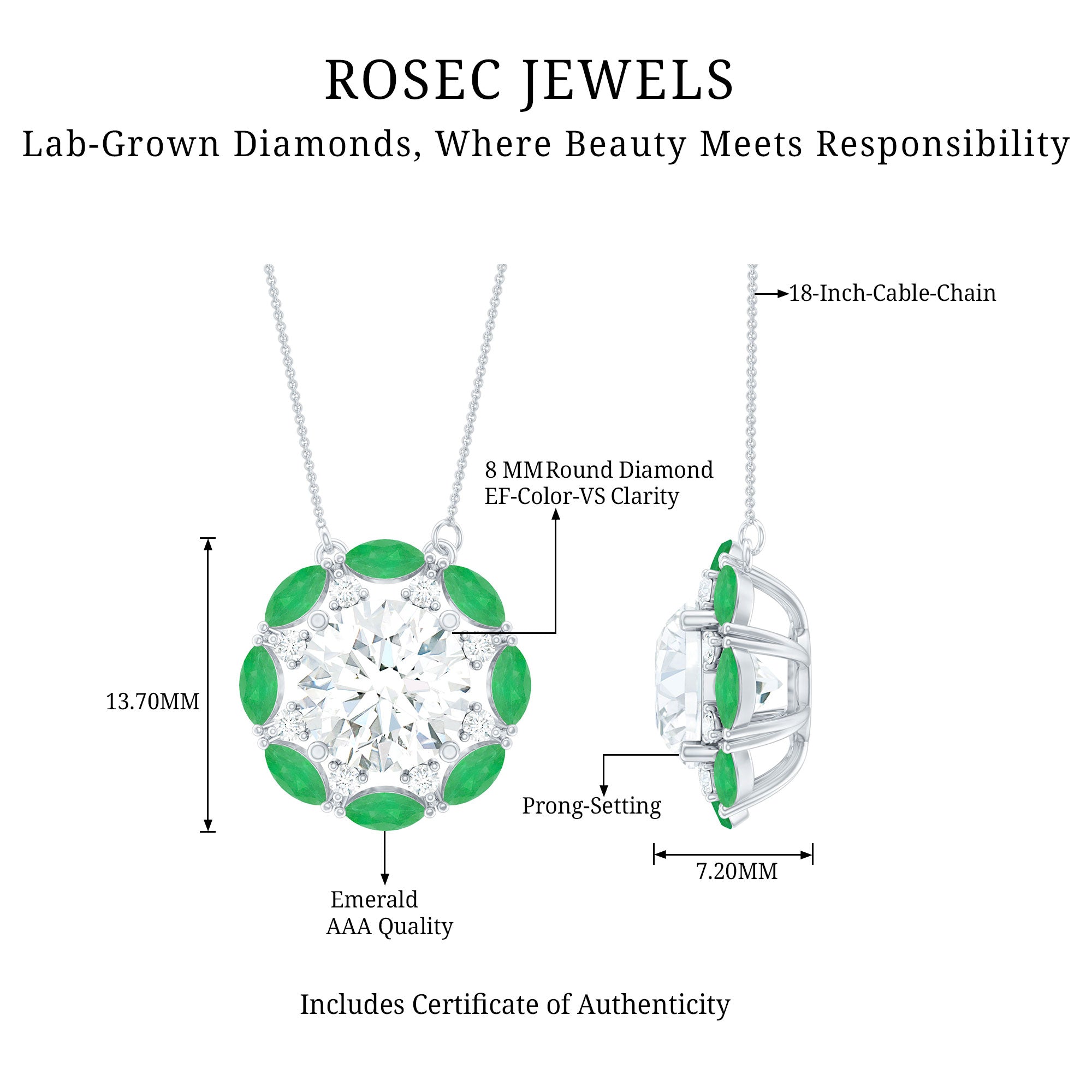 8 MM Lab Grown Diamond Bridal Necklace With Emerald