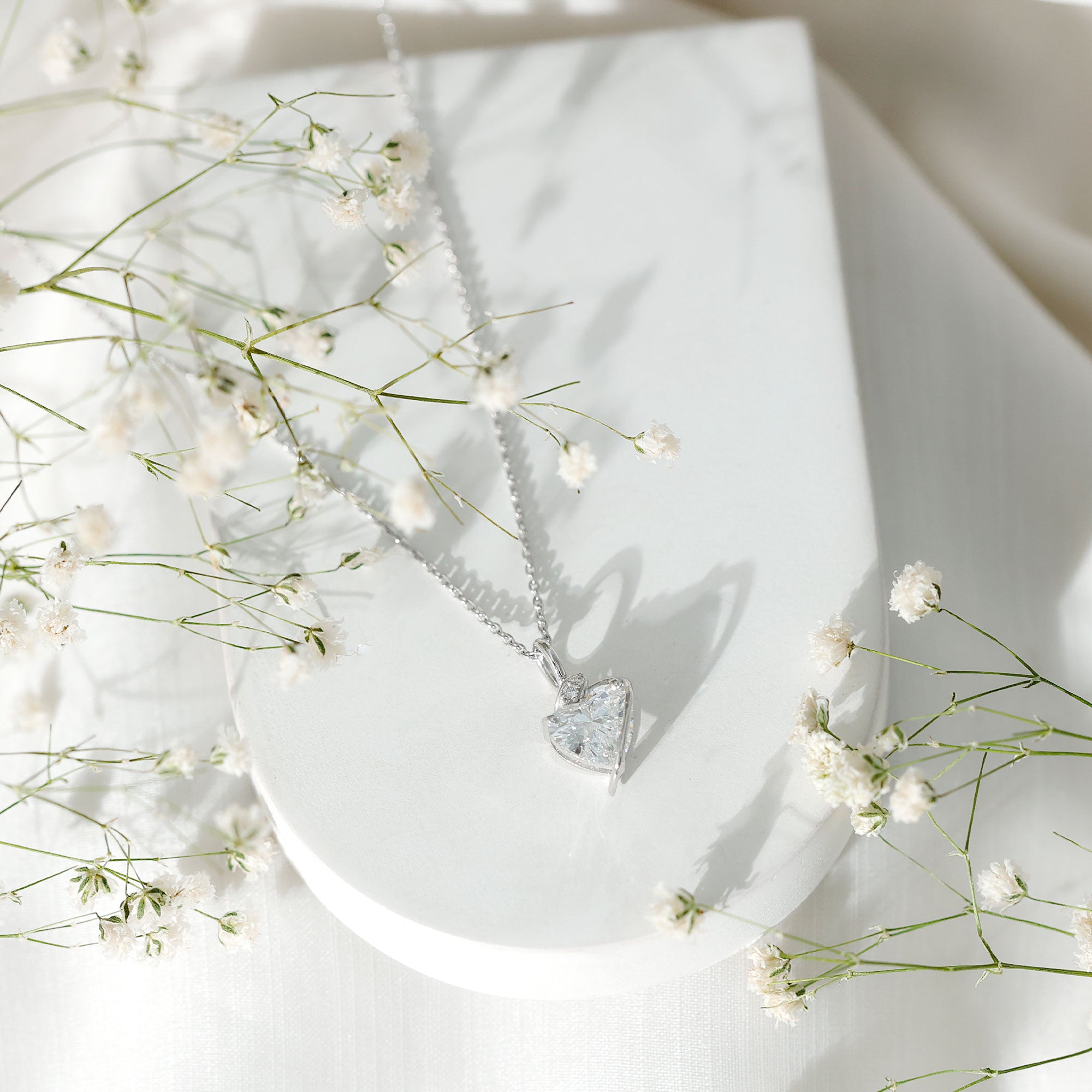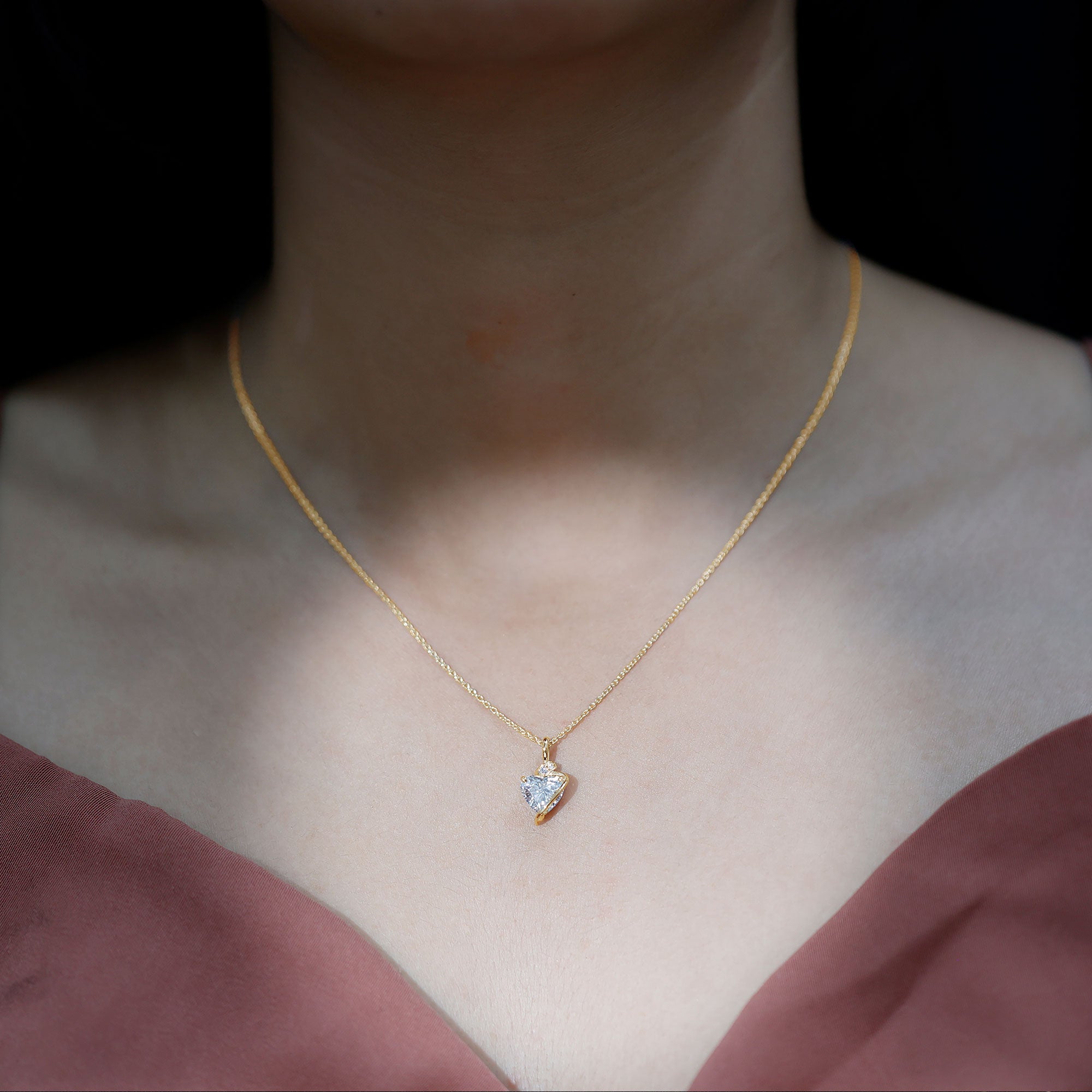 Surprise her by gifting this stunning Lab Grown Diamond Pendant Necklace. This charming Solitaire Pendant is sure to captivate her with its refined beauty, featuring an 8 MM heart-shaped lab-grown diamond elegantly set in prong setting, complemented by two small round diamonds positioned above the heart. Crafted with EF-VS quality diamonds, radiating sophistication and allure. This Diamond Heart Necklace is presented in a luxurious box that can be used for storage when not worn, and it comes in a variety of metal colors and purity options. Experience ethical luxury with Rosec Jewels, a name that stands for exceptional craftsmanship and innovation.