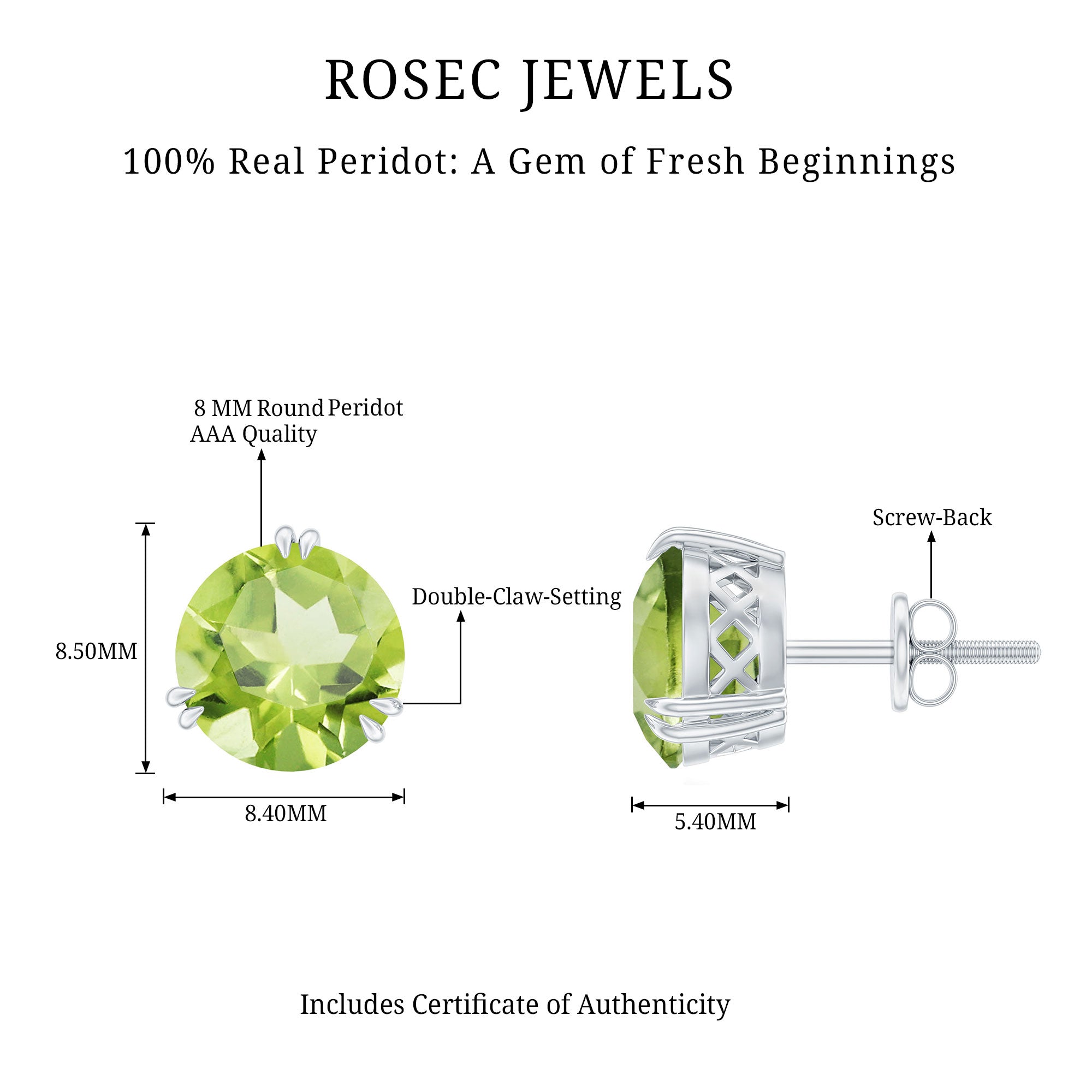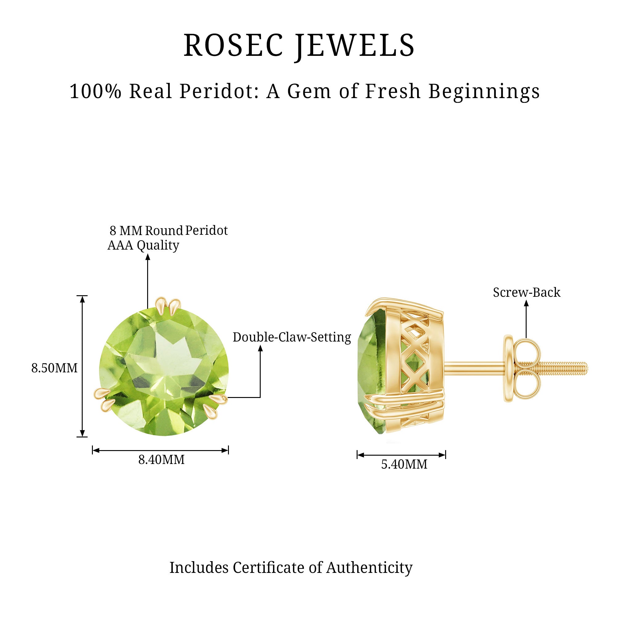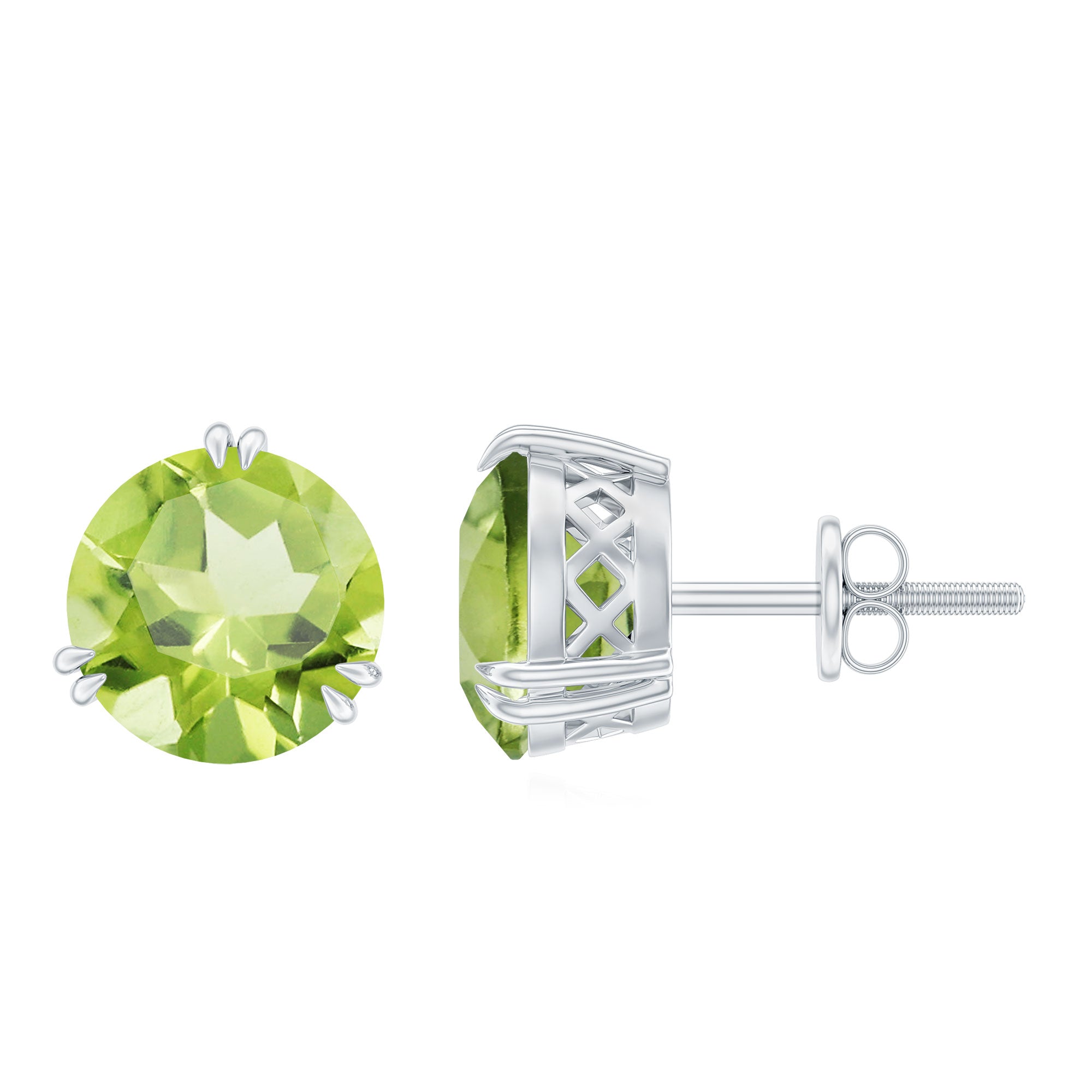 8 MM Peridot Solitaire Stud Earrings in Double Prong Setting