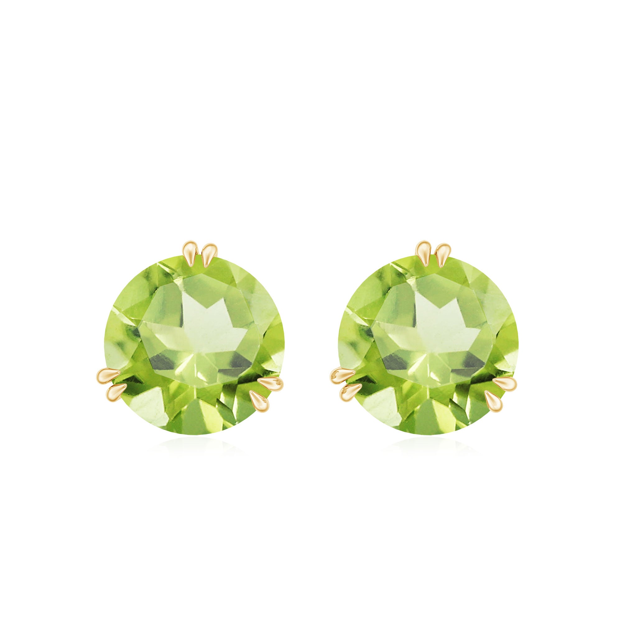 Flaunt with these beautiful Solitaire Stud Earrings embellished with Round Shape Peridot set as Solitaire in Double Prong Setting. This Simple Stud Earring is Composed of Solid Gold.