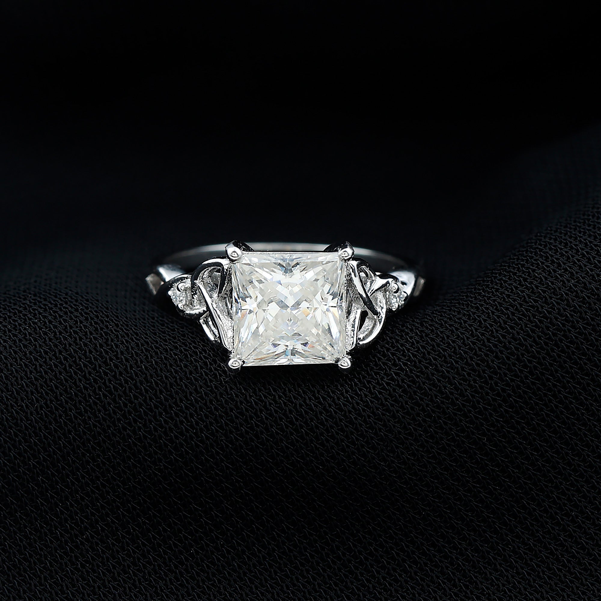 8 MM Princess Cut Moissanite Solitaire Engagement Celtic Ring