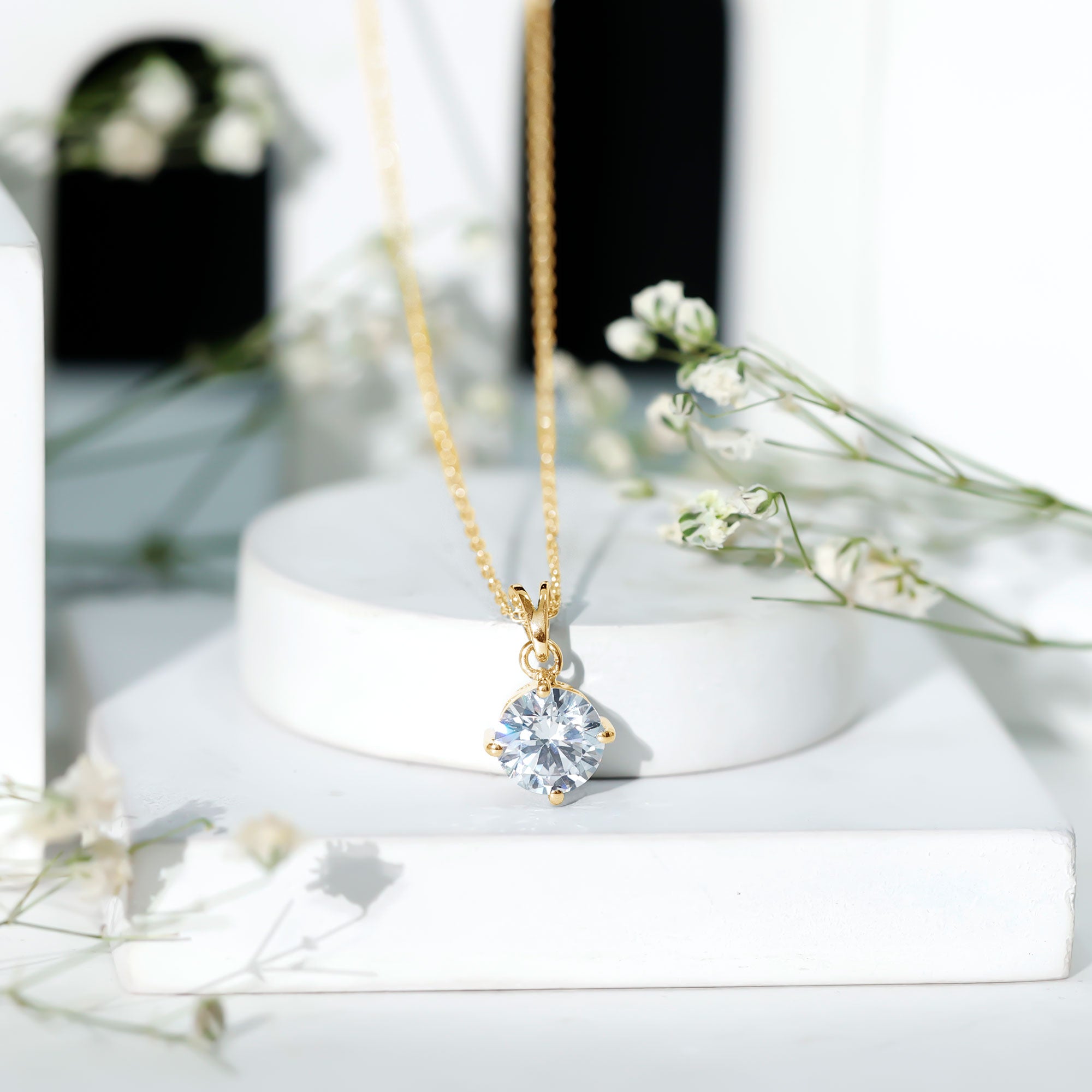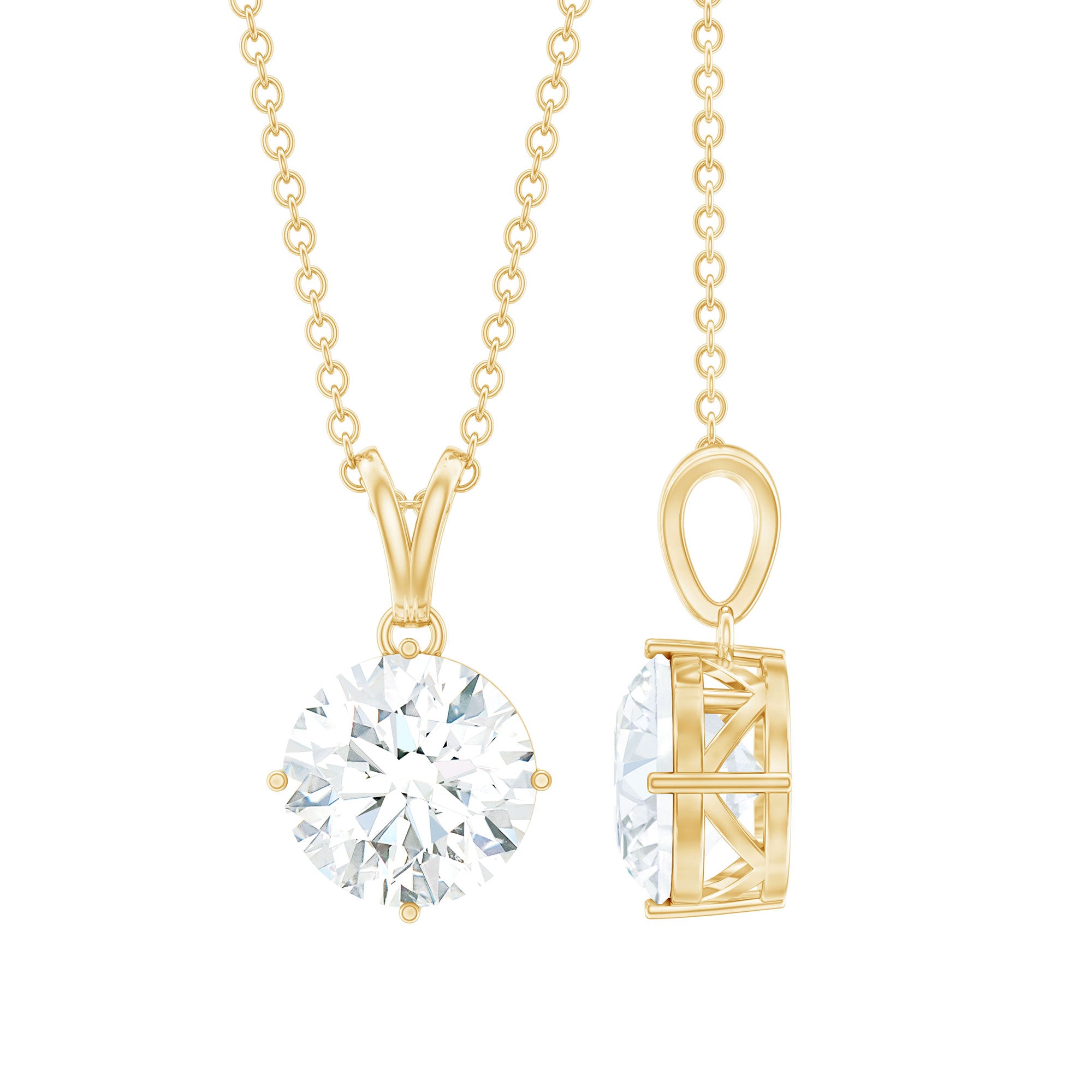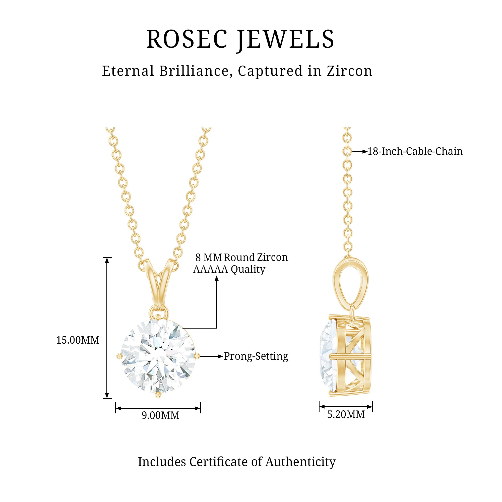 8 MM Round Certified Cubic Zirconia Solitaire Pendant Necklace in Gold