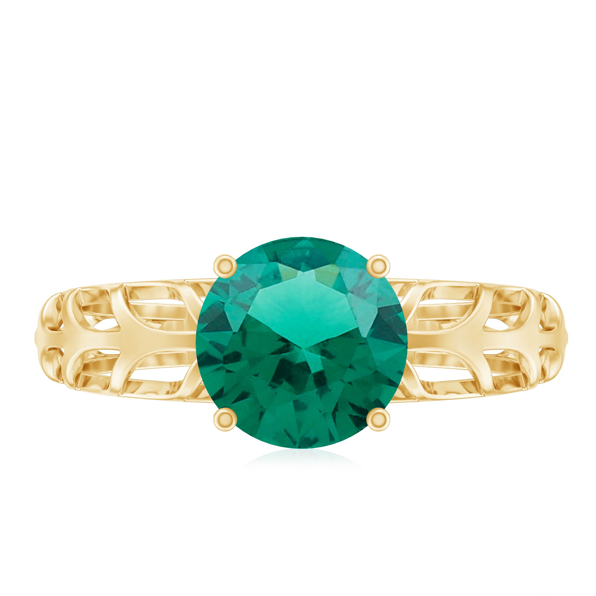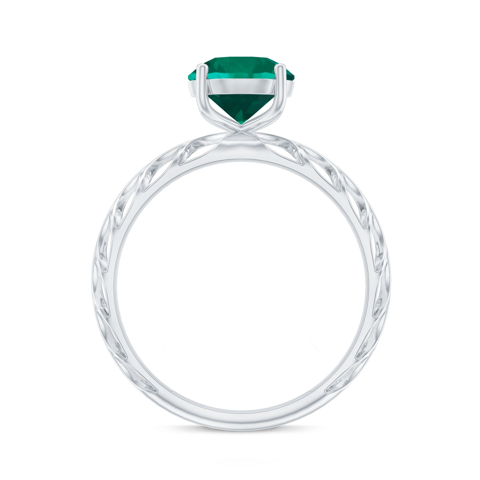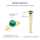 Certified Solitaire Lab Grown Emerald Engagement Ring with Filigree Details