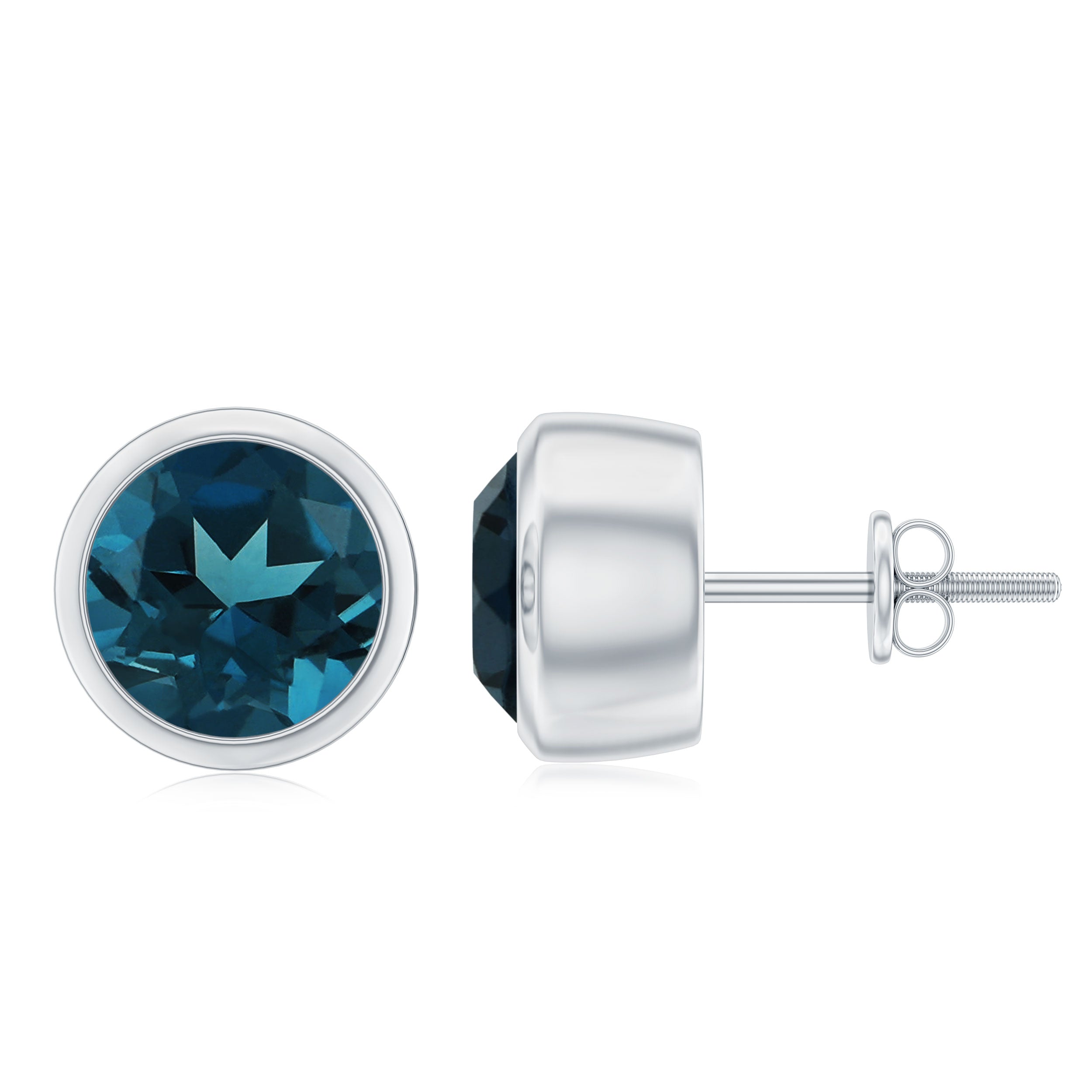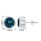 8 MM Round Cut London Blue Topaz Solitaire Stud Earrings in Bezel Setting