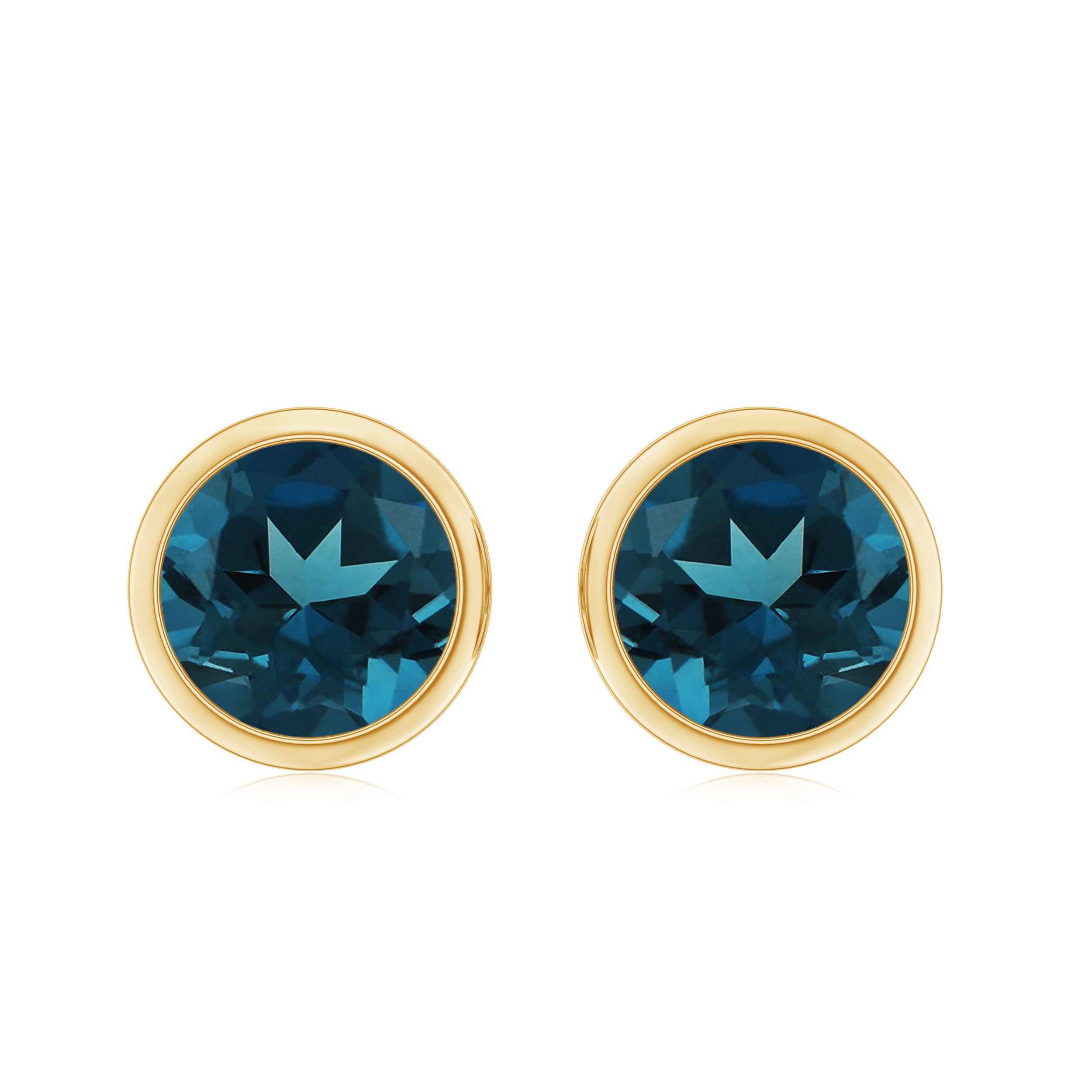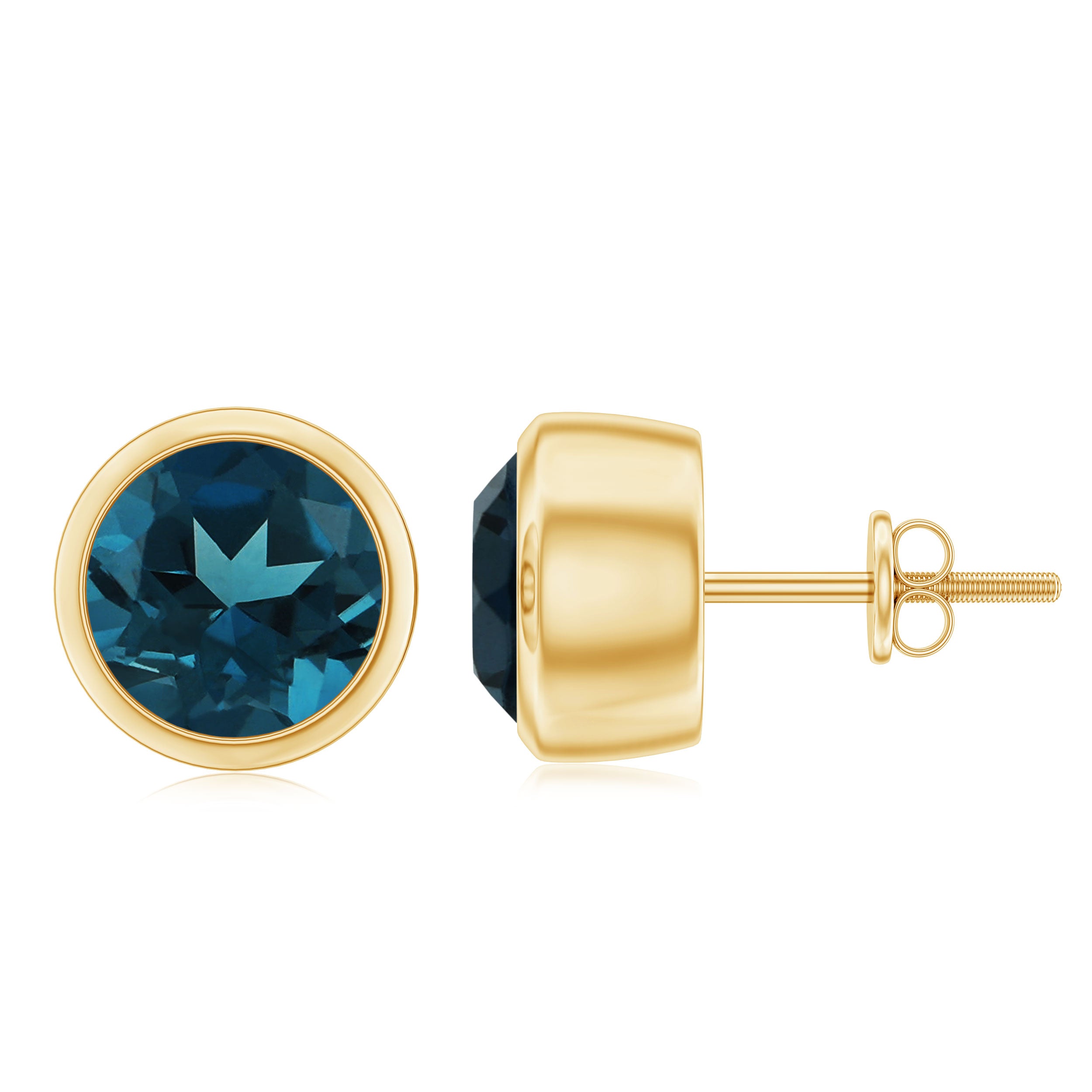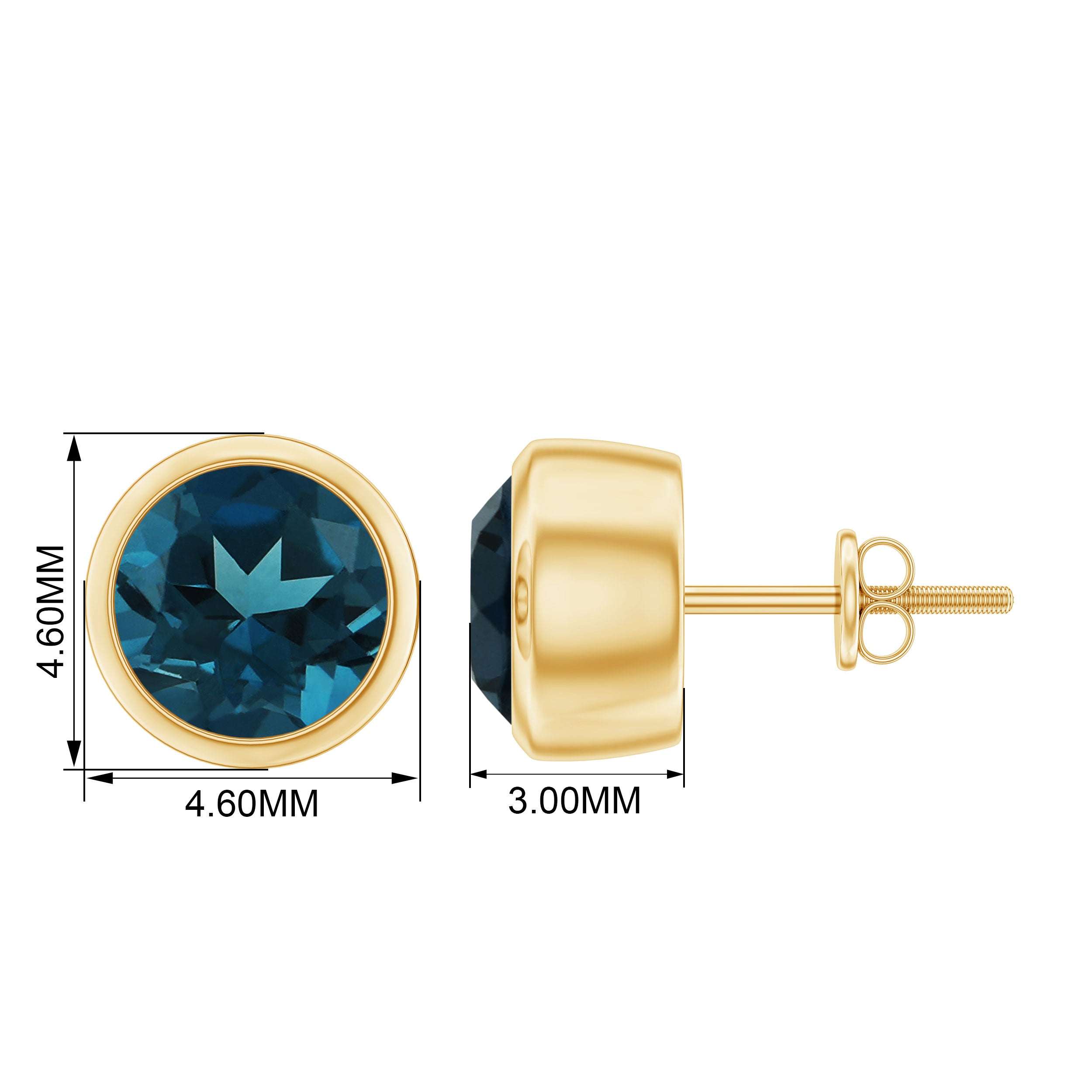 These simple yet classic Stud Earrings are designed with Round Cut London Blue Topaz in Bezel Setting. The earrings are crafted with Solid Gold to create an opulent appeal.