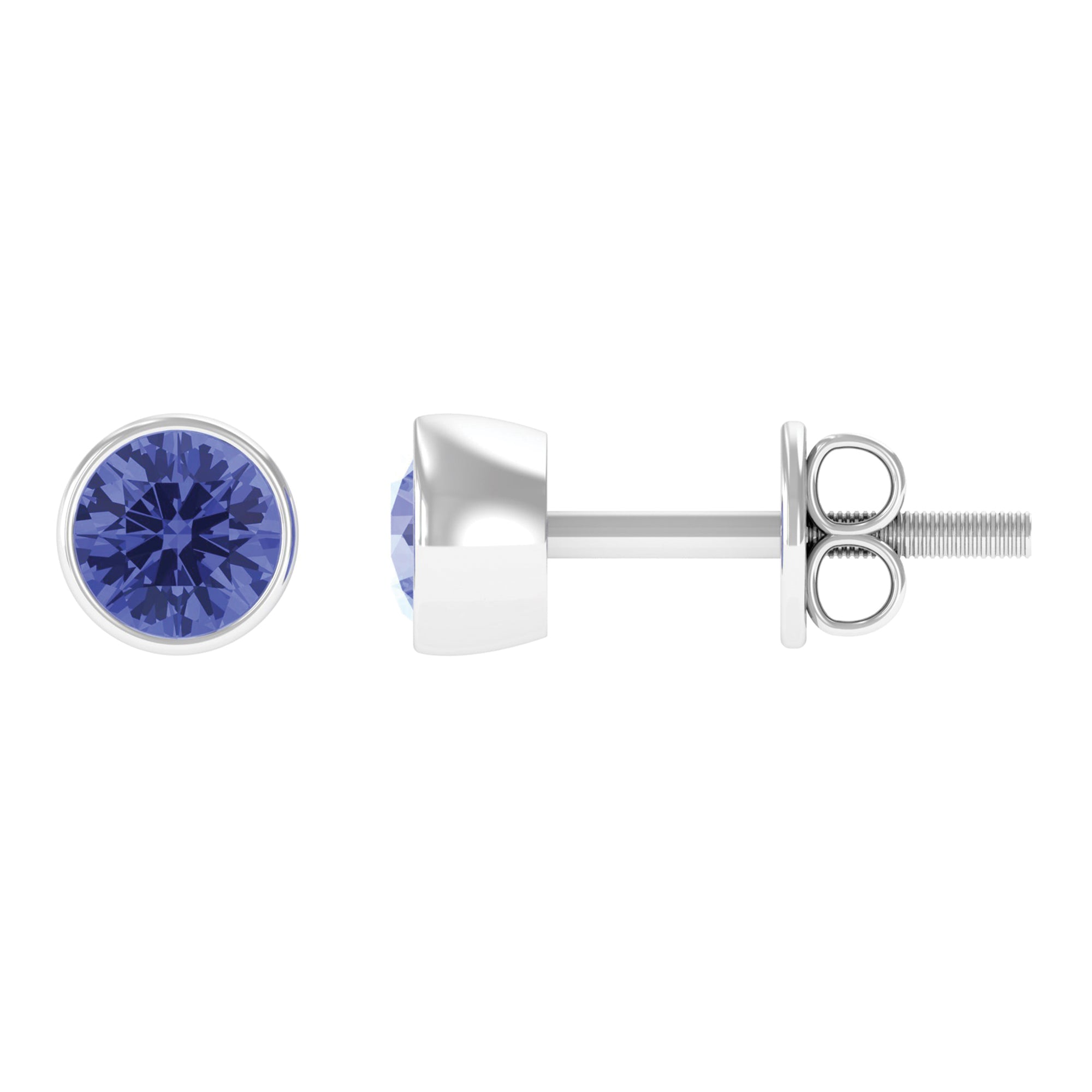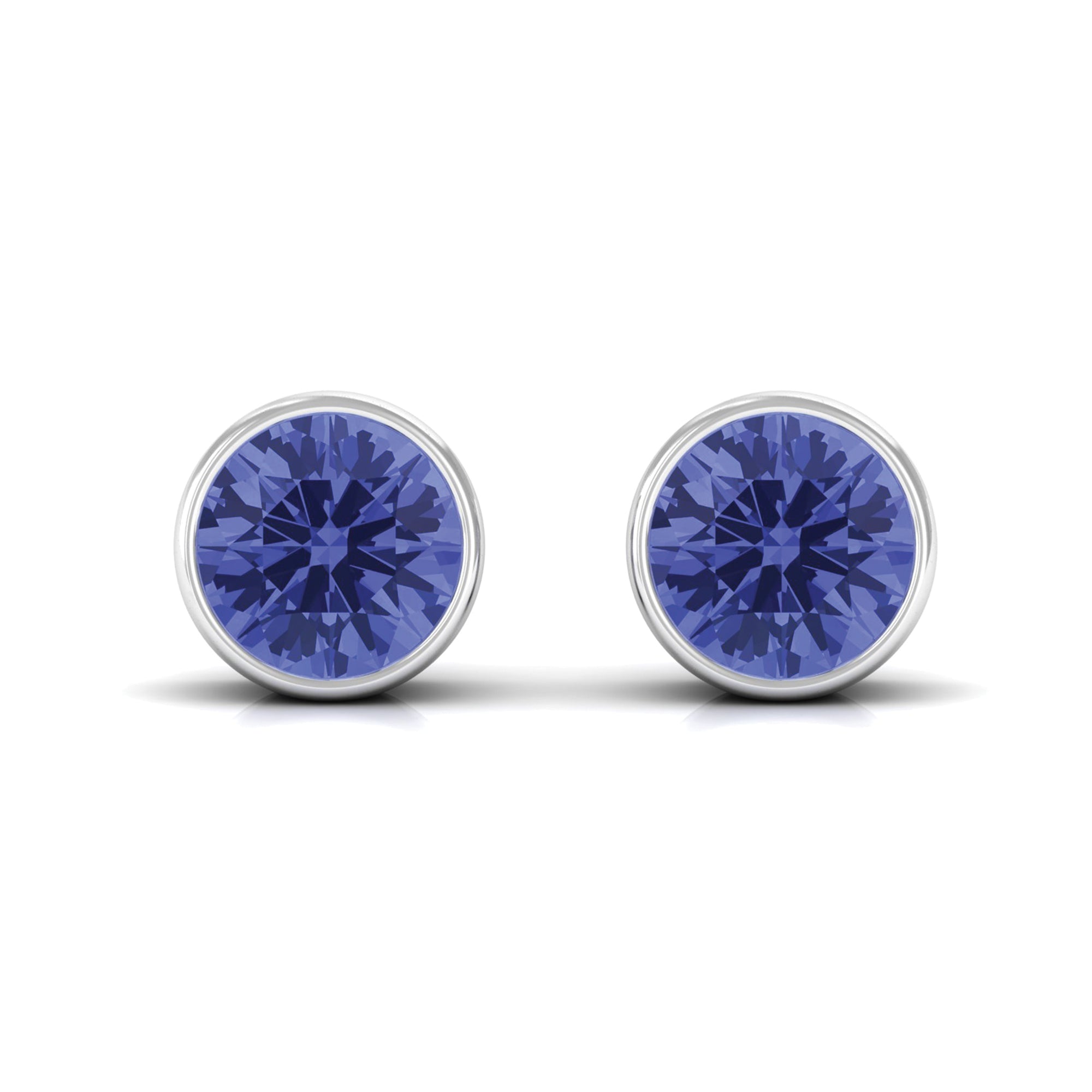 8 MM Round Cut Tanzanite Solitaire Stud Earrings in Bezel Setting