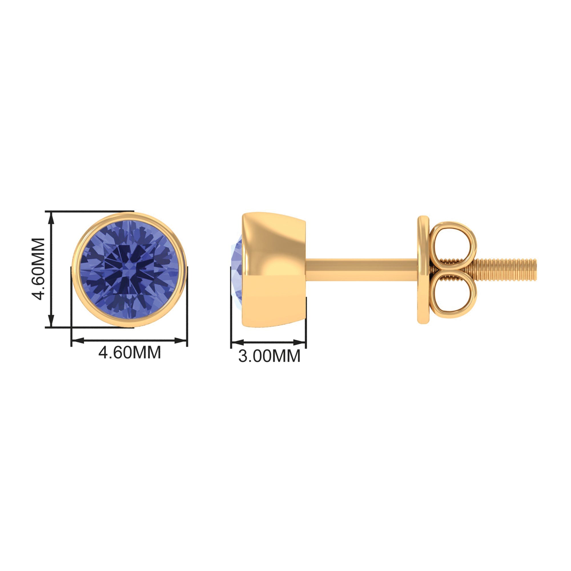 These simple yet classic Stud Earrings are designed with Round Cut Tanzanite in Bezel Setting. The earrings are crafted with Solid Gold to create an opulent appeal.