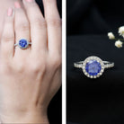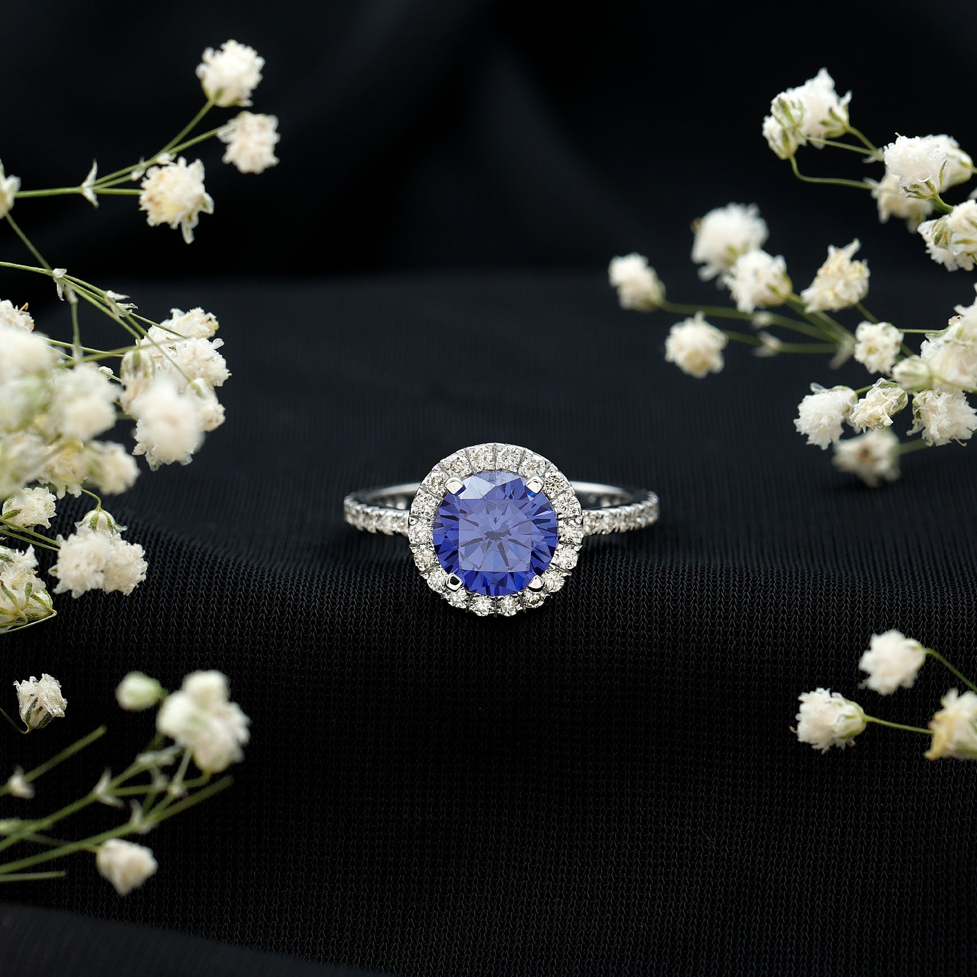 8 mm Round Lab Created Blue Sapphire Classic Engagement Ring with Diamond Halo