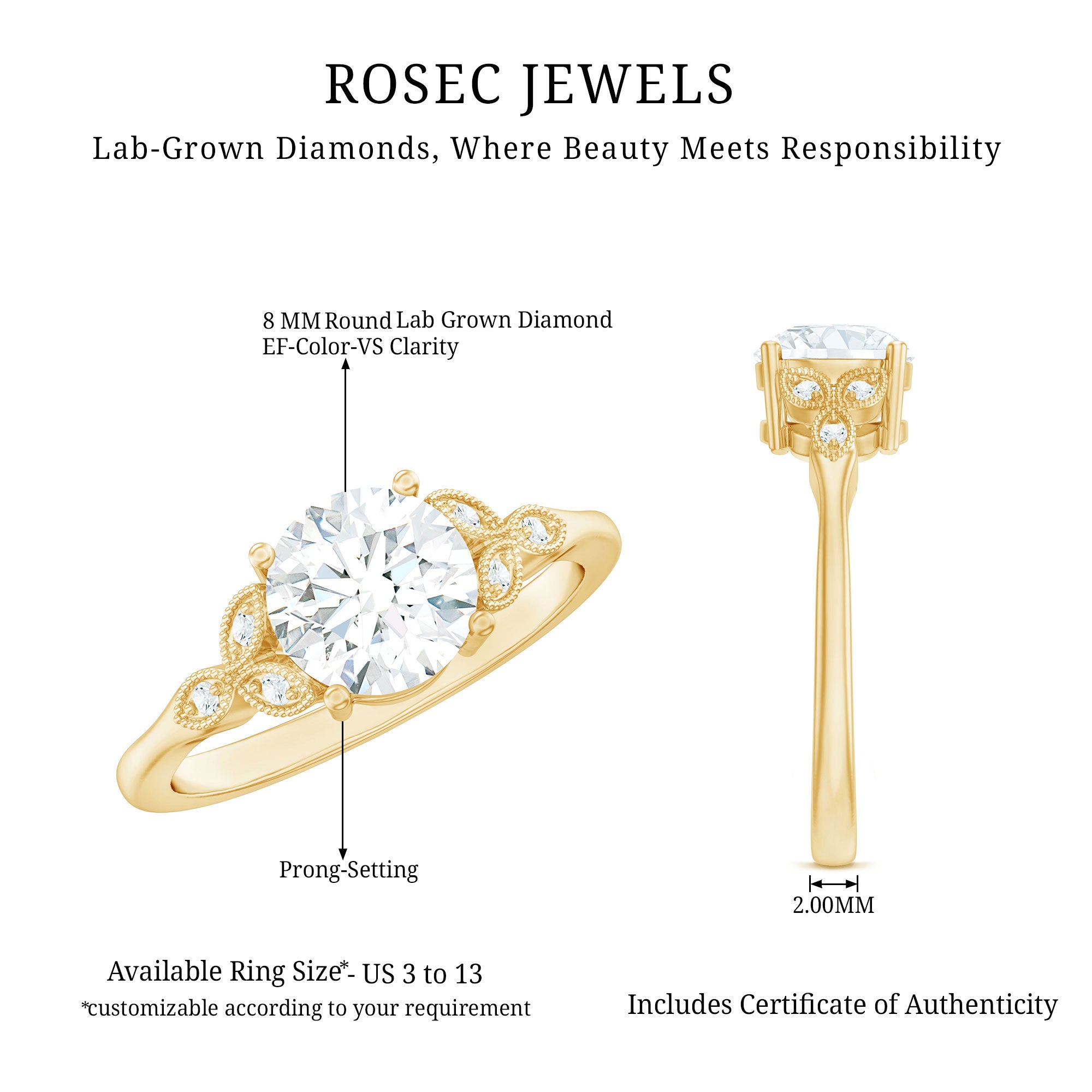 8 MM Round Lab Grown Diamond Vine Engagement Ring