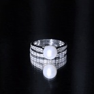 8 MM Round Shape Real Pearl Engagement Ring Set with Moissanite