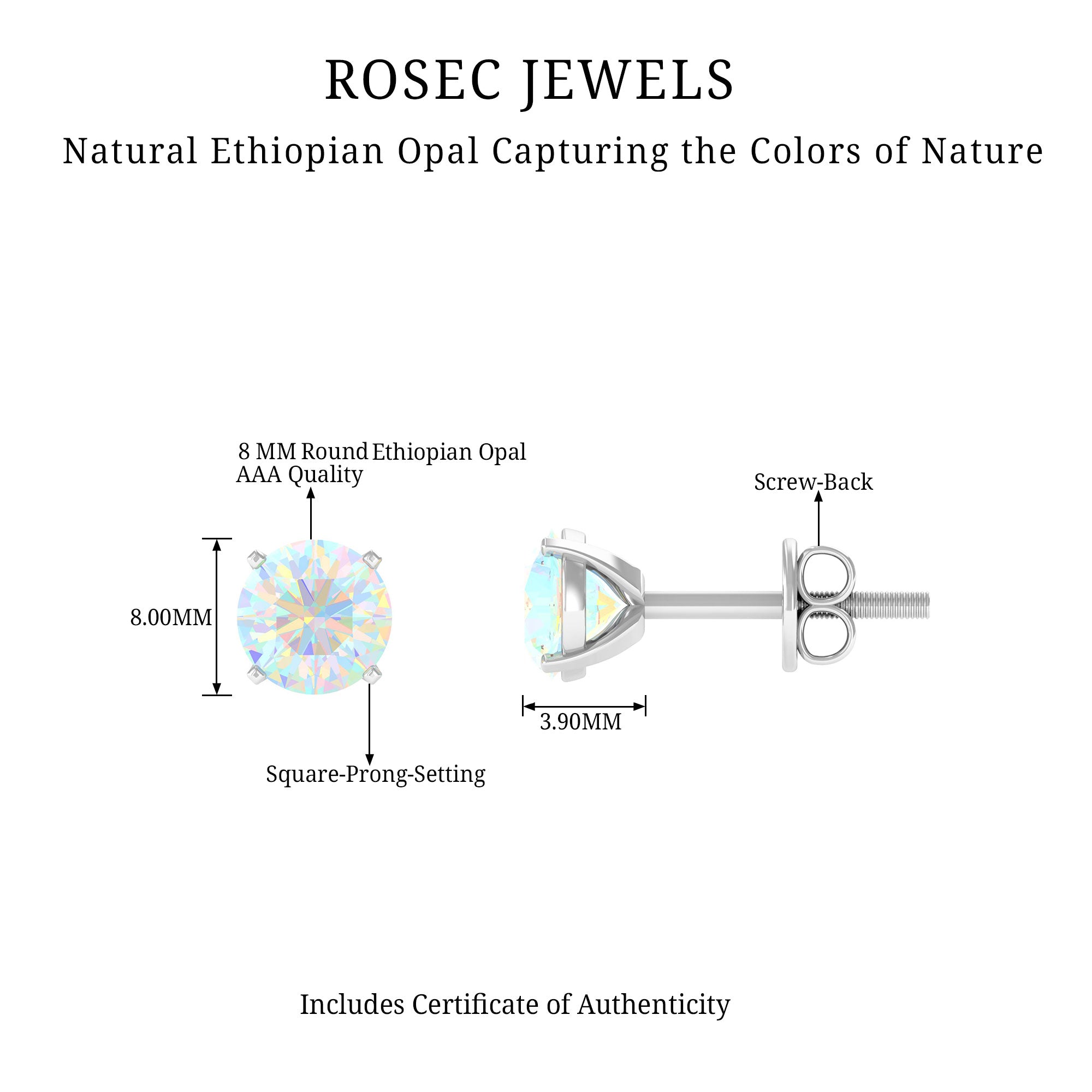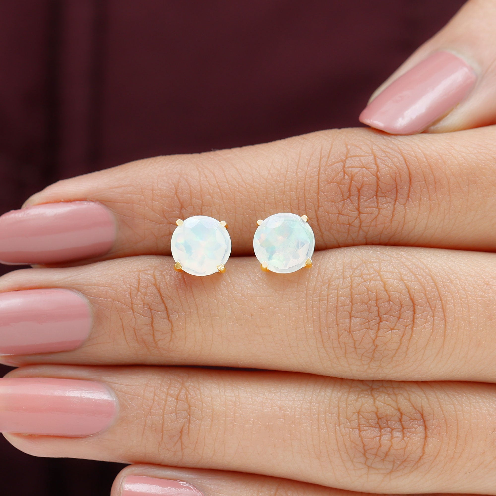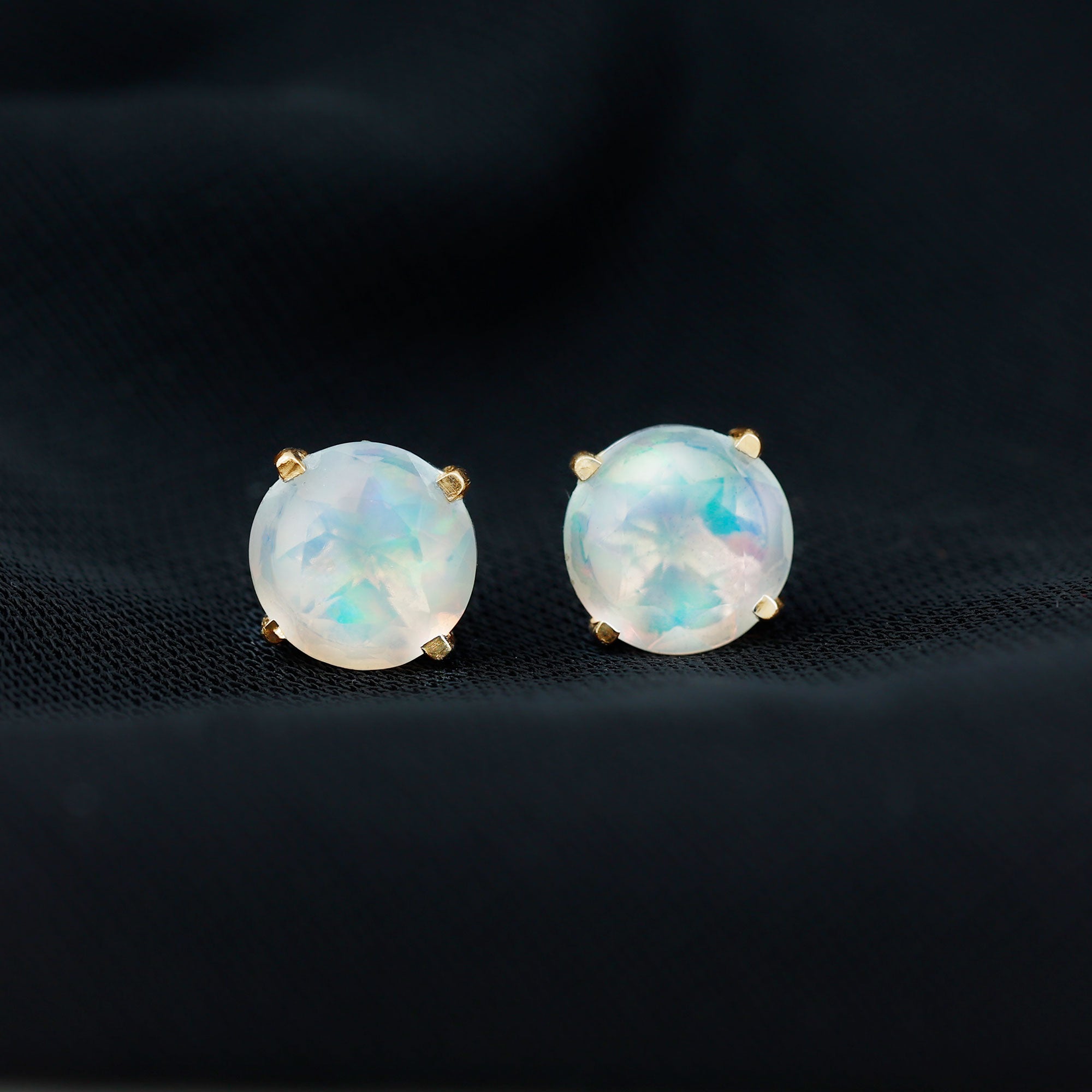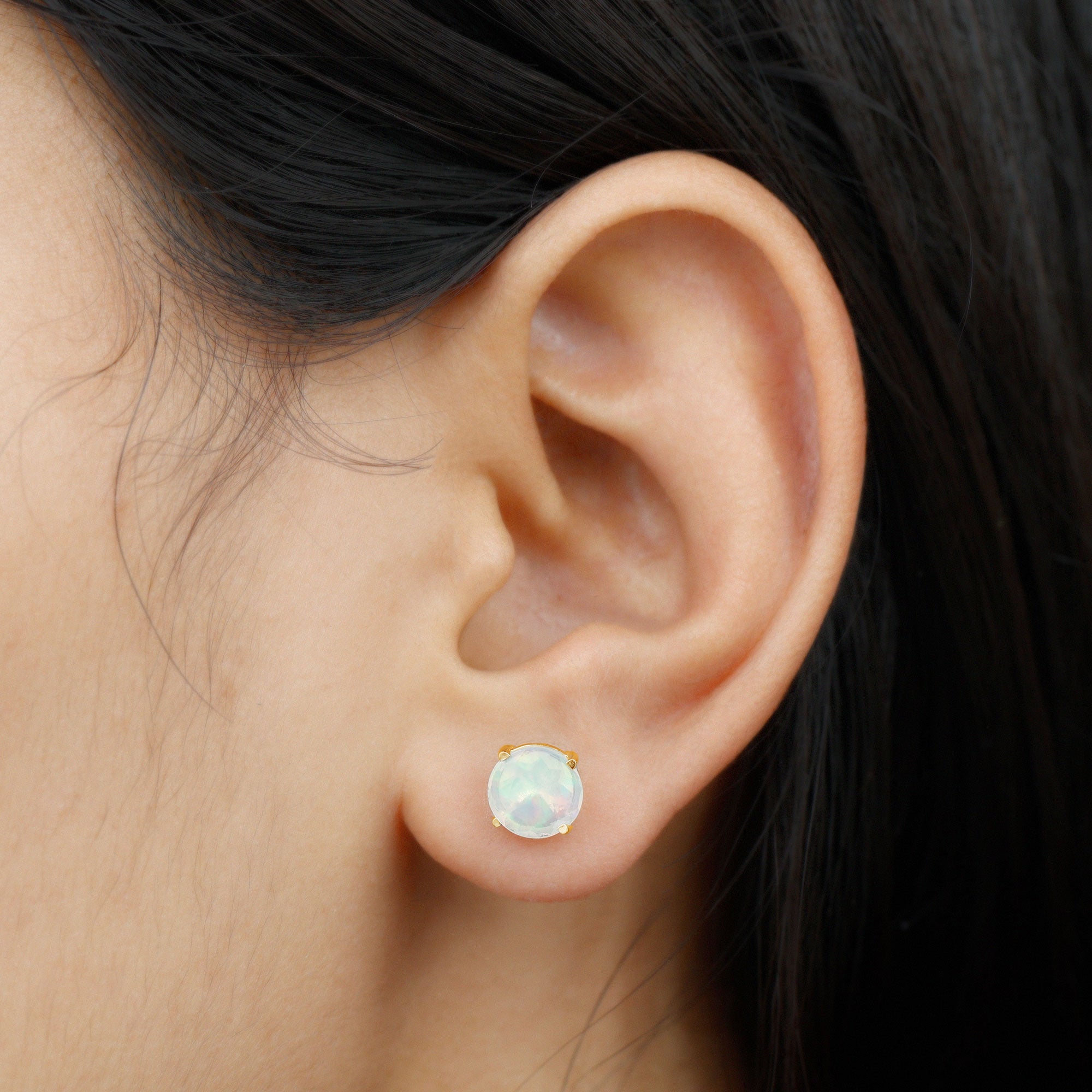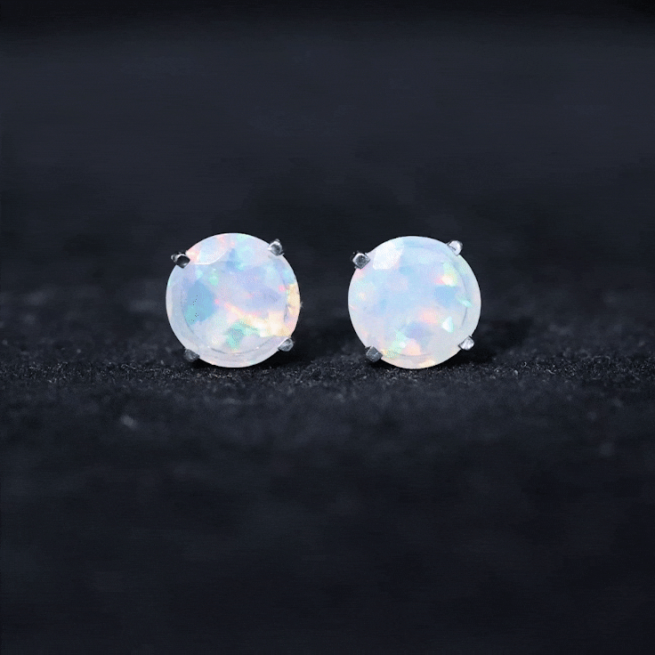 8 MM Simple Round Cut Ethiopian Opal Solitaire Stud Earrings