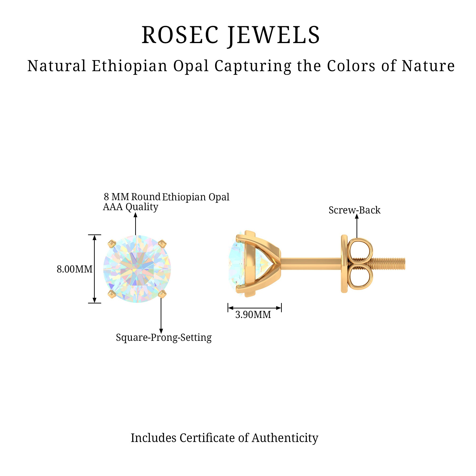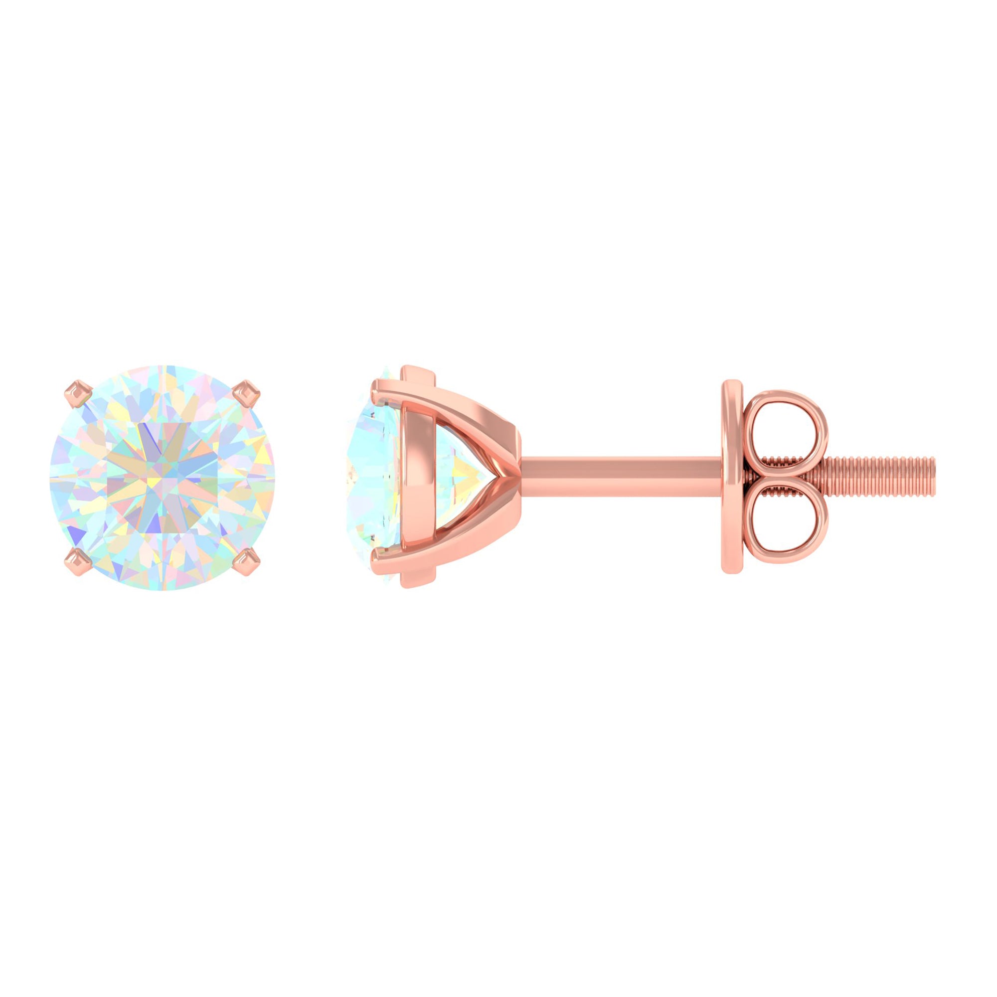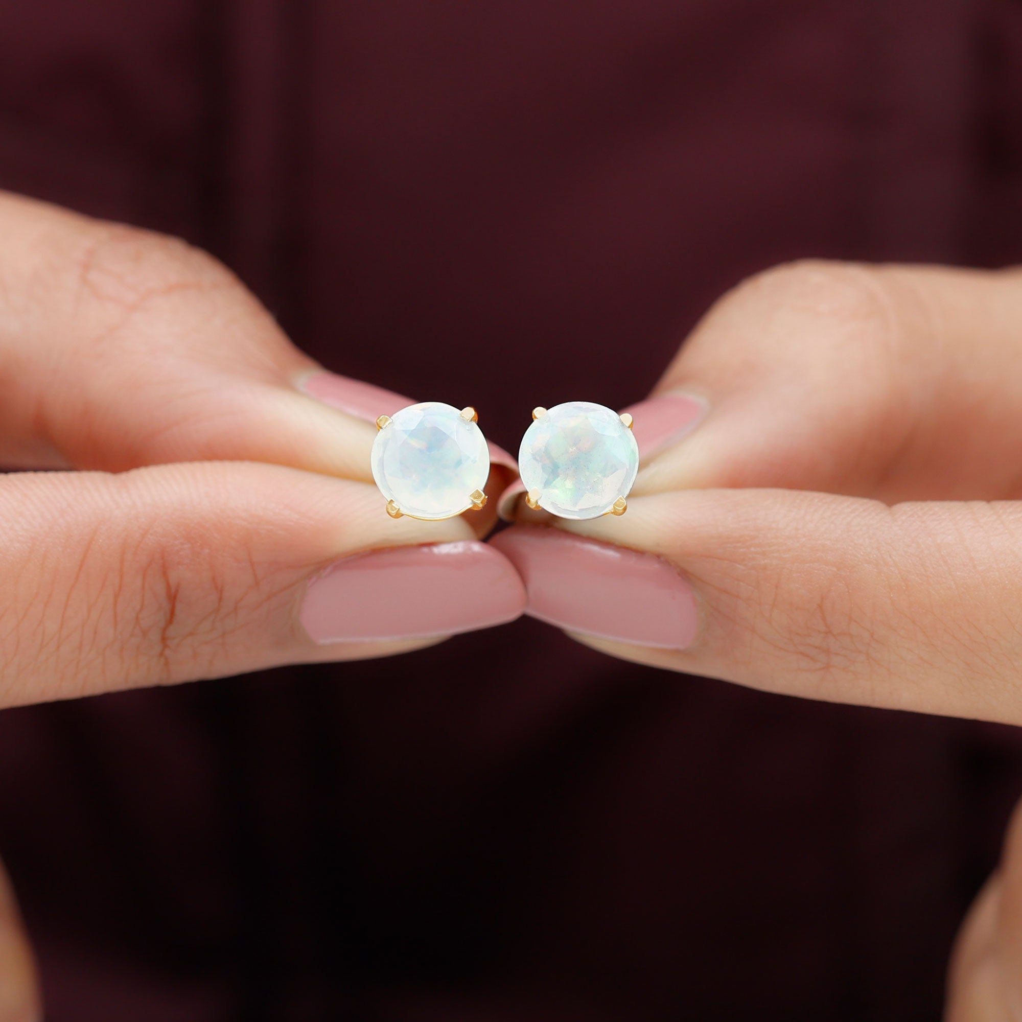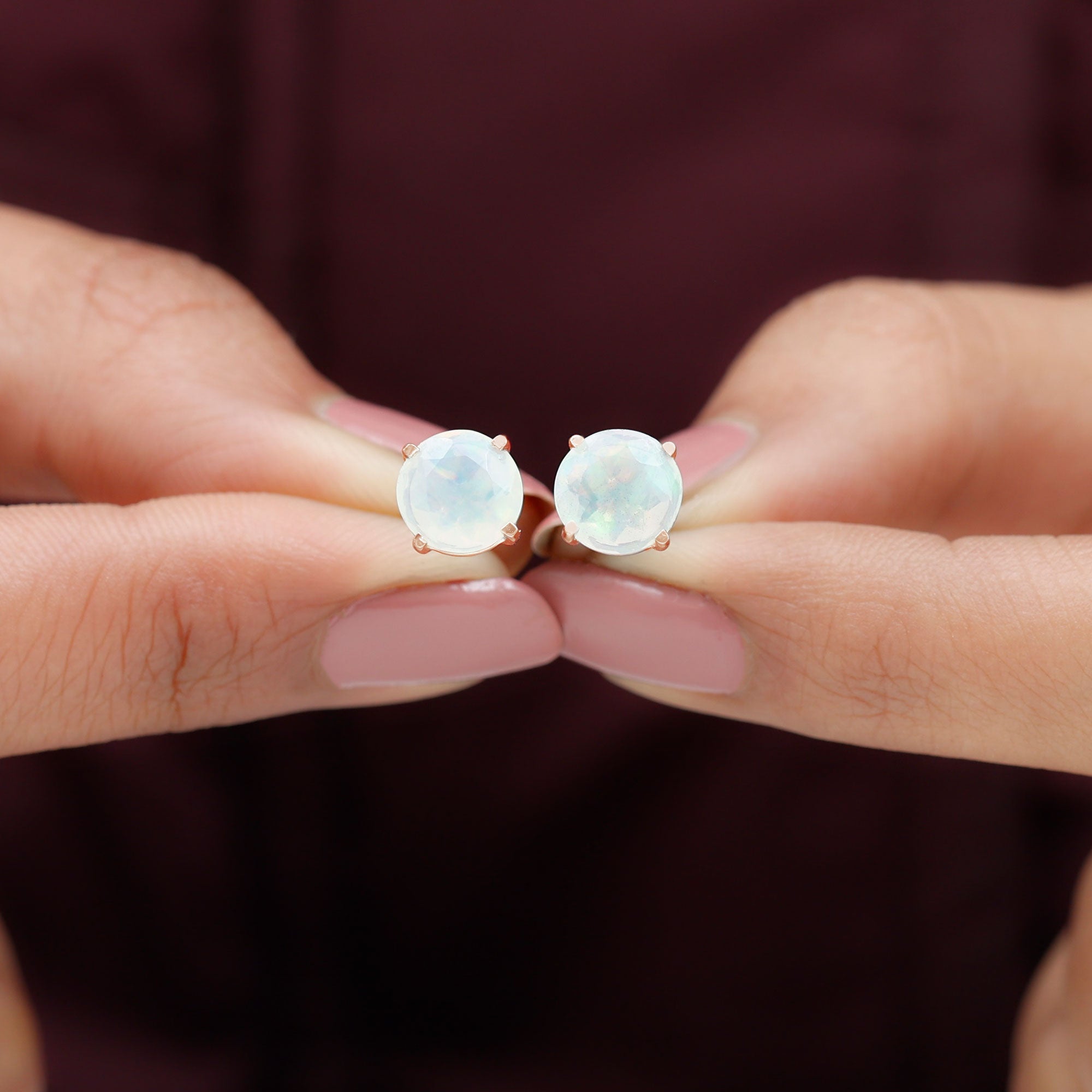 8 MM Simple Round Cut Ethiopian Opal Solitaire Stud Earrings