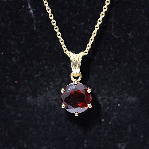 Sparkle your outfit with this Round Solitaire Pendant. It features with round shape Garnet in 6 Prong Setting on Garnet Pendant. Be it any occasion this Pendant Charm will look good.