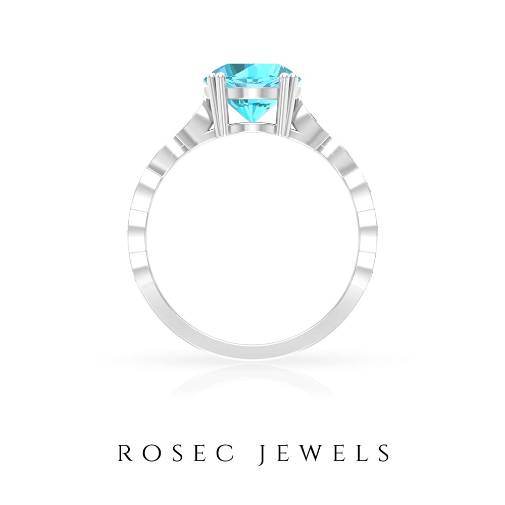 8 MM Swiss Blue Topaz Solitaire Engagement Ring in Double Prong Setting with Diamond