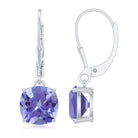 8MM Cushion Cut Lab Created Tanzanite Solitaire Drop Earrings