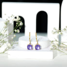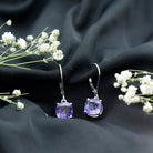 Elevate her special day to new heights of memorability with these stunning Tanzanite Drop Earrings. These exquisite Solitaire Earrings feature an 8 MM Cushion Cut Lab Created Tanzanite, beautifully nestled in prong setting. The addition of a lever back adds a charming and captivating touch to these Cushion Cut Earrings, ensuring they catch the eye and capture the heart. Present the gift of timeless beauty and elegance with these enchanting Lab Created Tanzanite Earrings, a symbol of your affection and thoughtfulness. Their timeless yet modern appeal makes them a versatile addition to any jewelry collection, perfect for evening events, weddings, or simply adding sophistication to an everyday outfit. The refined combination of the sparkling stone and polished metal offers a unique statement of beauty and strength. Ethically made and eco-friendly, these Dangle Drop Earrings are crafted to last, offering both elegance and peace of mind.