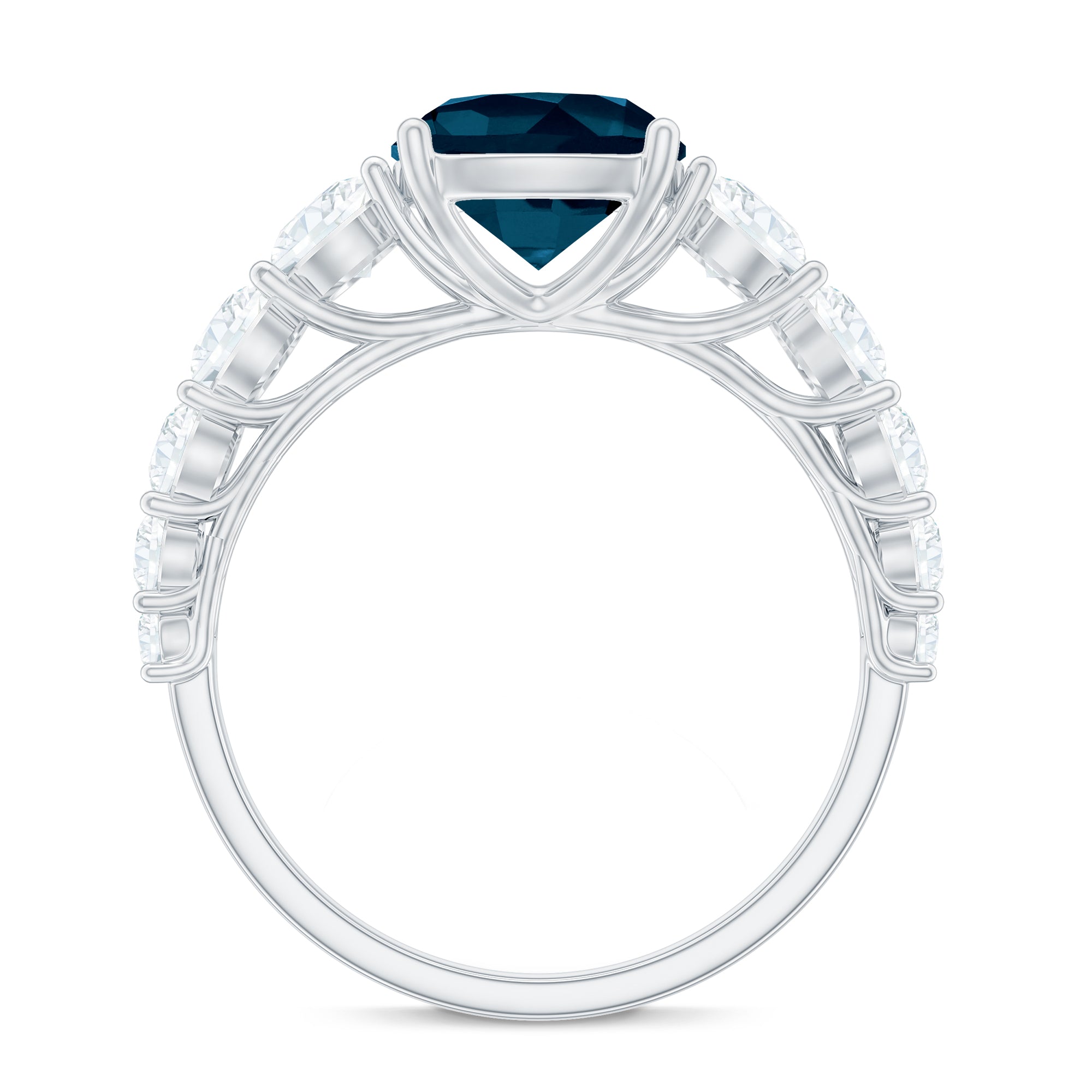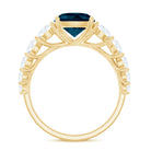 8mm Cushion Cut London Blue Topaz Solitaire Engagement Ring with Moissanite Side Stones