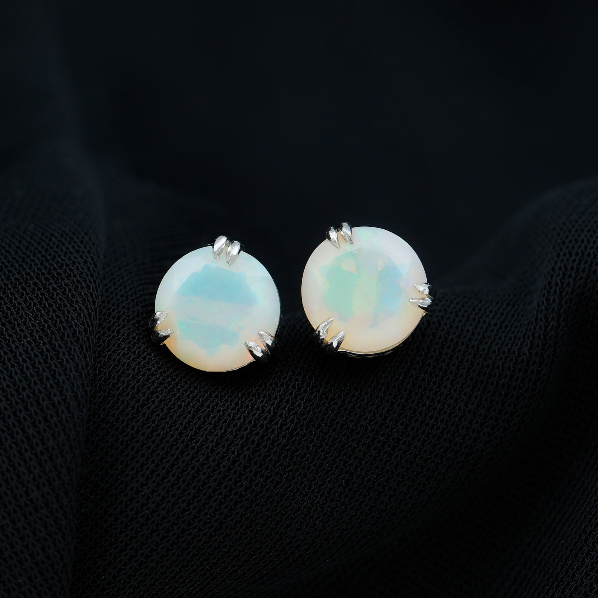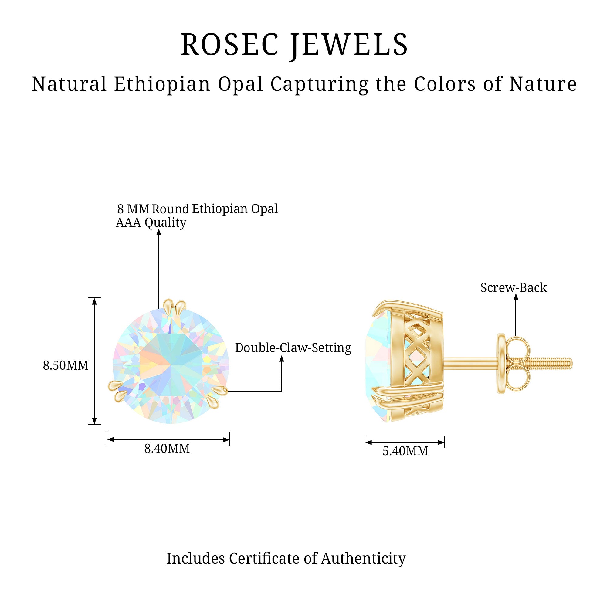 Soft color and gentle glow make these Ethiopian Opal Earrings a beautiful choice for everyday wear. Features an 8 MM round Ethiopian Opal set securely in 3-double-claw prong setting. As the birthstone for October, Ethiopian opal brings meaning along with beauty. These Opal Stud Earrings make a thoughtful gift for someone born in October or anyone who loves gemstones with natural character. Designed for daily comfort, the Rainbow Opal Earrings are lightweight and smooth on the ears. The screw back closures keep them secure all day, whether you are heading to work, running errands, or dressing up for a simple outing. The AAA quality Ethiopian opals offer brightness and charm while remaining gentle enough for everyday style. Whether worn alone or matched with other jewelry pieces, they add a touch of color that feels natural and effortless. Perfect as a birthday gift, a personal treat, or a meaningful October birthstone accessory, these Ethiopian Opal Stud Earrings bring warmth, elegance, and easy beauty to your daily look.