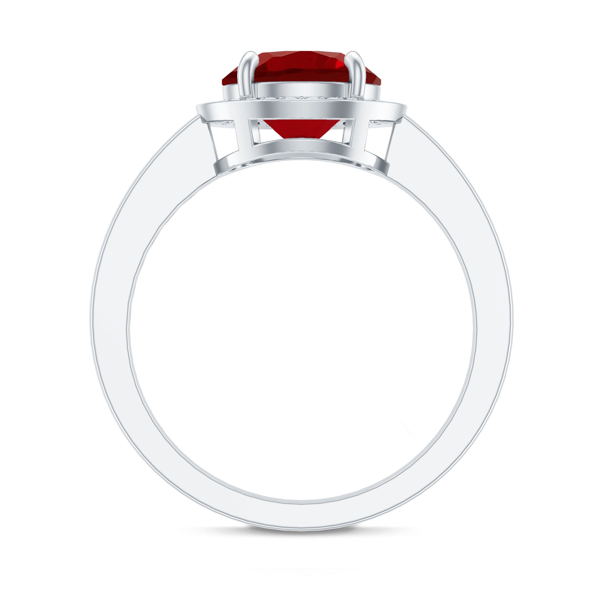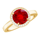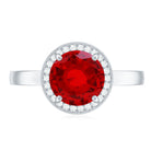 Bring a smile to her face with our Lab Grown Ruby Engagement Ring that truly speaks from the heart. The elegant design features an 8 MM round cut lab created ruby sitting securely at the center. Surrounding the ruby is a floating halo of sparkling diamonds that shimmer beautifully from every angle, giving the Round Engagement Ring a dreamy and radiant look that catches the eye instantly. The AAAA quality lab created ruby and dazzling HI-SI quality diamonds come together perfectly, creating a balance of warmth and brilliance. Every little sparkle adds to its charm, making it a piece that feels luxurious yet meaningful. The floating halo design gives the Ruby and Diamond Ring a graceful appearance while keeping the ruby securely set and highlighted as the centerpiece. Crafted with attention to detail, the Halo Engagement Ring offers both comfort and elegance, making it ideal for everyday wear or special occasions. Packed in a beautiful jewelry box and ready to gift, the Ruby Halo Ring is sure to become a treasured keepsake that holds memories, emotions, and endless sparkle for years to come.