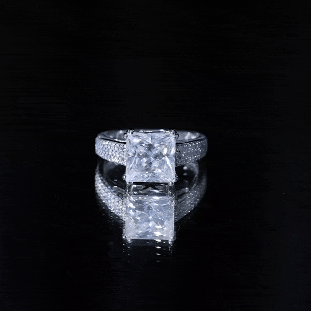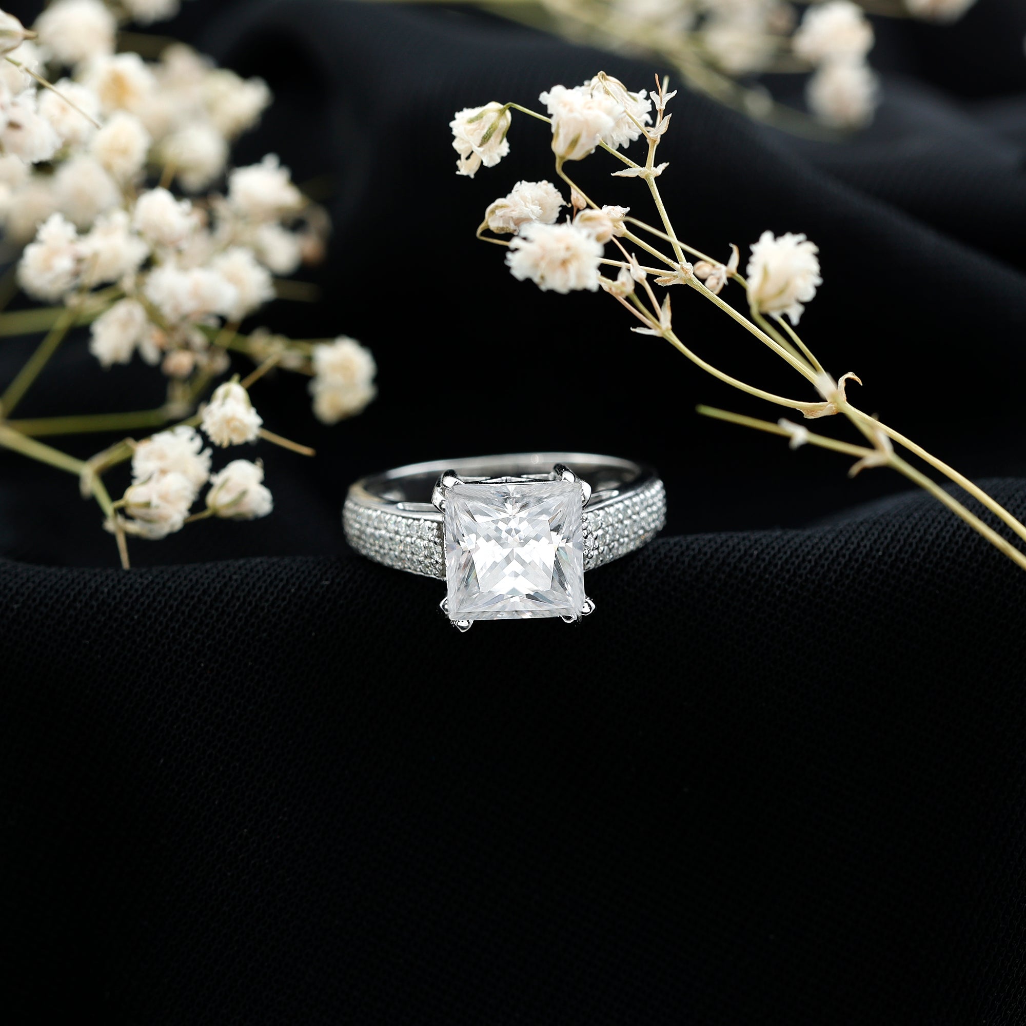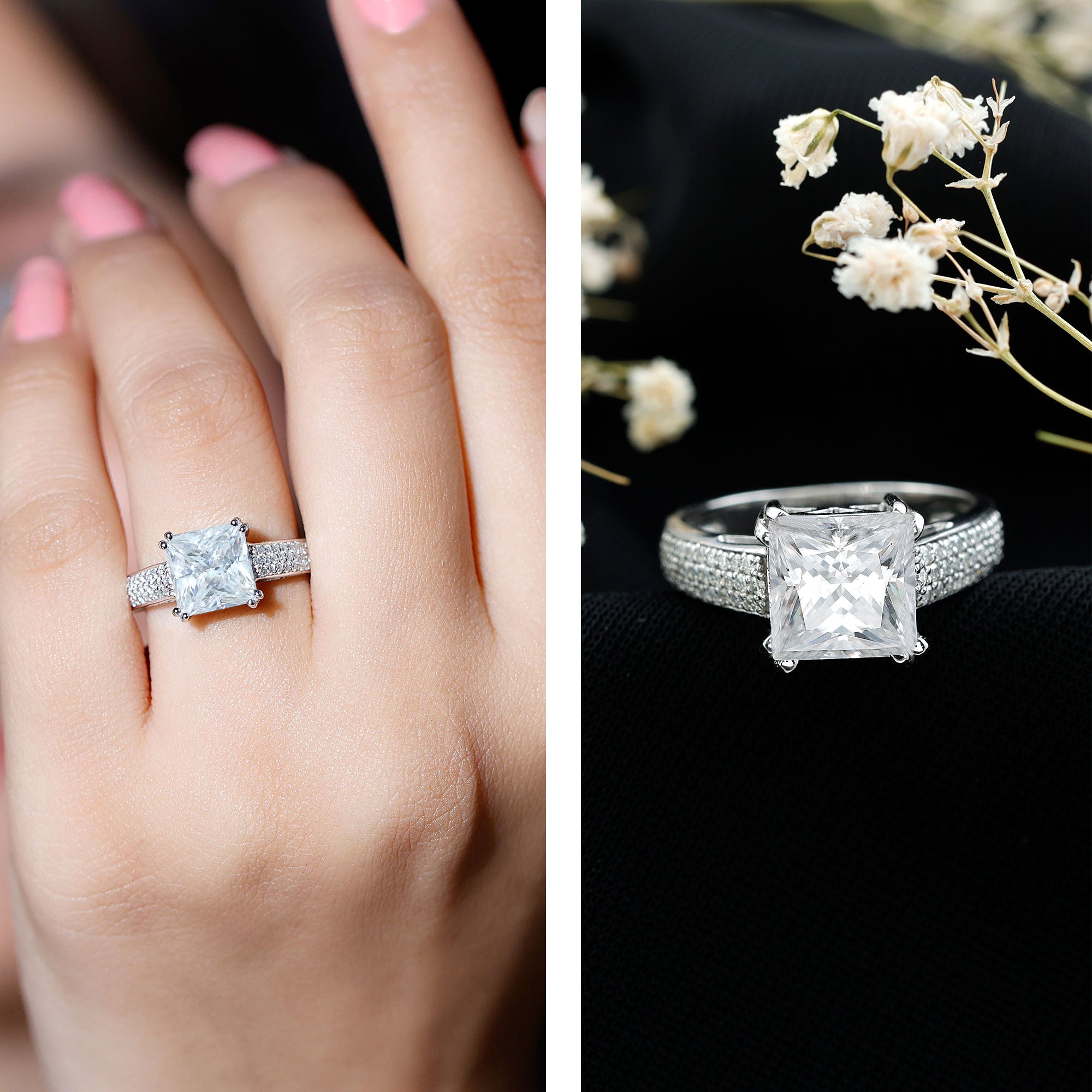 8MM Princess Cut Moissanite Side Stone Engagement Ring
