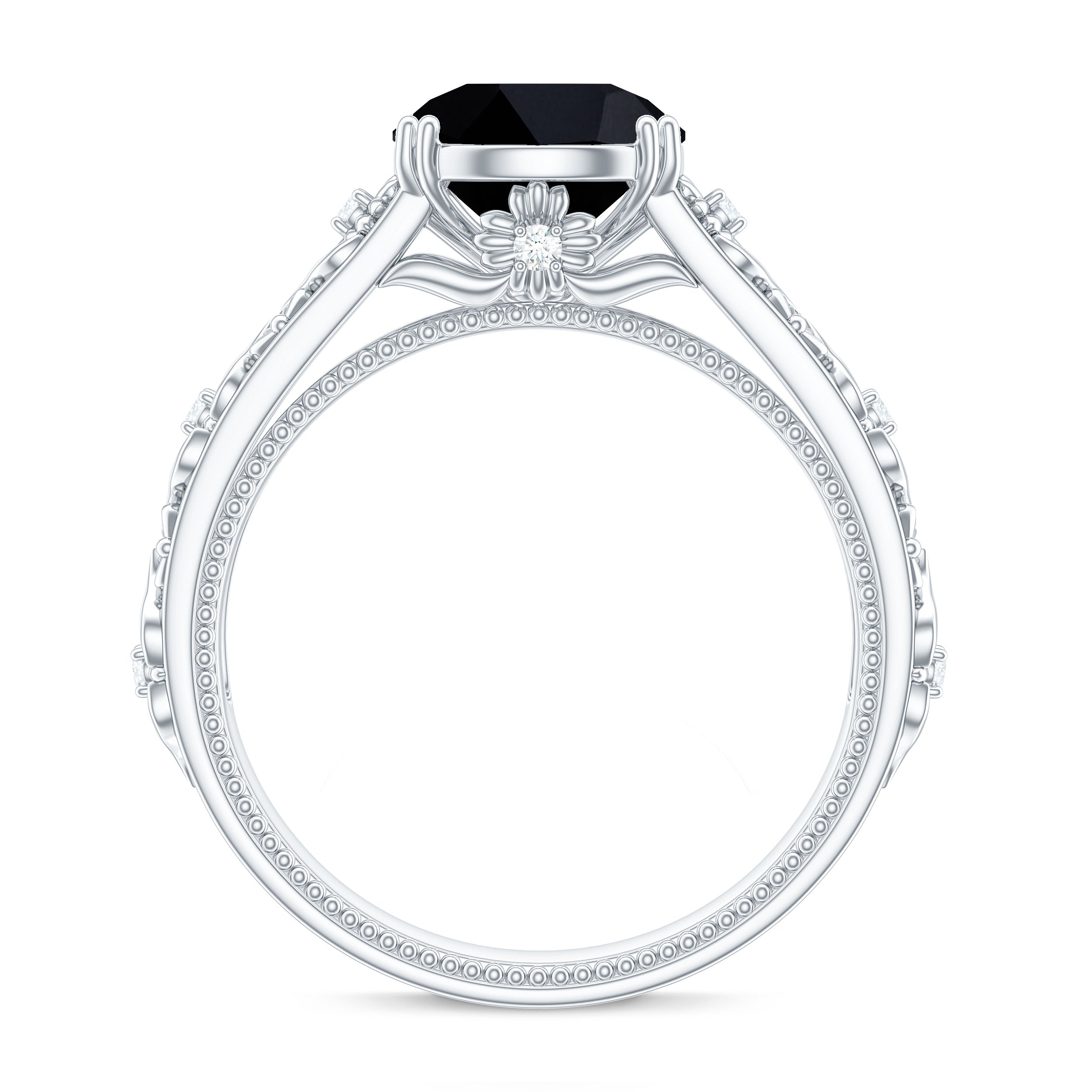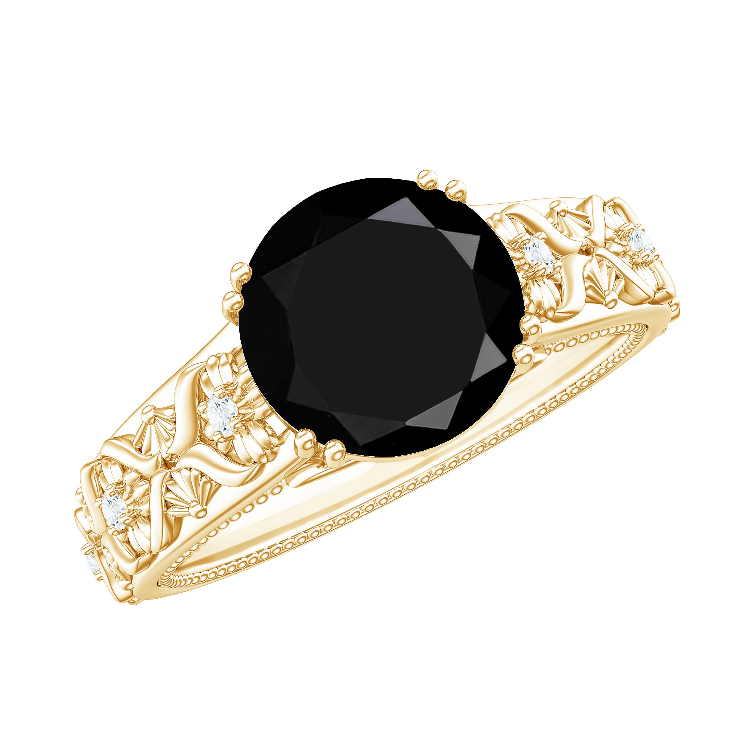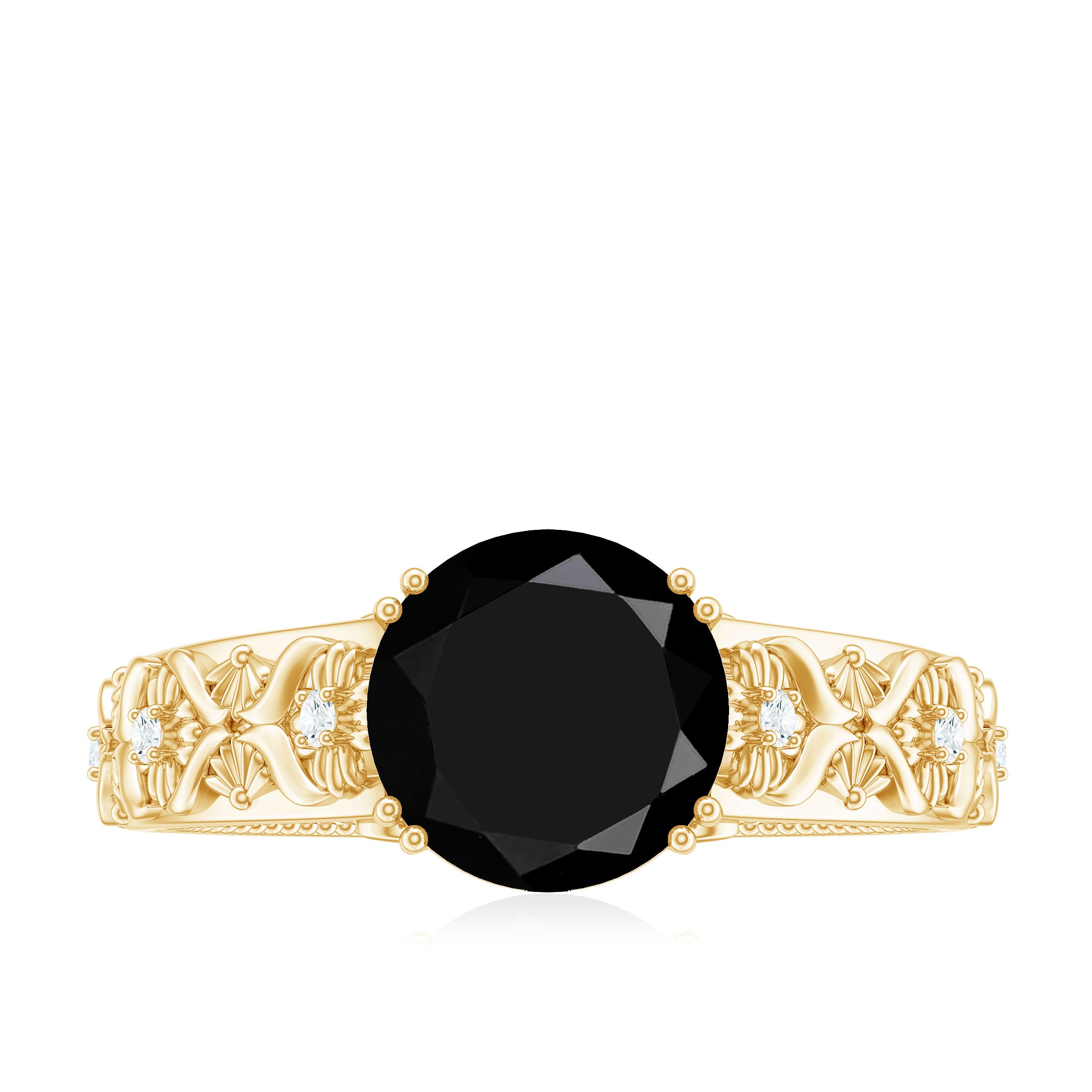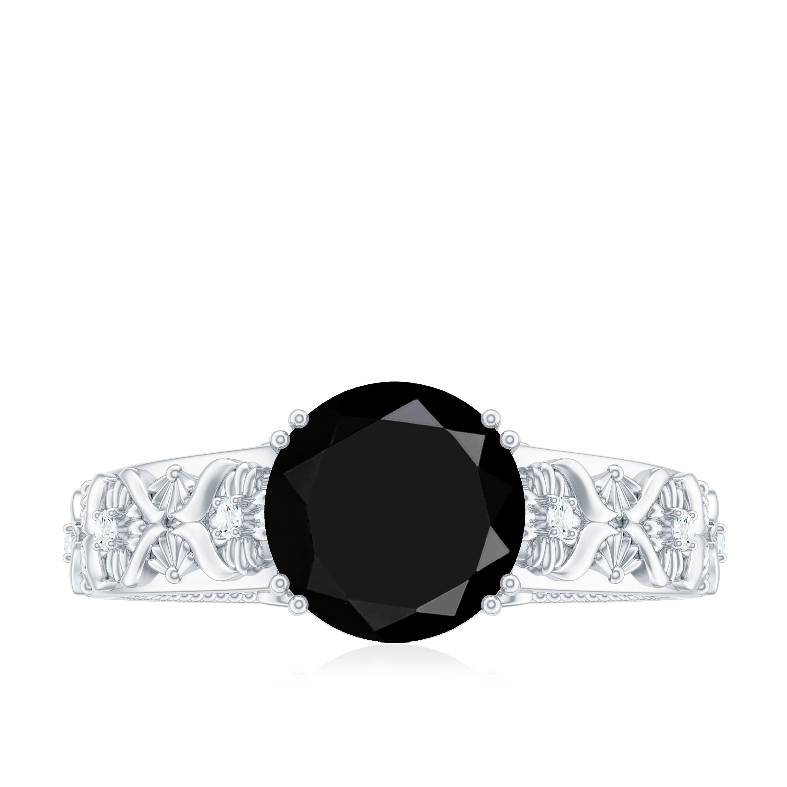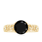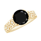 8mm Round Black Onyx Solitaire Antique Looking Engagement Ring with Diamond