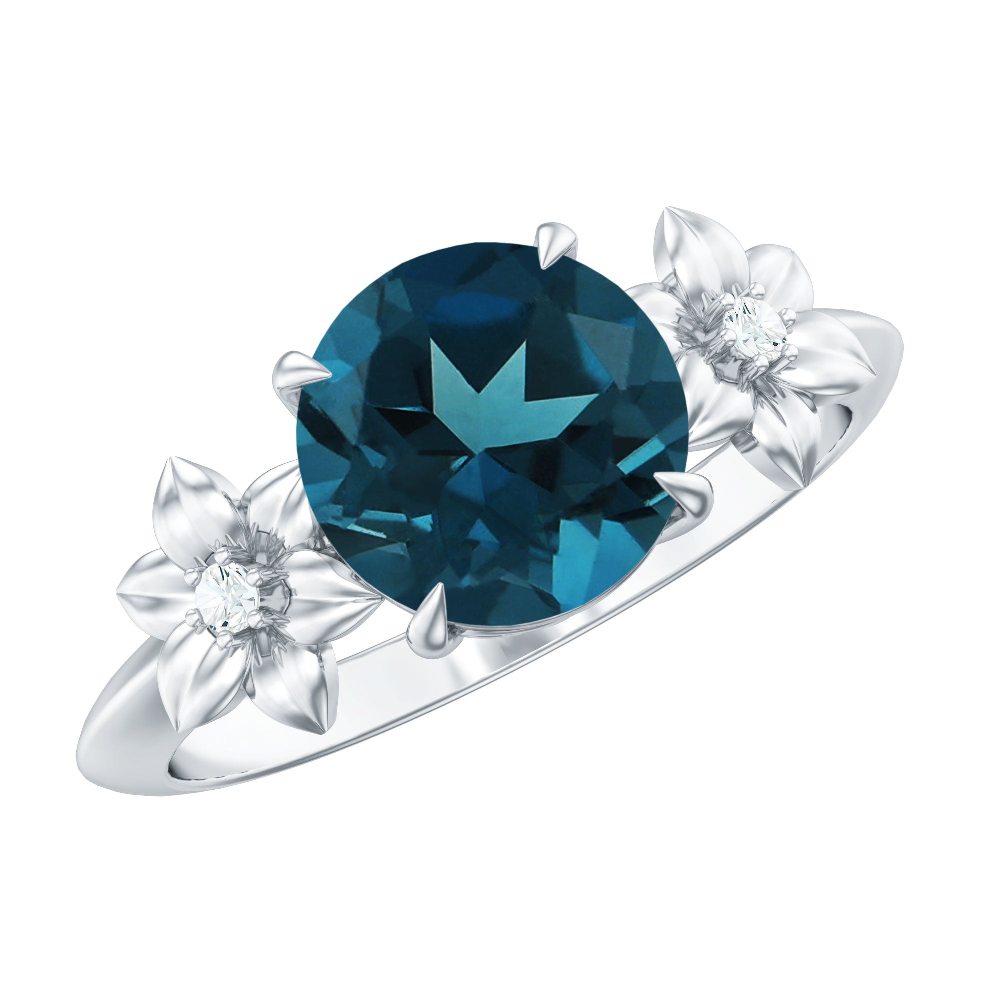8mm Round London Blue Topaz Solitaire Floral Ring